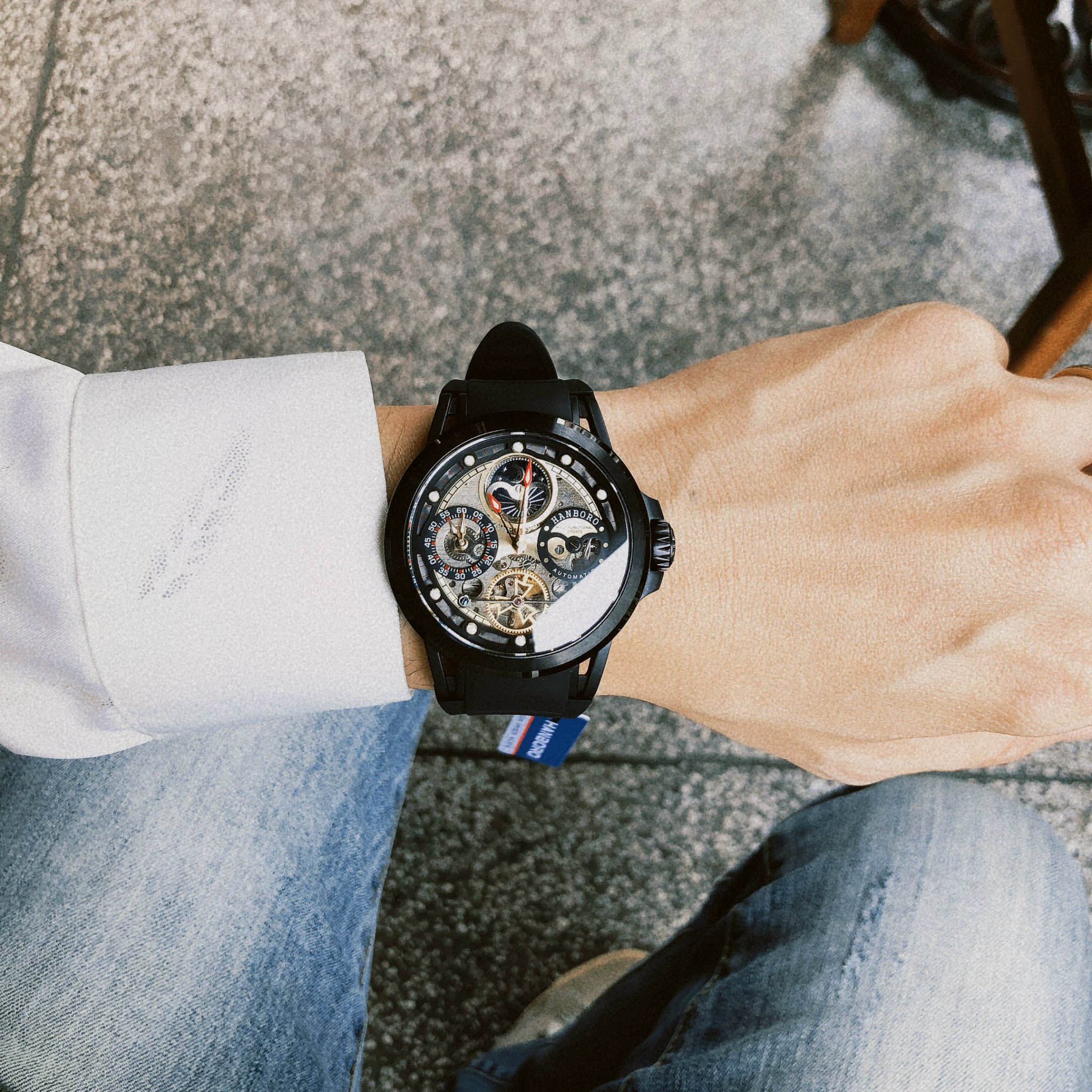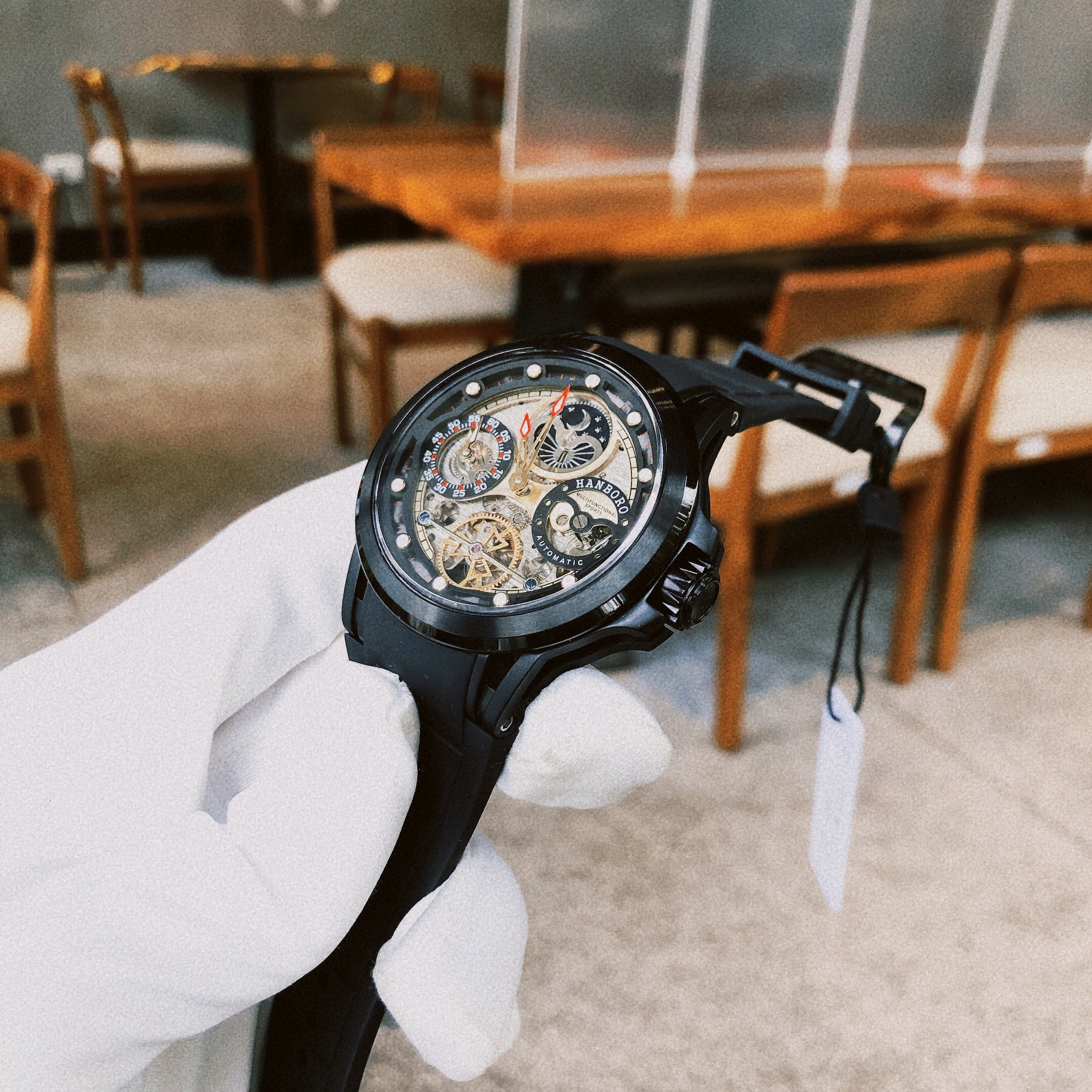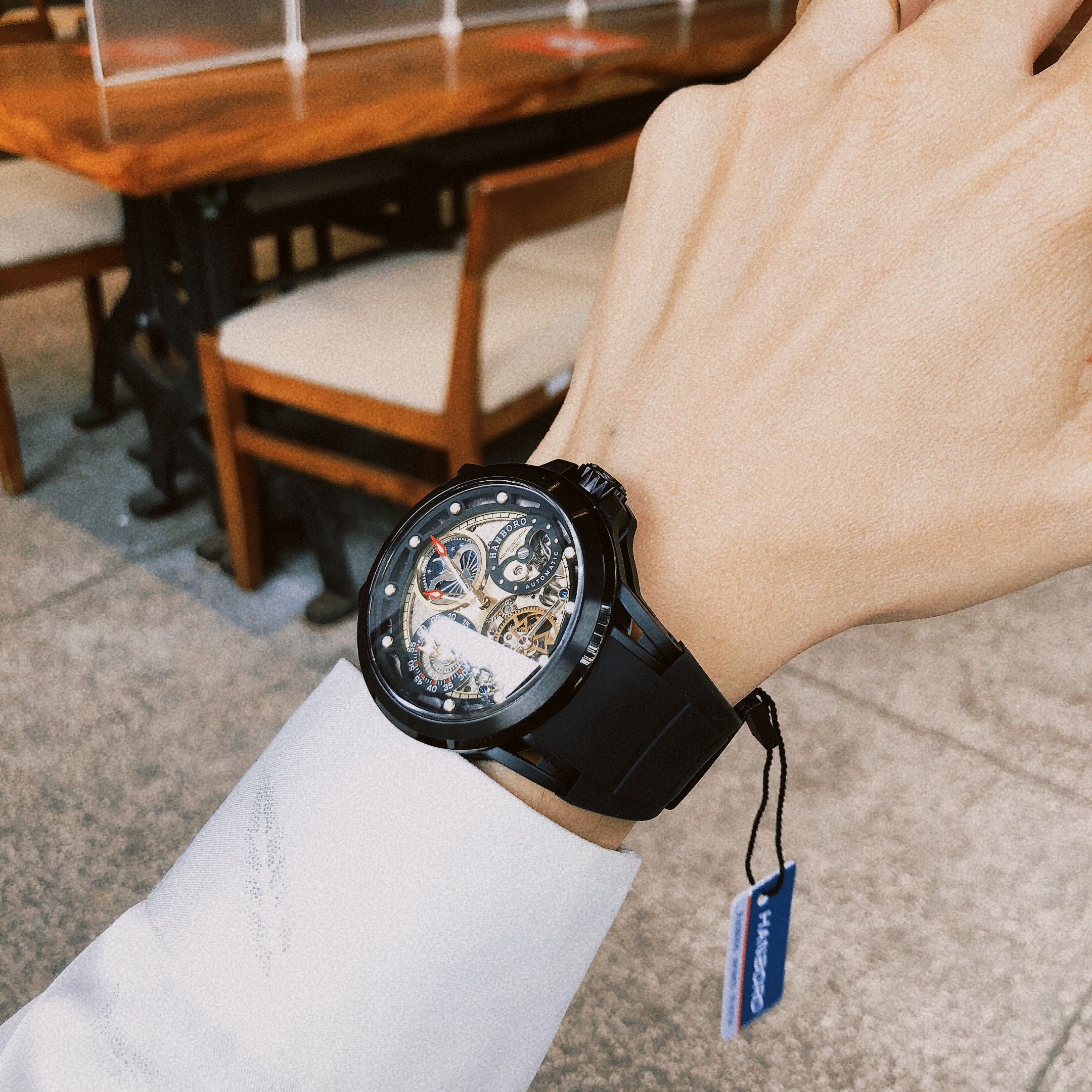 Đồng hồ Huboler nam chính hãng Huboler by Hanboro Automatic dây cao su màu đen 42mm