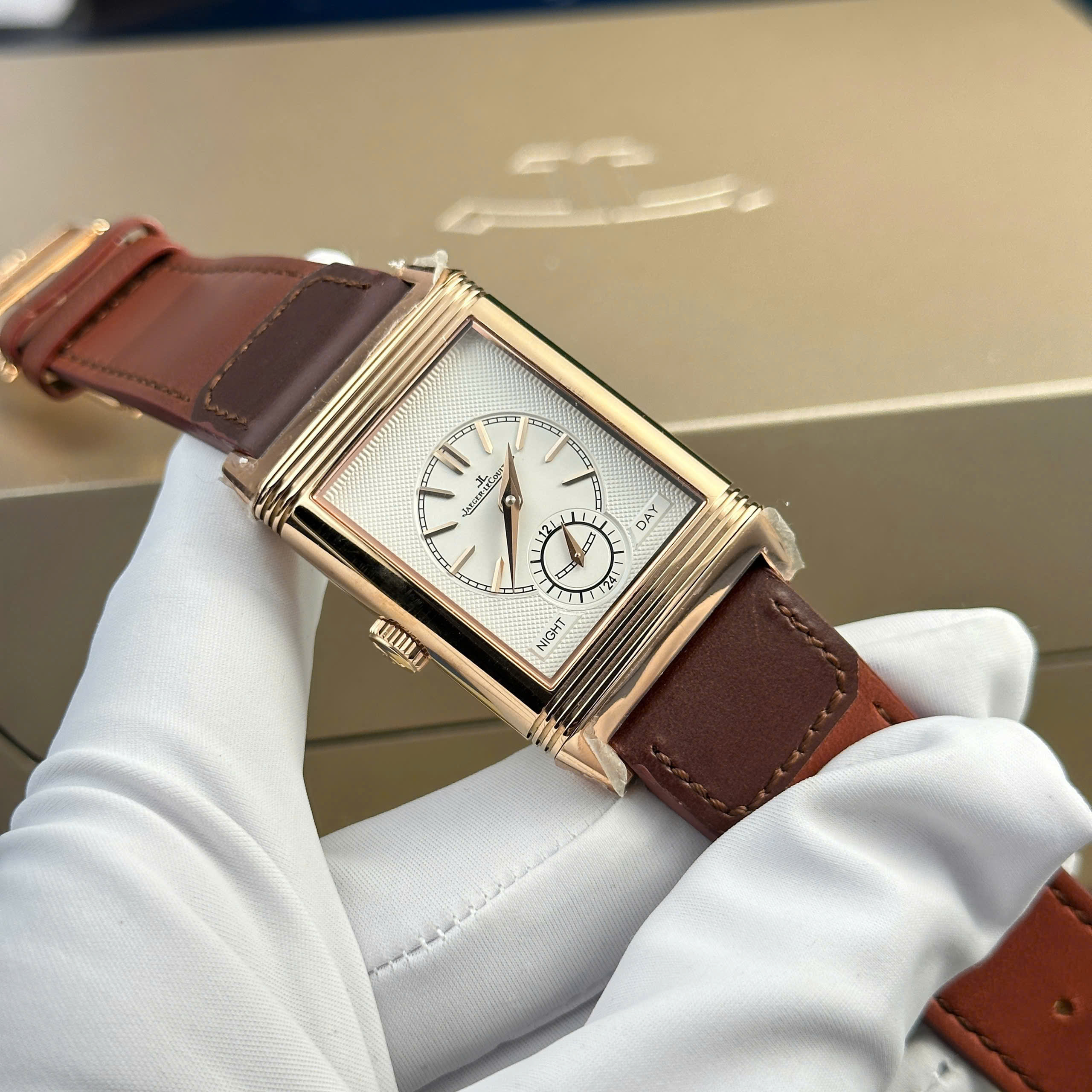 Hãy cùng DWatch đến với một siêu phẩm Đồng hồ Jaeger LeCoultre Master Reverso Rep 11 cao cấp 2 mặt màu trắng xám MGF nhé.