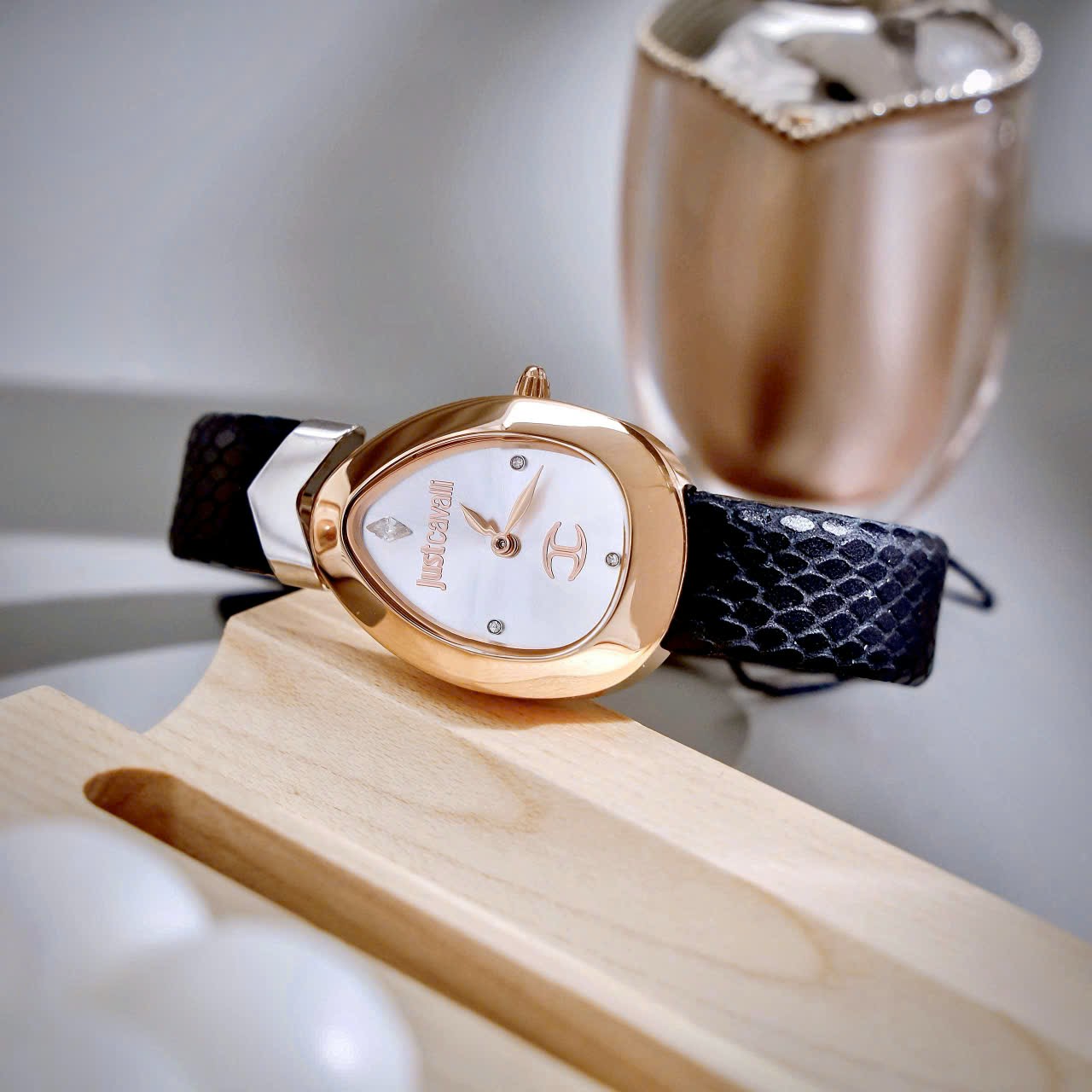 Đồng hồ Just Cavalli Embellished Dial & Leather nữ rose gold like auth 30mm