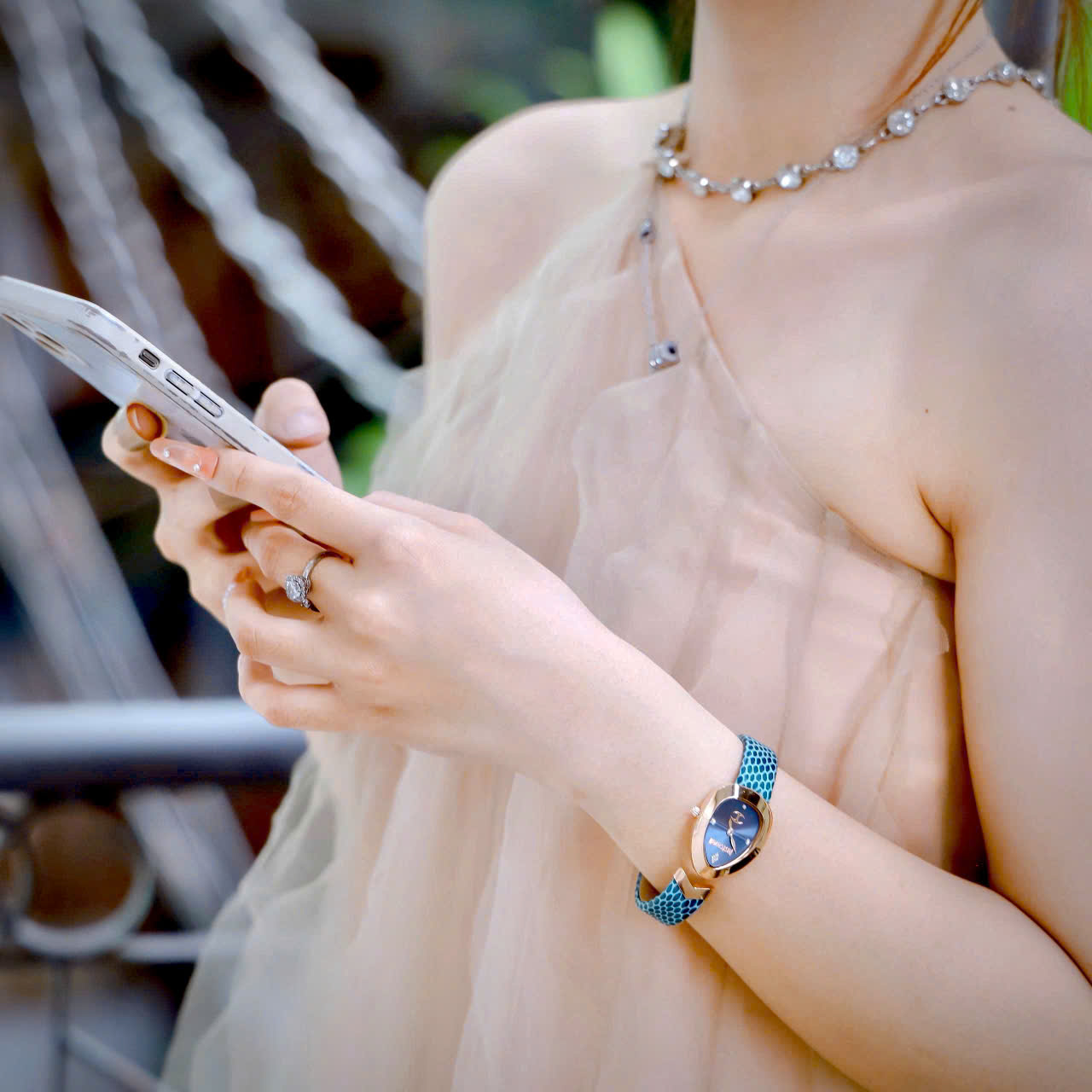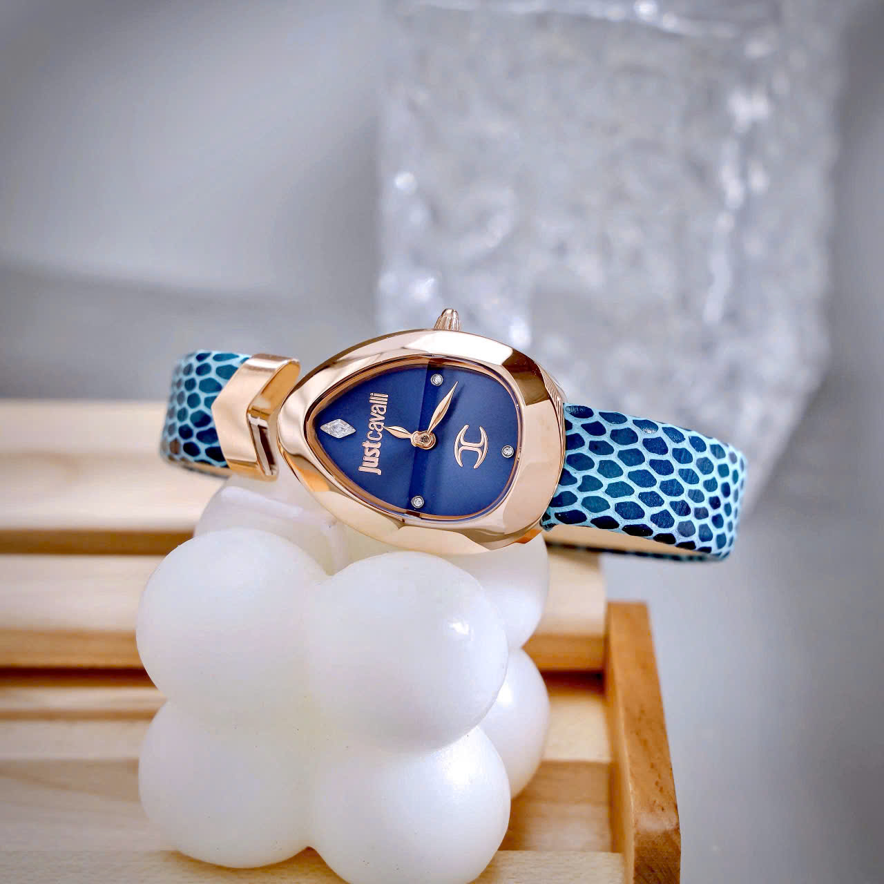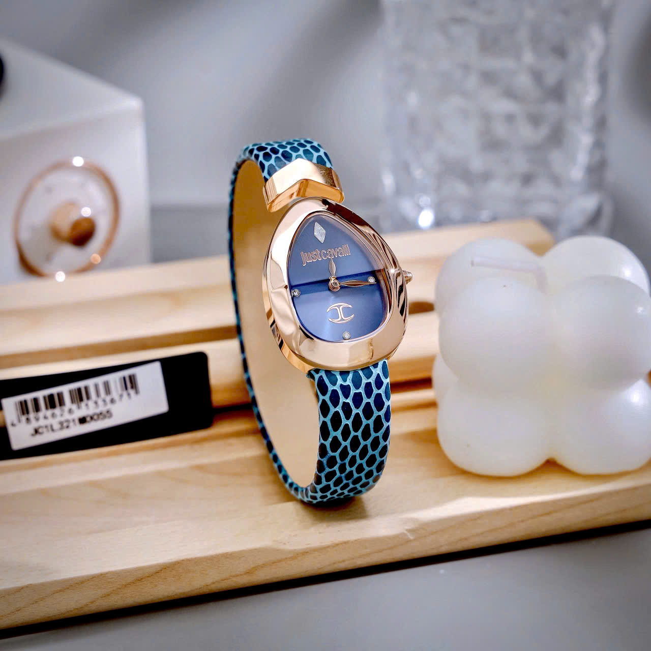 Đồng hồ Just Cavalli nữ Embellished Dial & Leather dây da xanh like auth 30mm