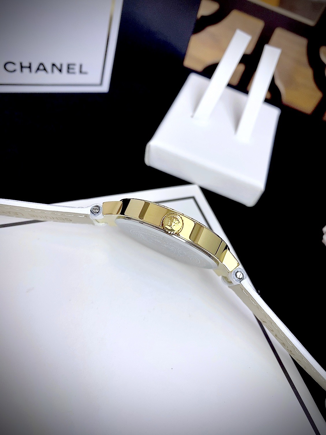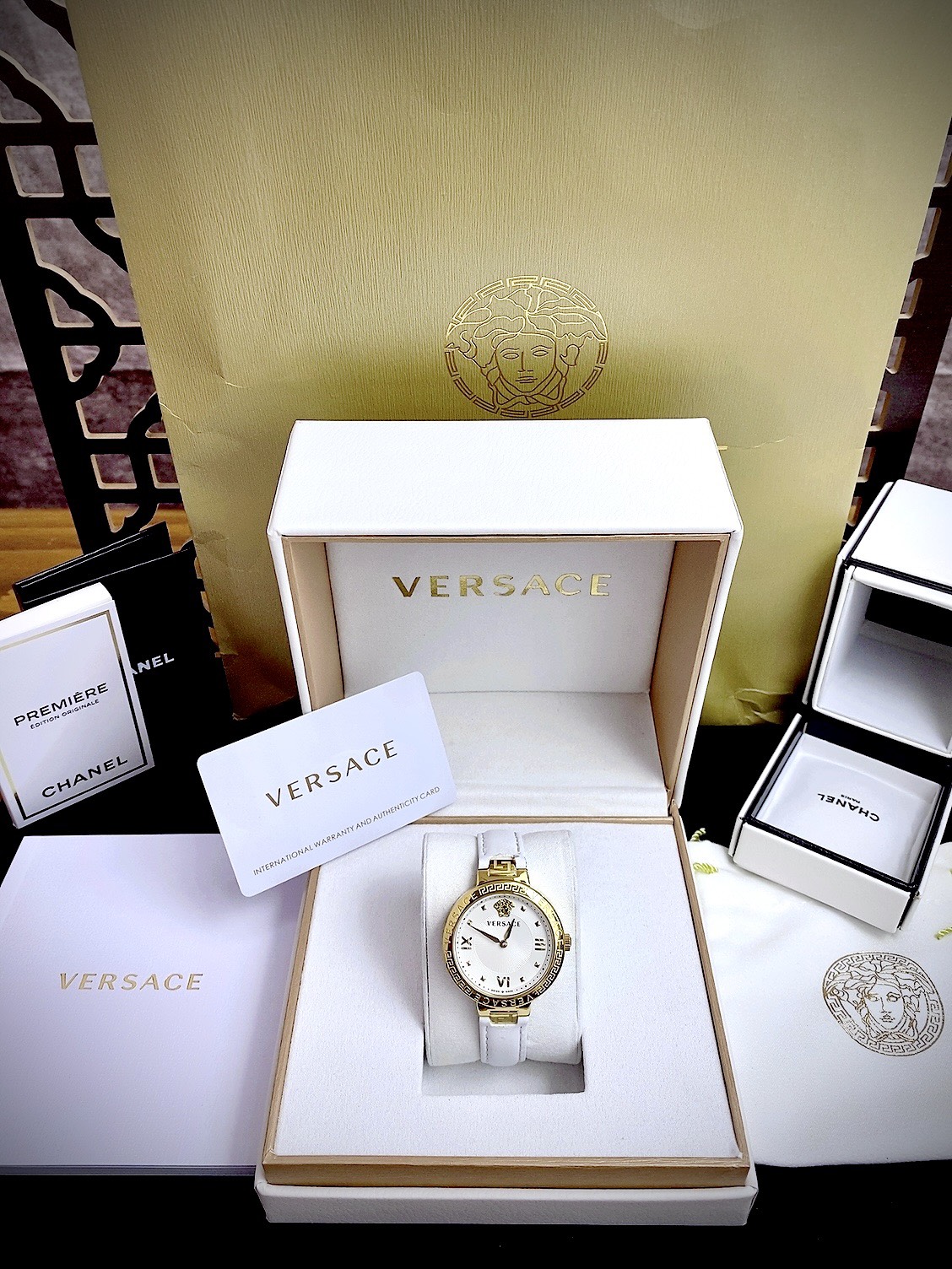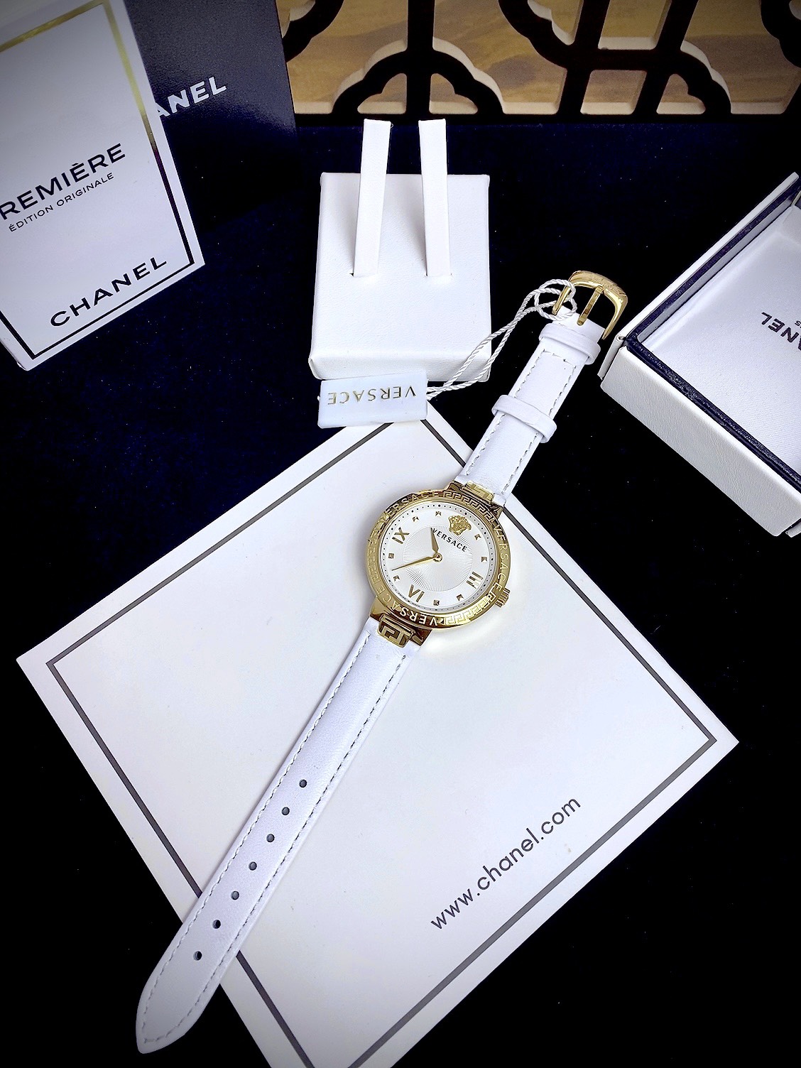 Đồng hồ Like Auth Versace Greca Strap nữ dây da màu trắng