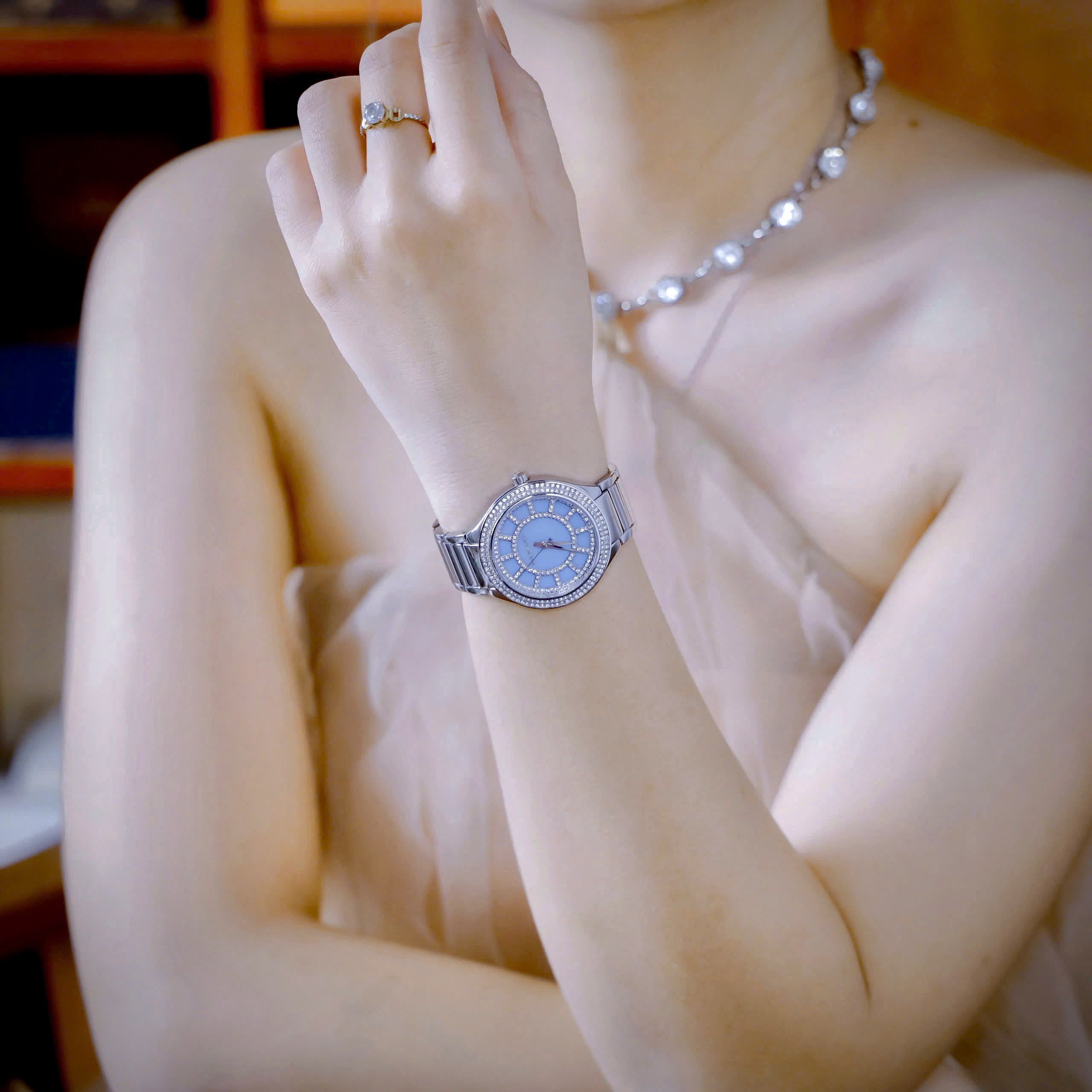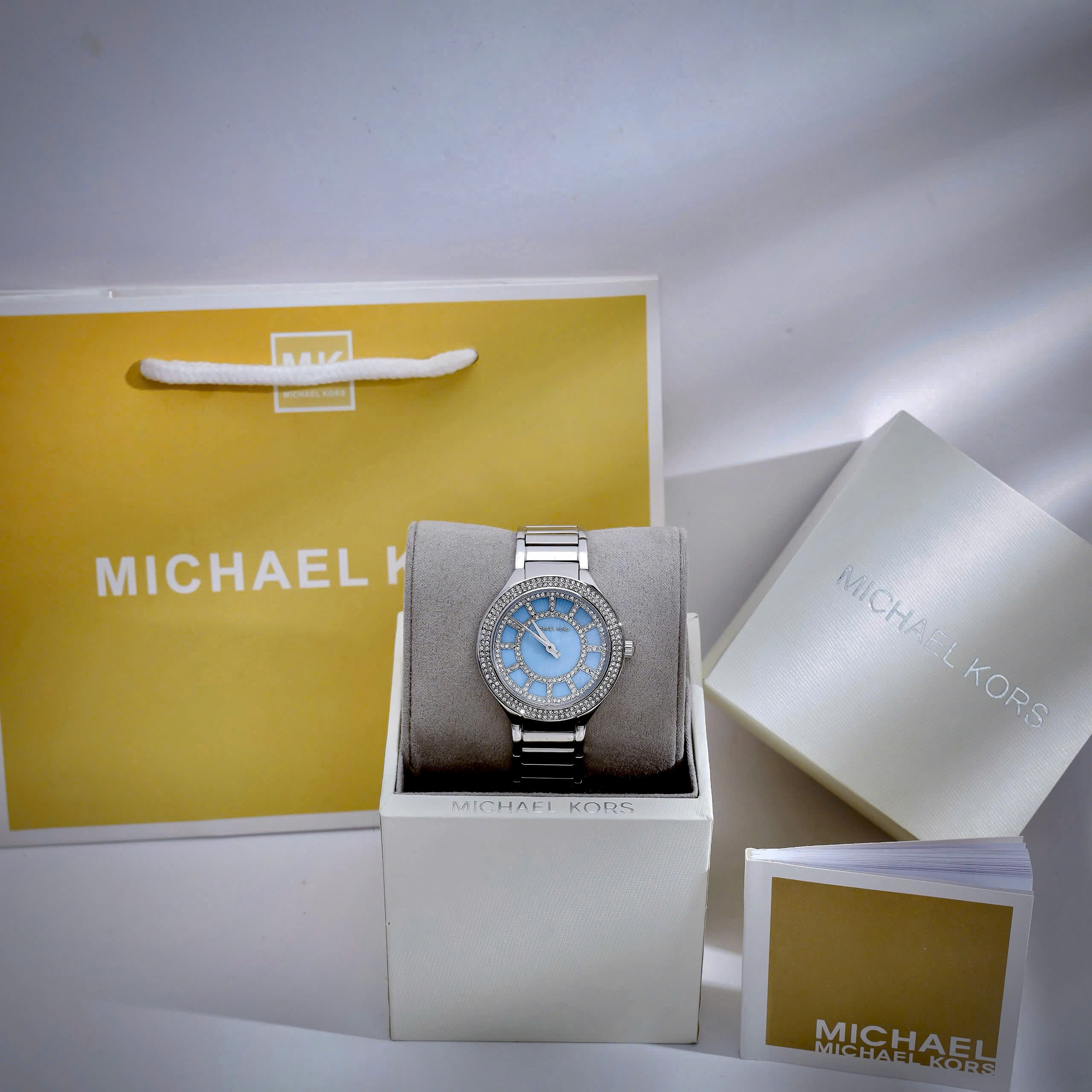 Đồng hồ Michael Kors Kerry nữ mặt xanh băng đính đá like auth 37mm