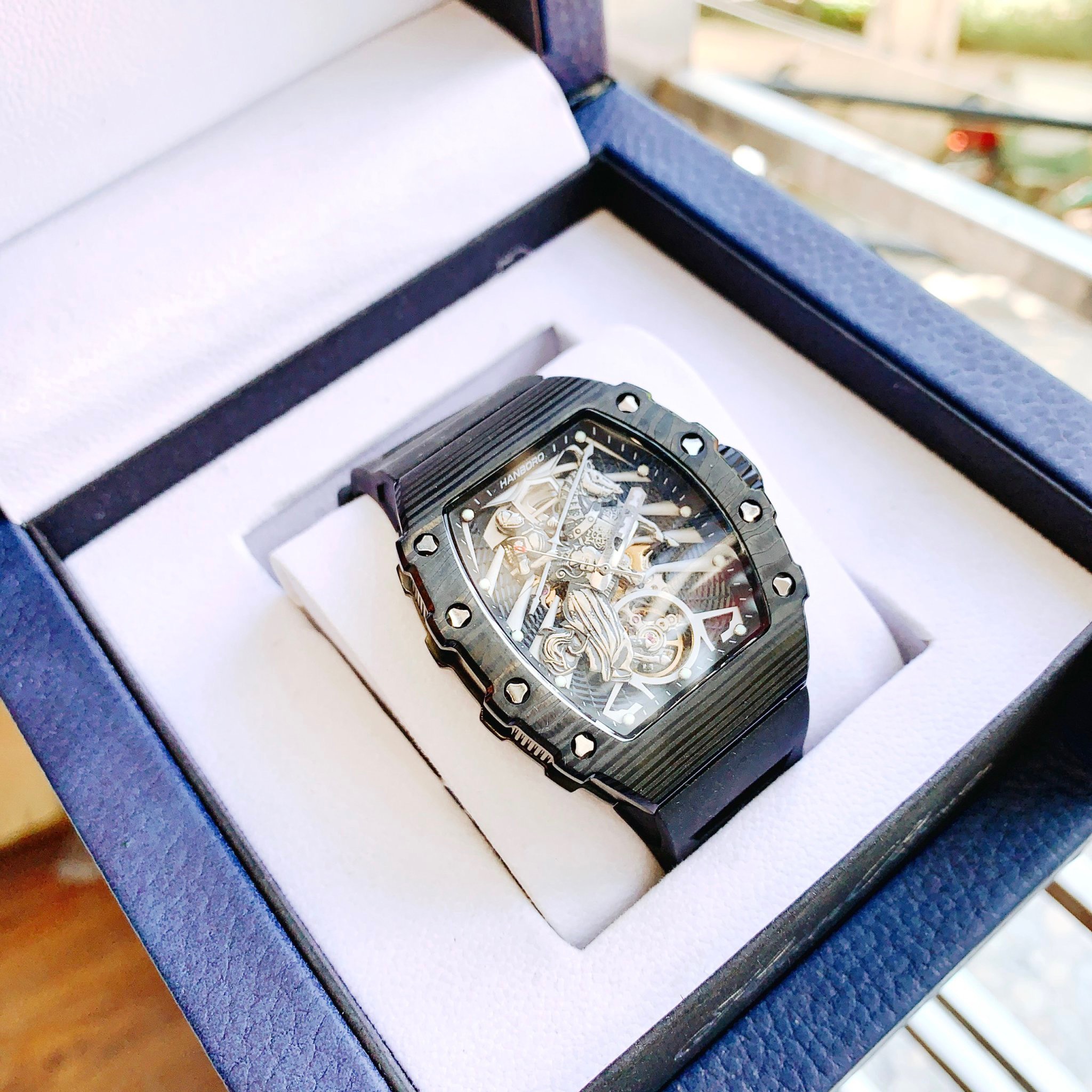 Nhắc đến đồng hồ, chúng ta thường nghĩ ngay đến thời gian cũng như hàm chứa nhiều điều xảy ra trong cuộc đời mỗi người. Đồng hồ đeo tay đang dần trở thành một món phụ kiện thời trang không thể thiếu trong tủ đồ của mỗi người! Nếu bạn đang băn khoăn và muốn tìm mua một mẫu đồng hồ nam chính hãng với chất lượng tốt, giá cả hợp lý cùng chính sách bảo hành dài và uy tín thì hãy cùng DWatch tham khảo Đồng hồ nam chính hãng Hanboro họa tiết kỵ sỹ 40x48mm nhé !