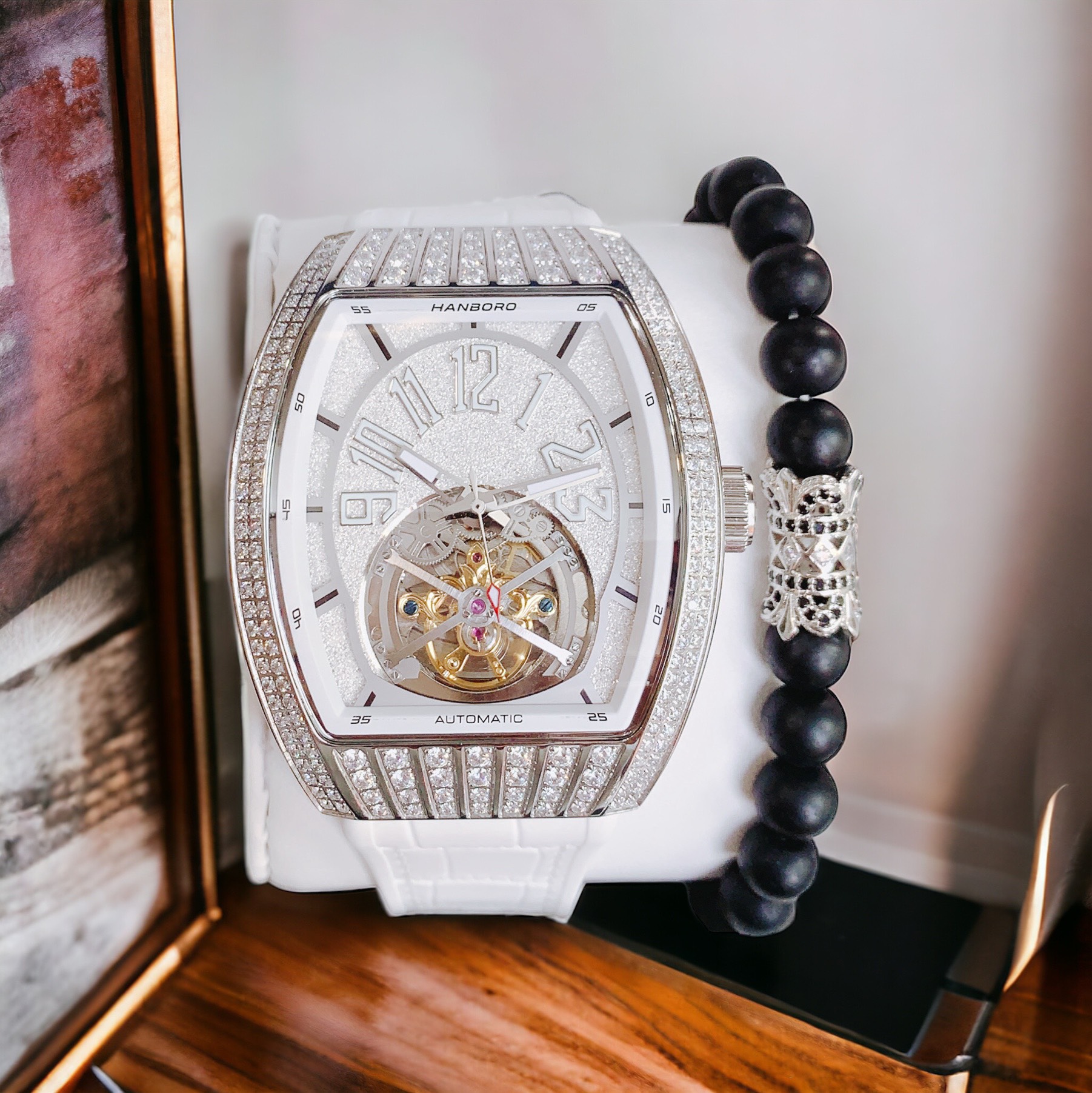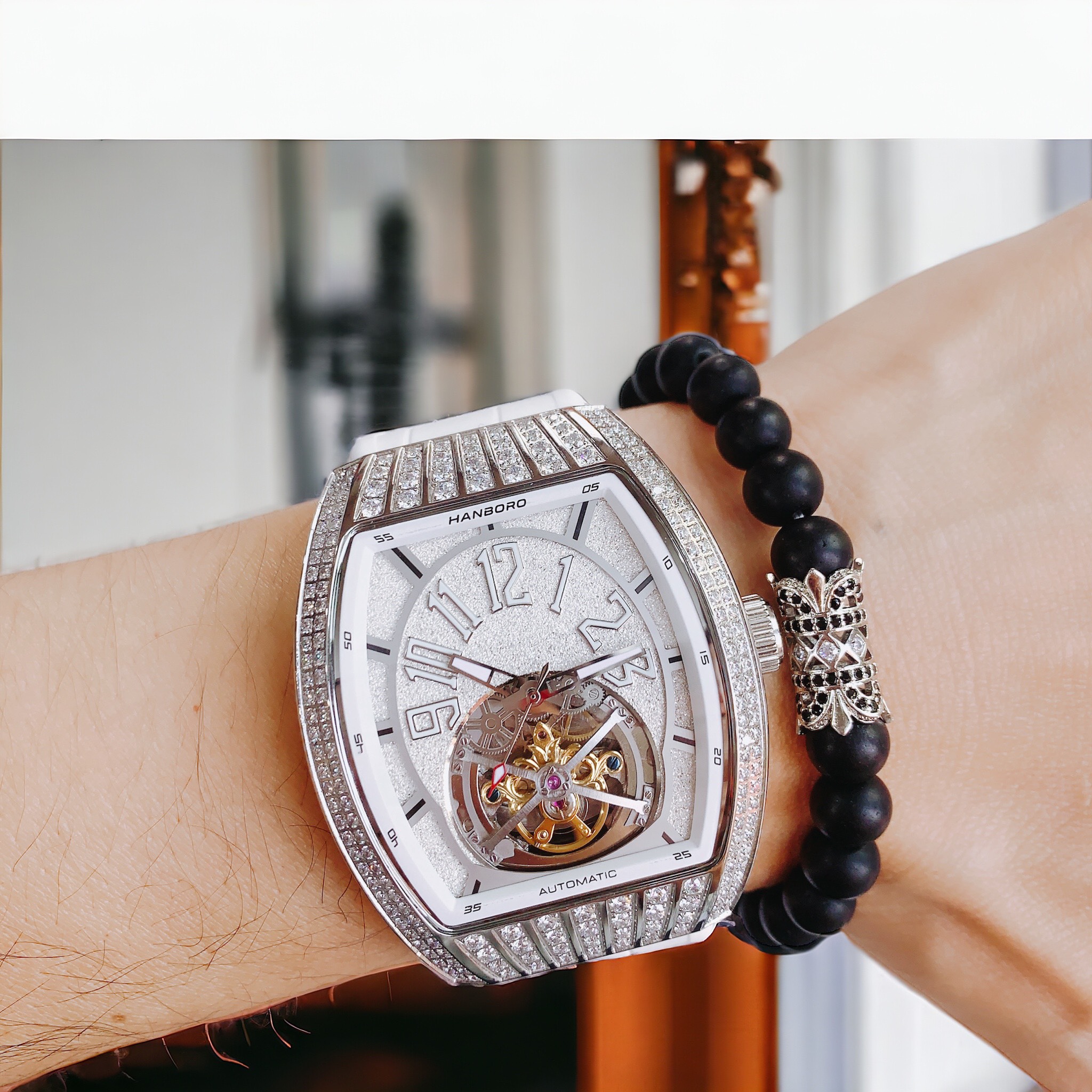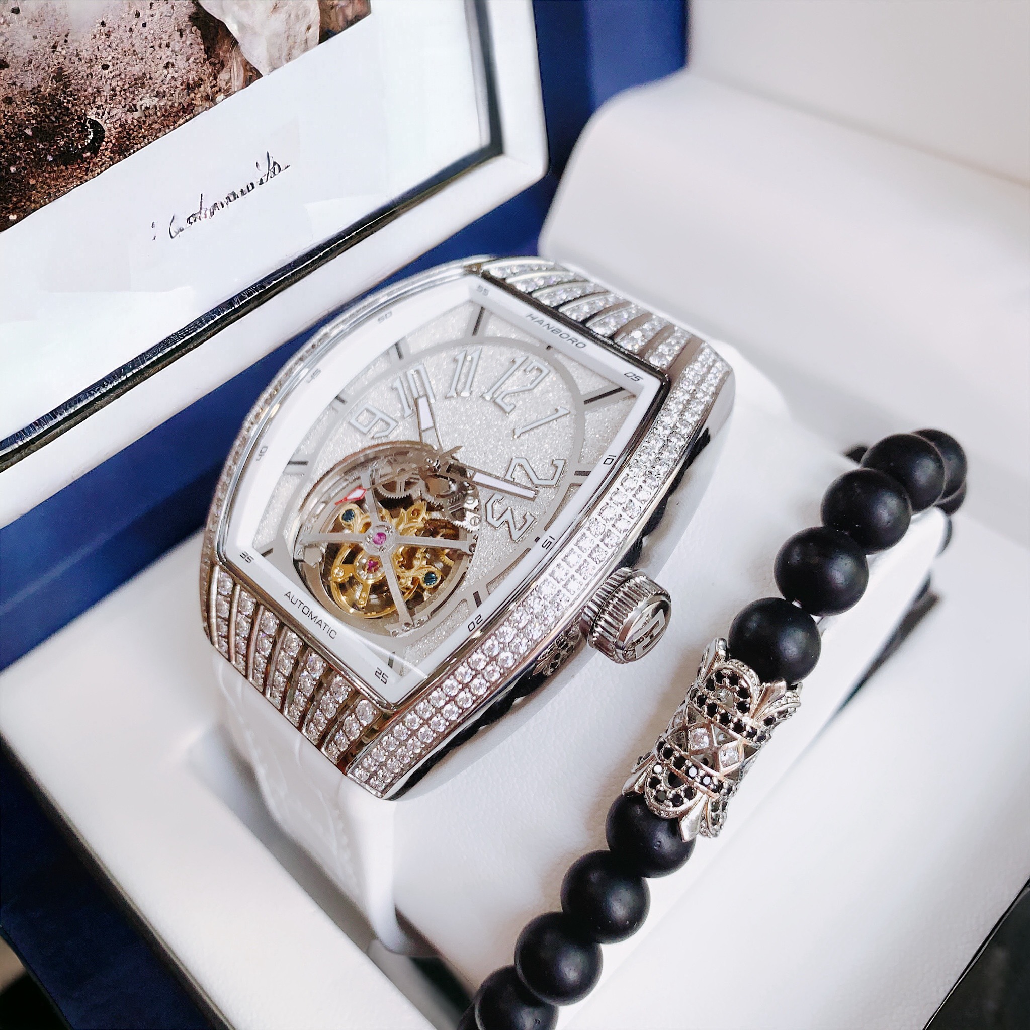 Đồng hồ nam Hanboro cơ lộ máy đính đá