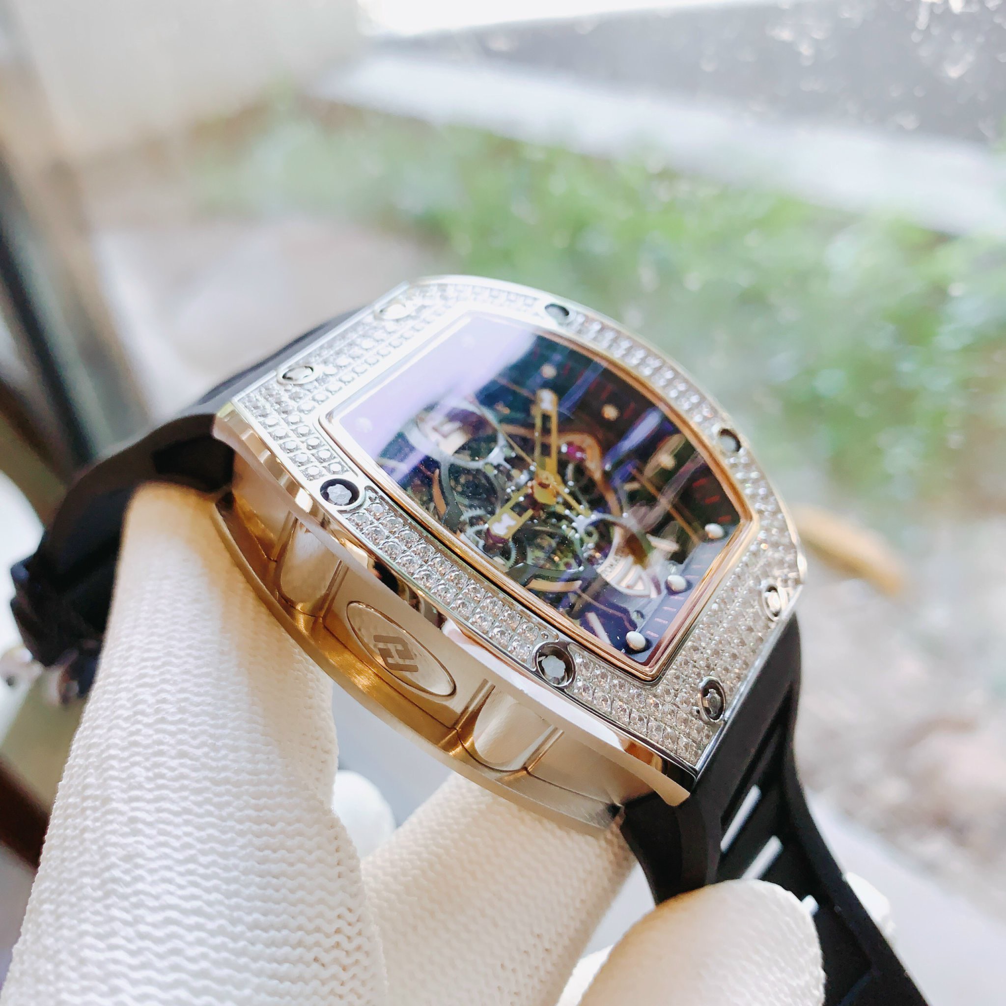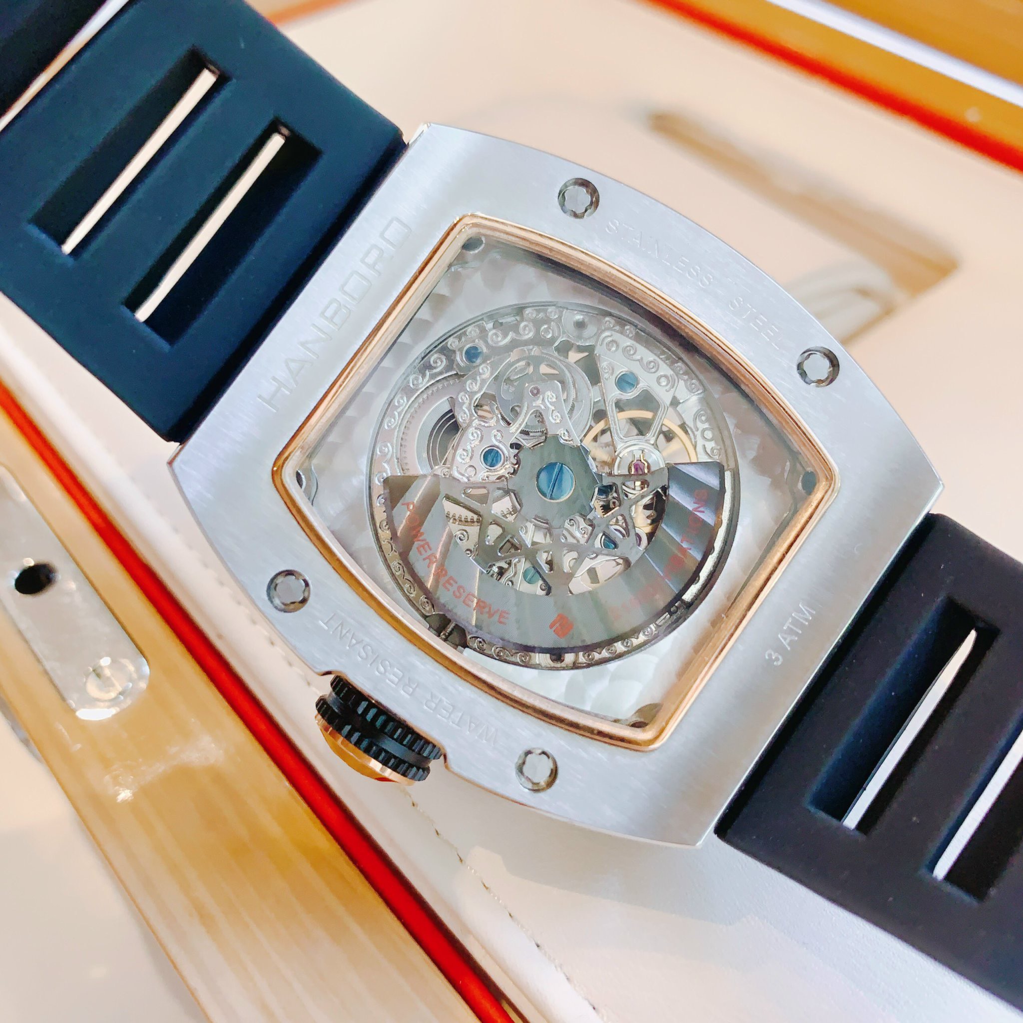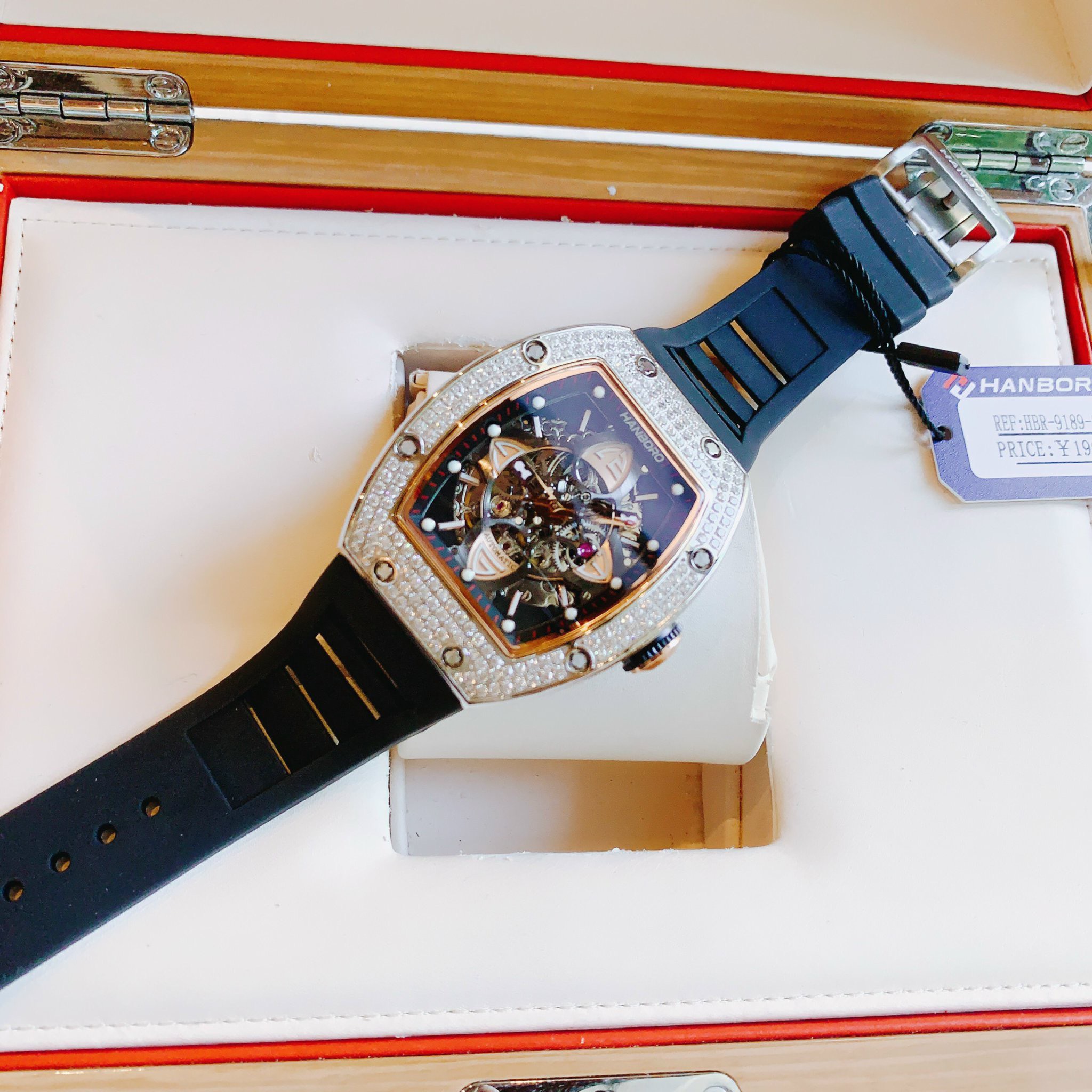 Đồng hồ nam máy cơ Hanboro chính hãng đính đá 40x48mm