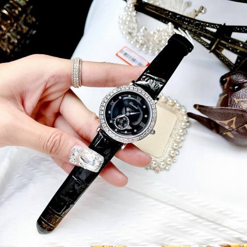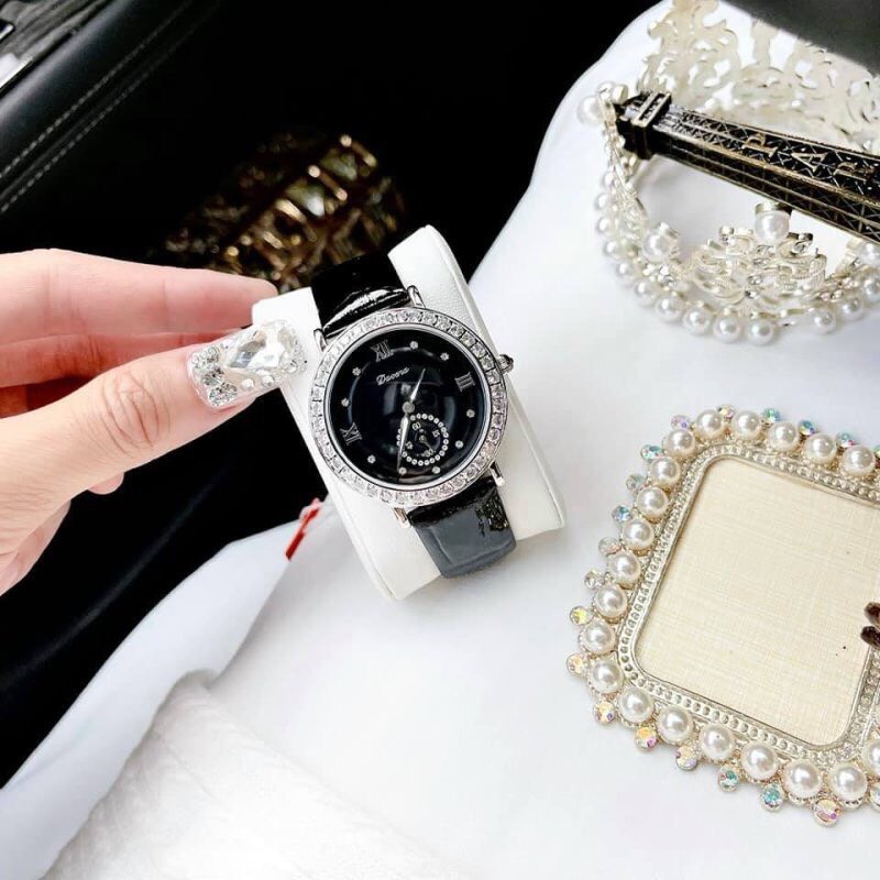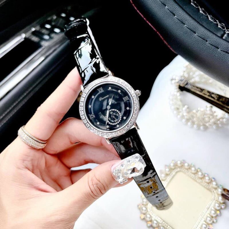Đồng hồ nữ chính hãng Davena 31903 mặt đen đính đá
