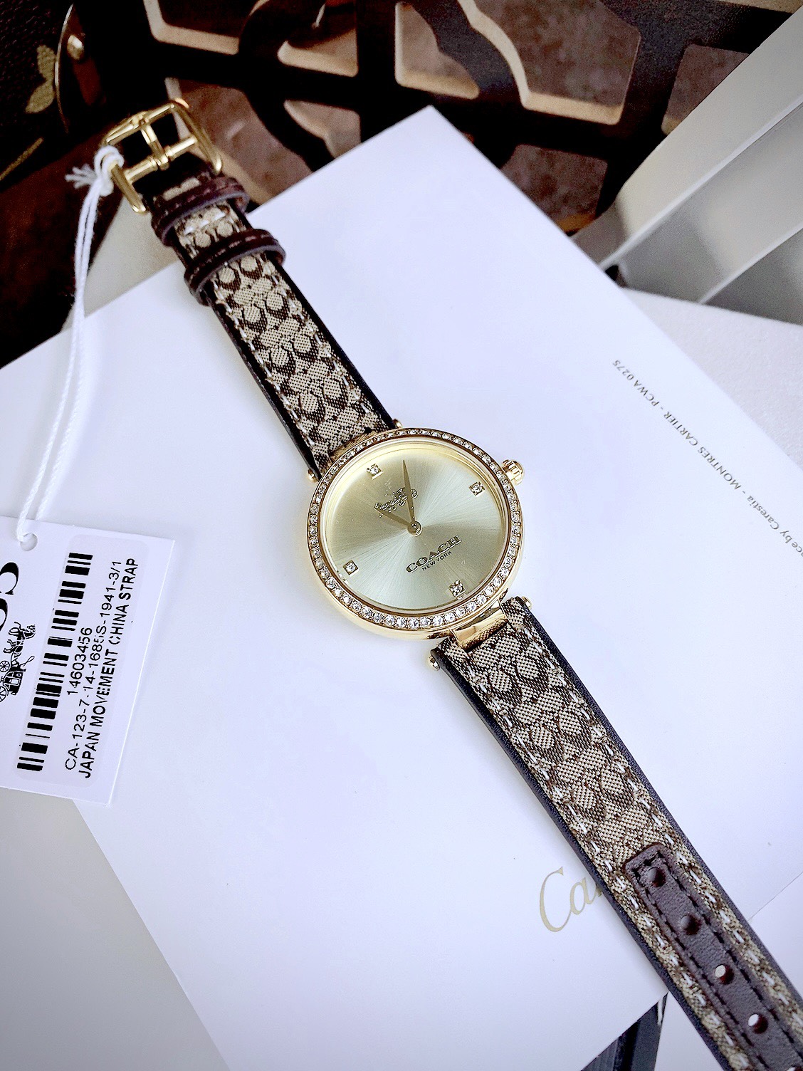 Đồng hồ nữ Coach Park Jacquard Signature dây da đính đá