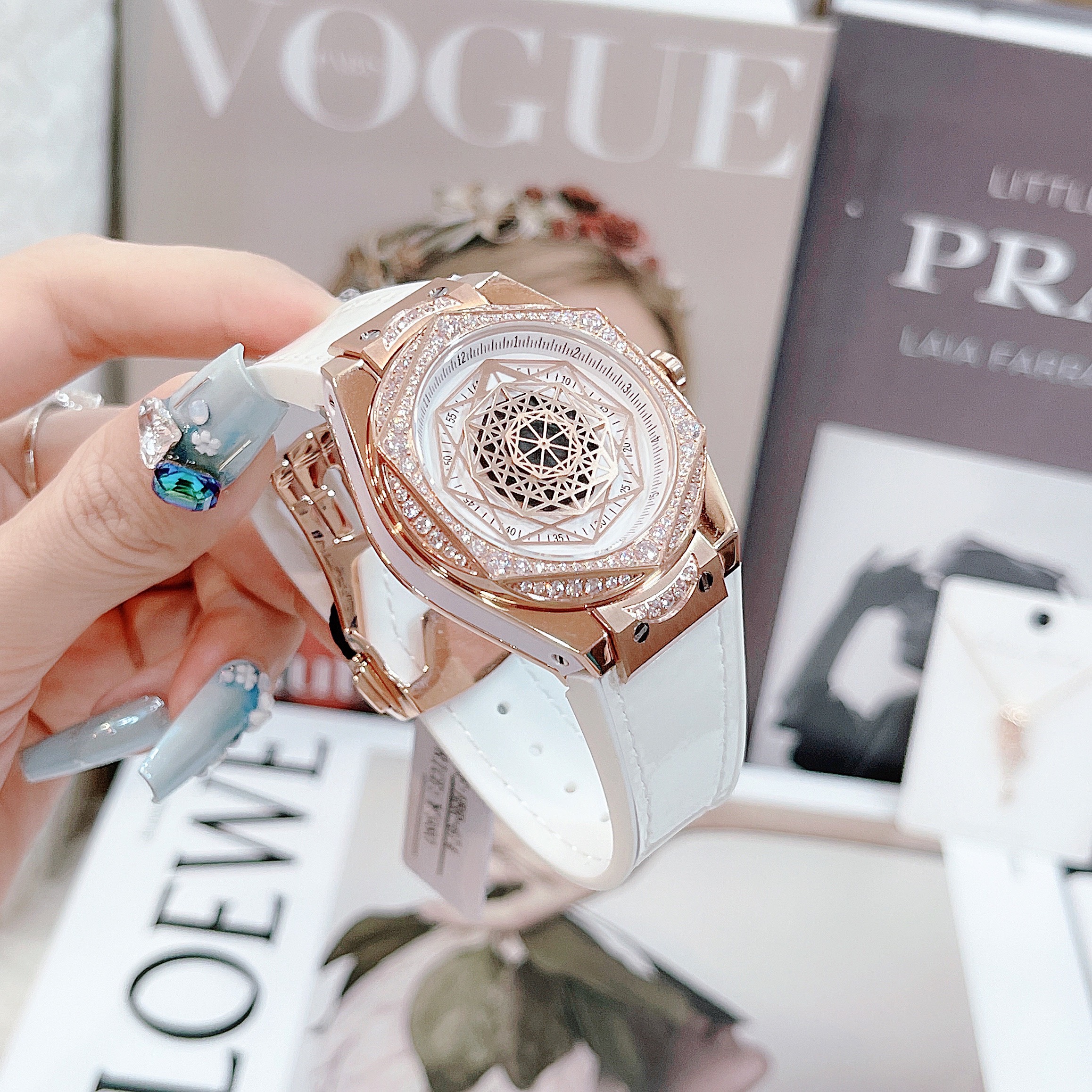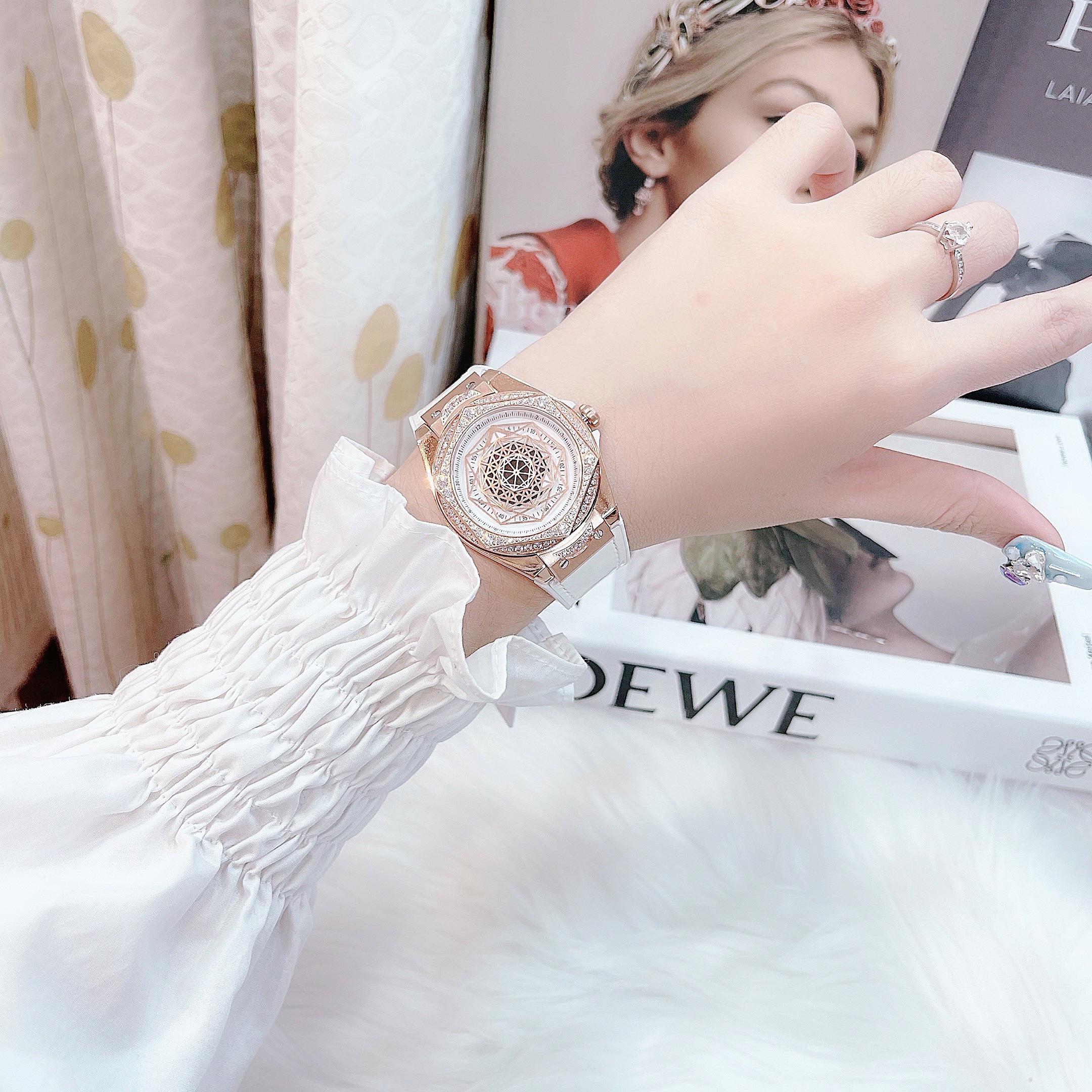 Đồng hồ Huboler nữ chính hãng màu trắng lên tay sang chảnh