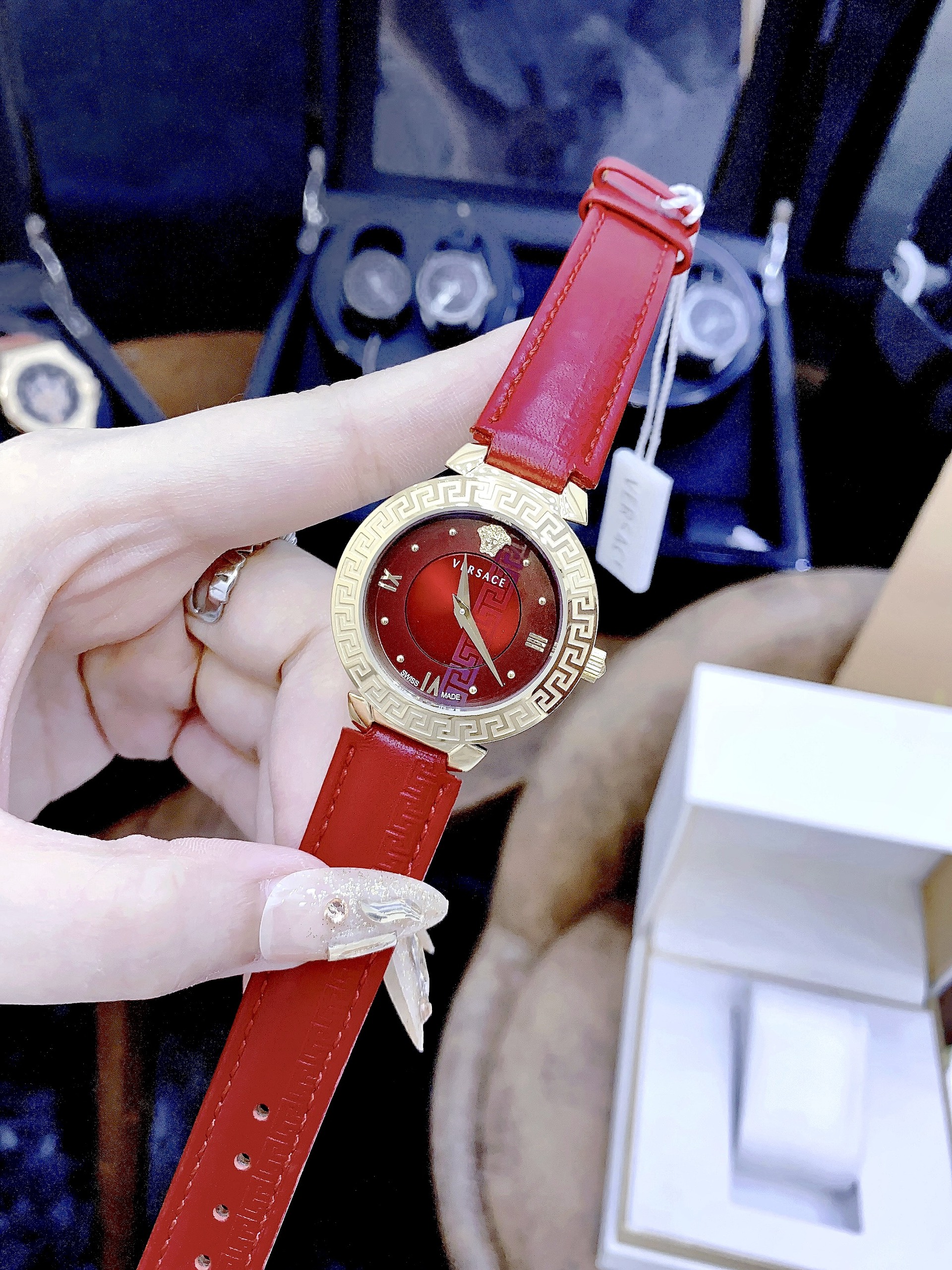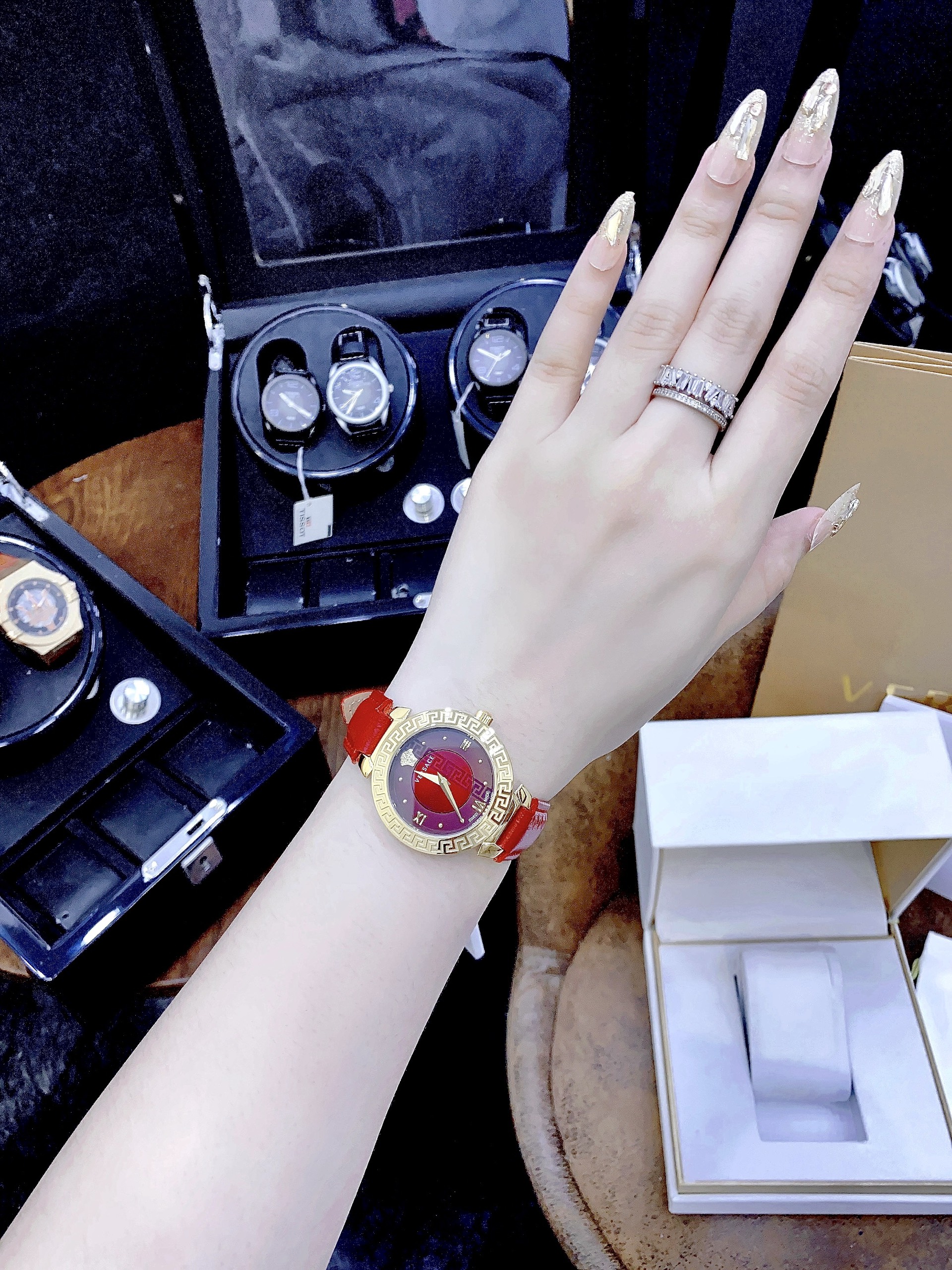 Đồng hồ nữ dây da màu đỏ Versace Daphnis like auth cao cấp 36mm