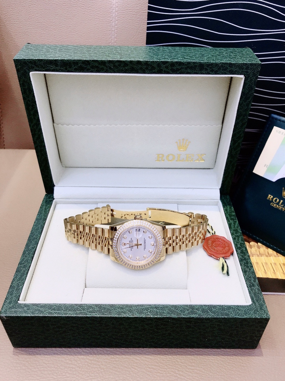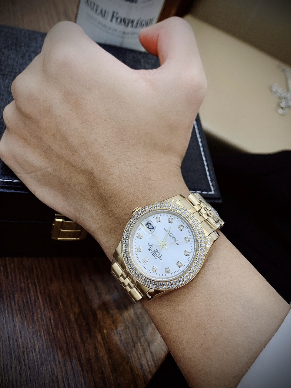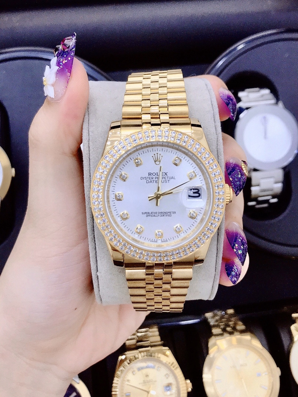 - Viền đồng hồ nữ đẹp Rolex đính đá lấp lánh nổi bật cực sang
