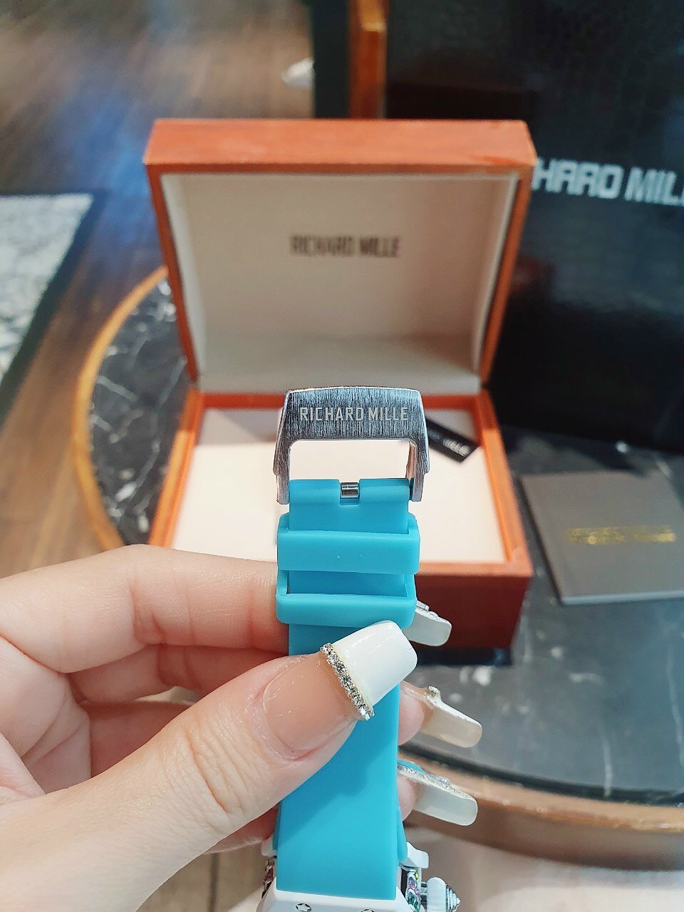 - Đồng hồ Richard Mille nữ dây cao su màu xanh duowng là màu biểu trưng cho sự trung thành, tin cậy của con người
