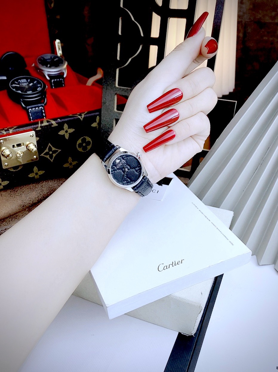 Đồng hồ nữ Gucci Ladies YA 126579 like auth dây da mặt đen