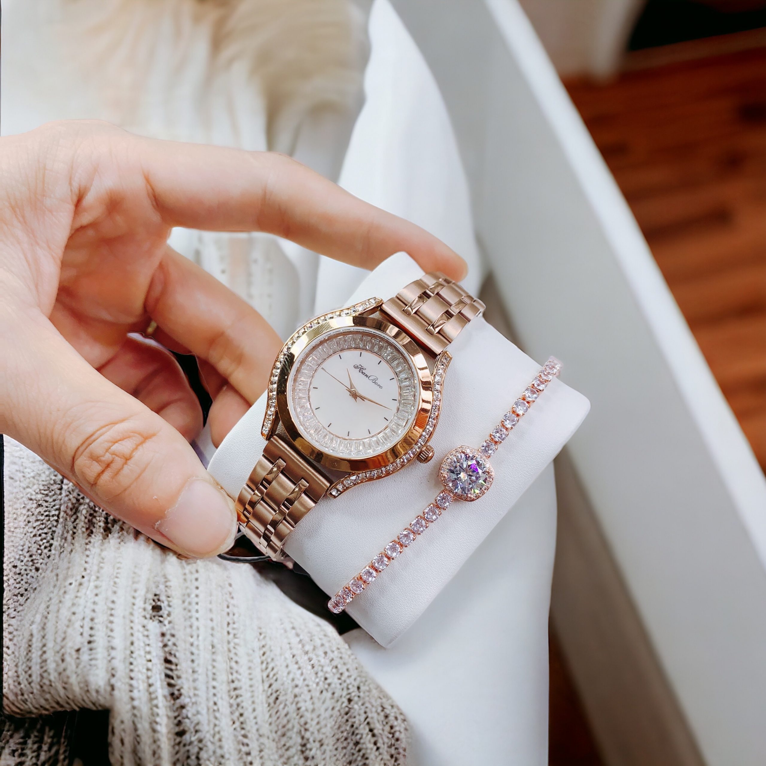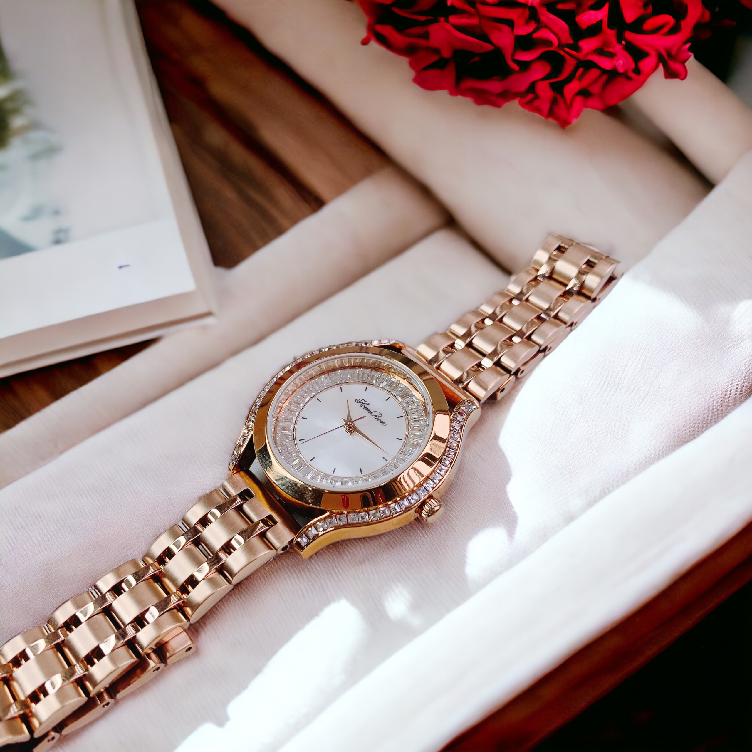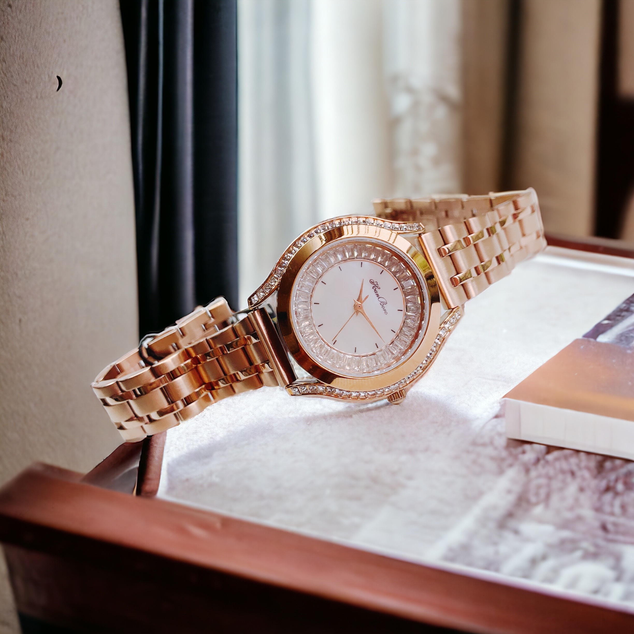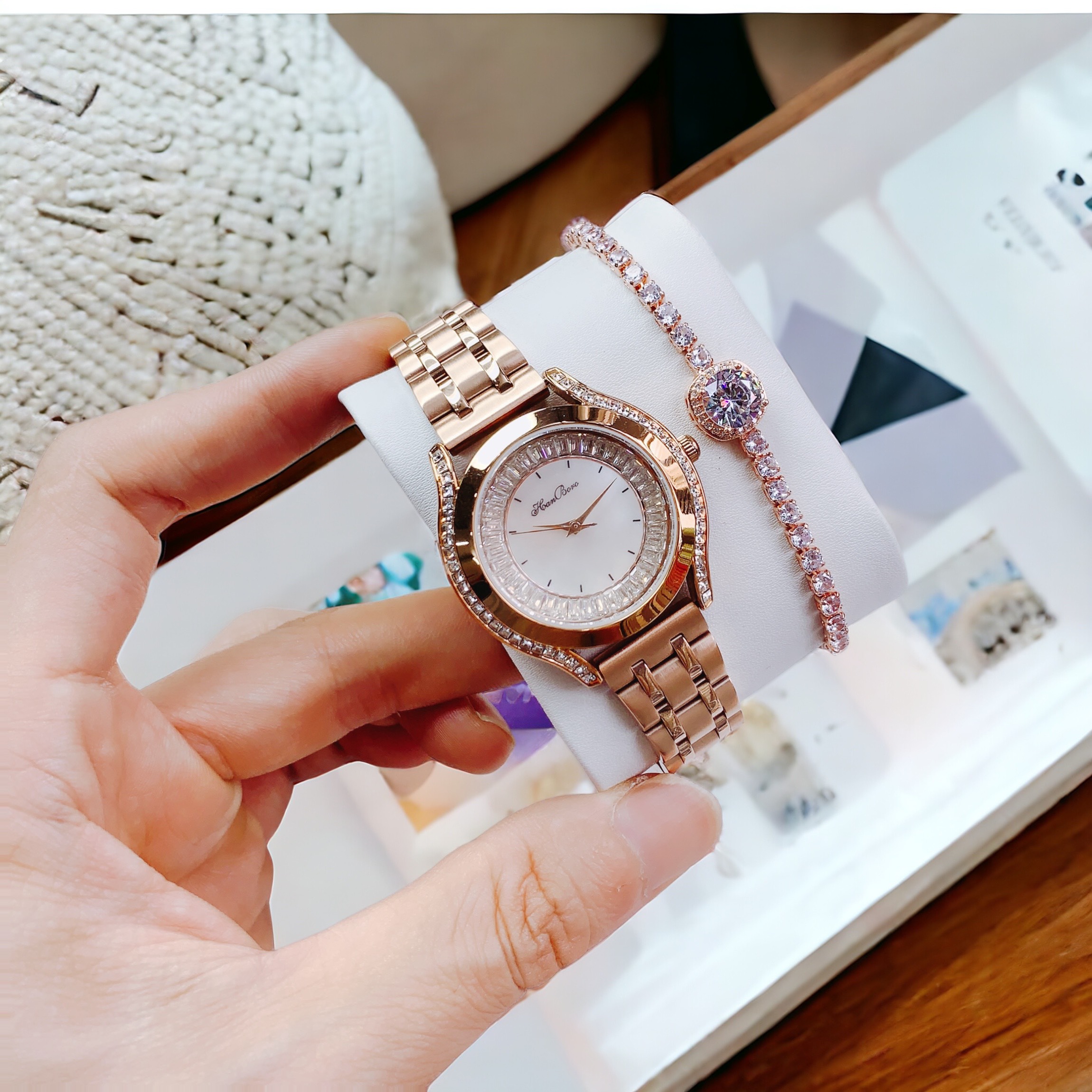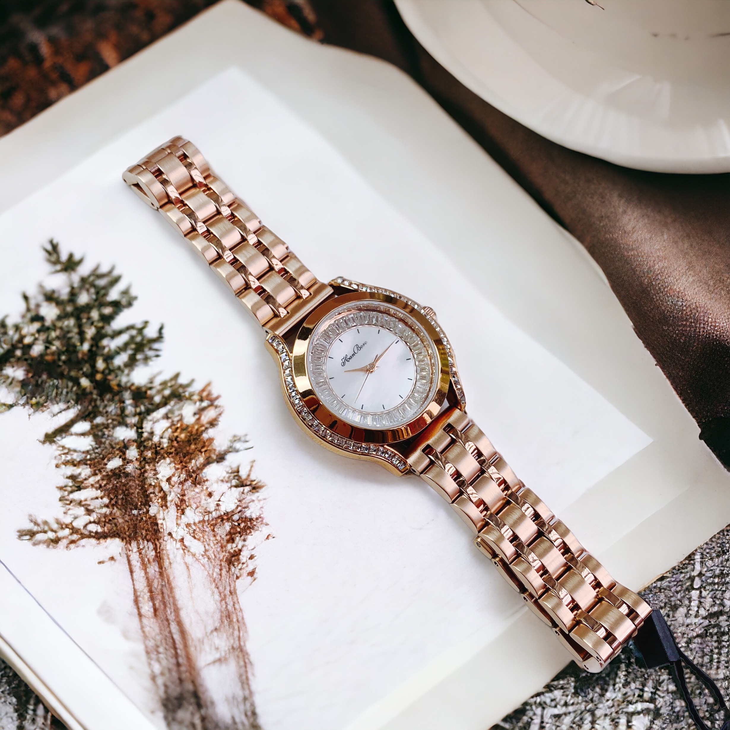 Đồng hồ nữ Hanboro mặt xà cừ đính đá