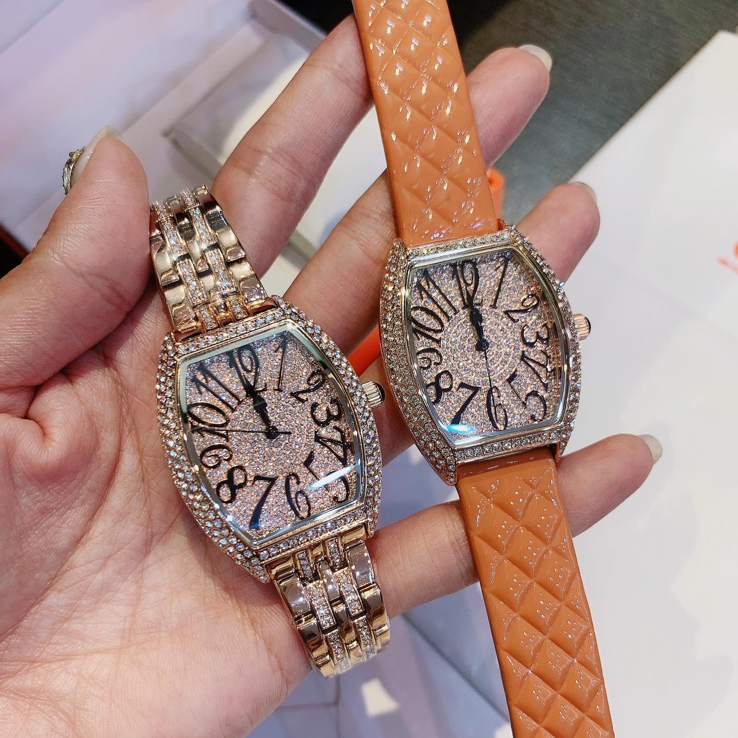 - Đồng hồ nữ hàng hiệu Davena Austria 61056 phiên bản Franck Muller tương tự về thiết kế và kiểu dáng mặt Oval của hãng tiền tỉ này