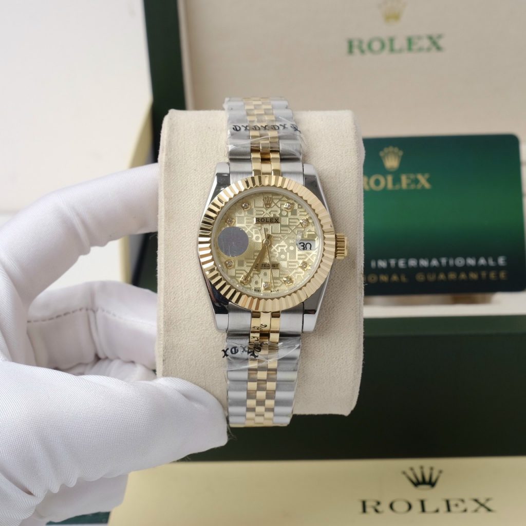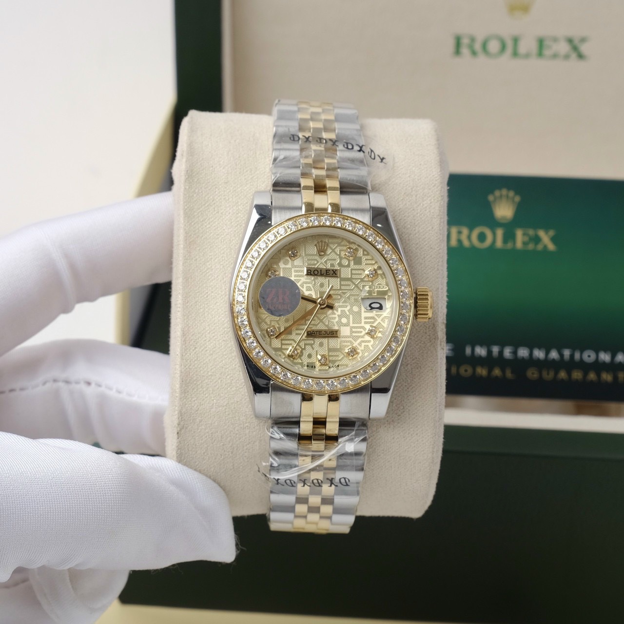Đồng hồ nữ Rolex mặt vi tính dây kim loại demi gold máy cơ Nhật 31mm