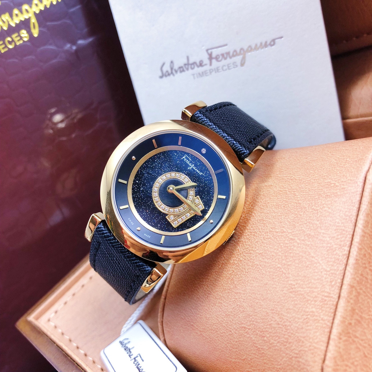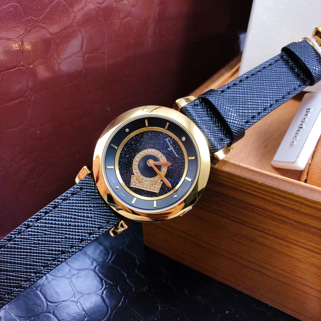 - Đồng hồ nữ Salvatore Ferragamo nổi bật với thiết kế mặt lấp lánh như những ánh sao