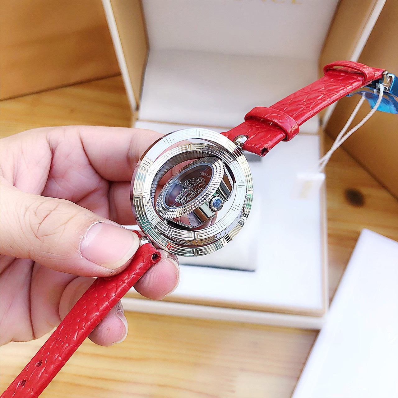 - Phần viền mặt đồng hồ đặc biệt và độc đáo nhất với hai vòng xoay 360 độ thay đổi mặt, vòng trong khắc laser chữ Versace.