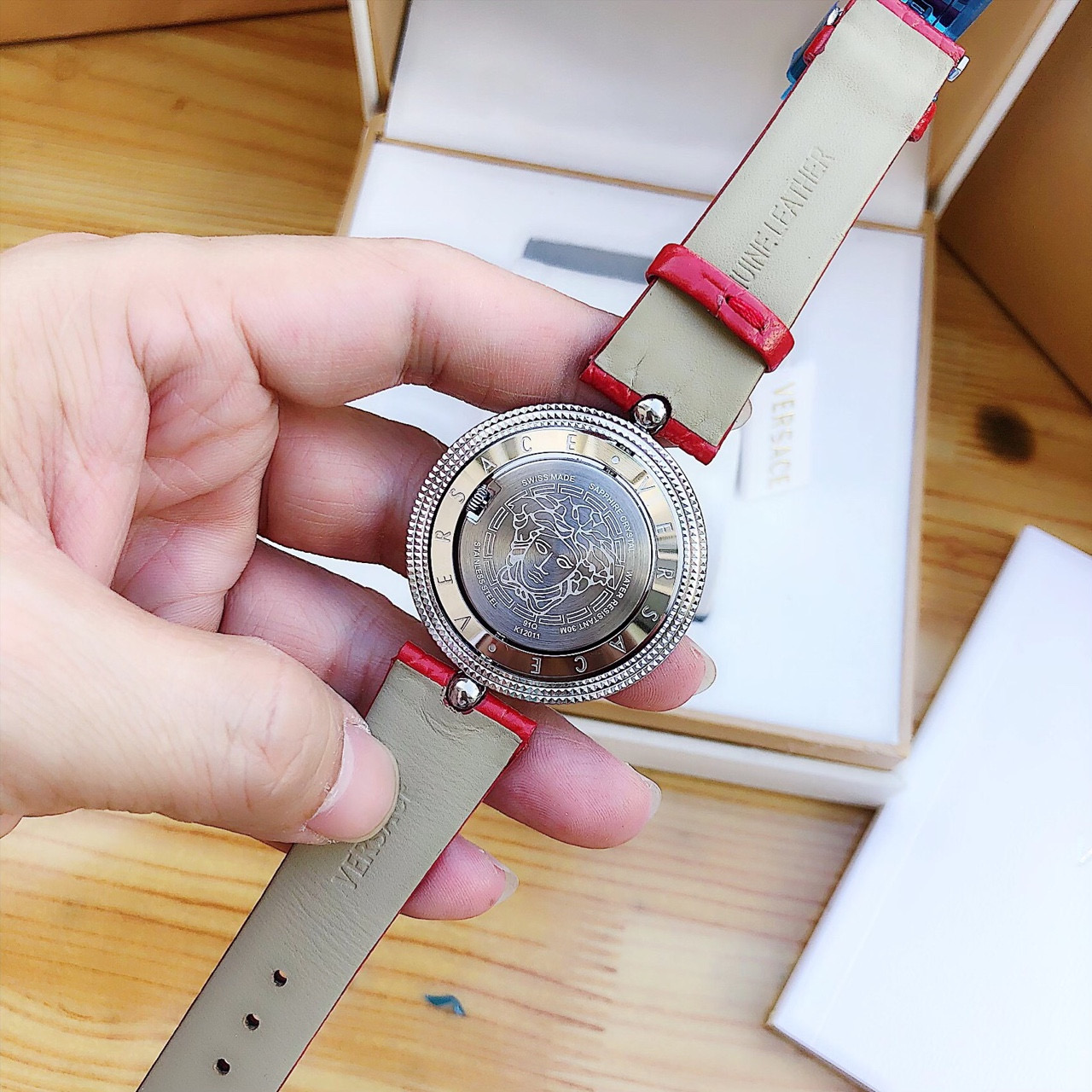 - Đáy đồng hồ khắc logo Medusa tinh tế và sắp nét, sử dụng máy Thụy Sĩ với độ chính xác và bền bỉ cao.