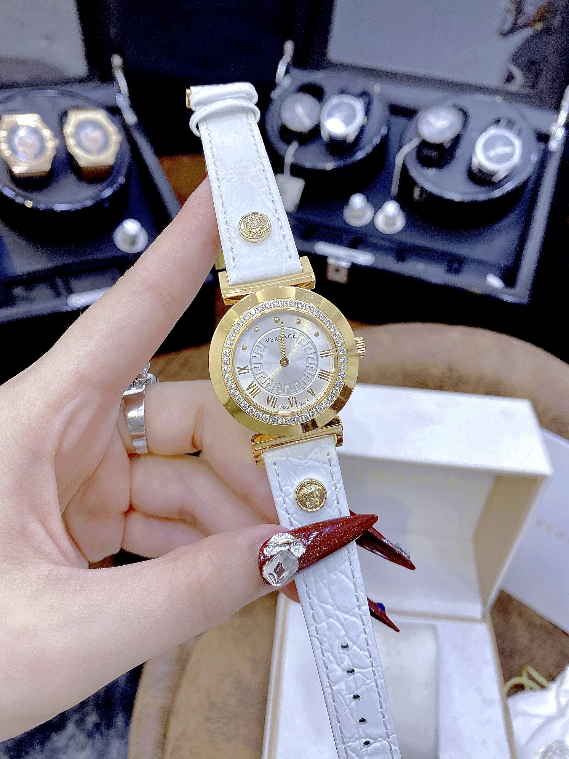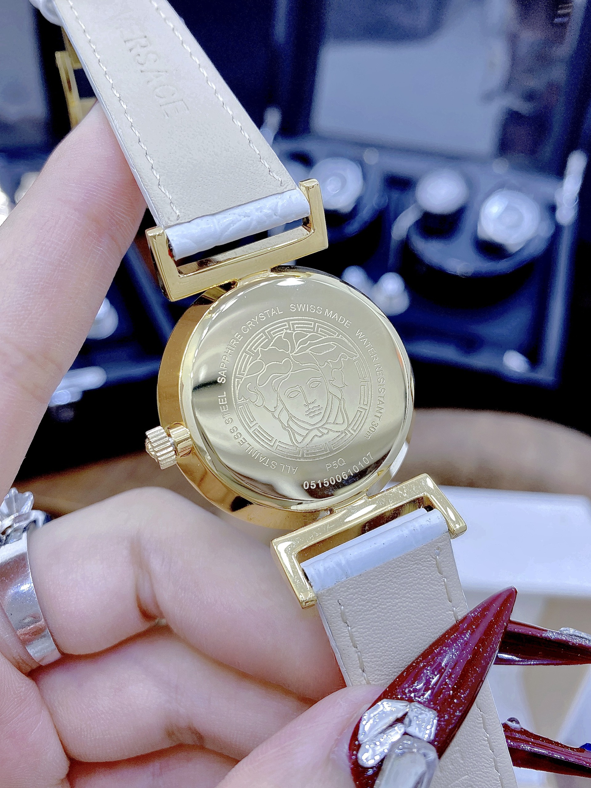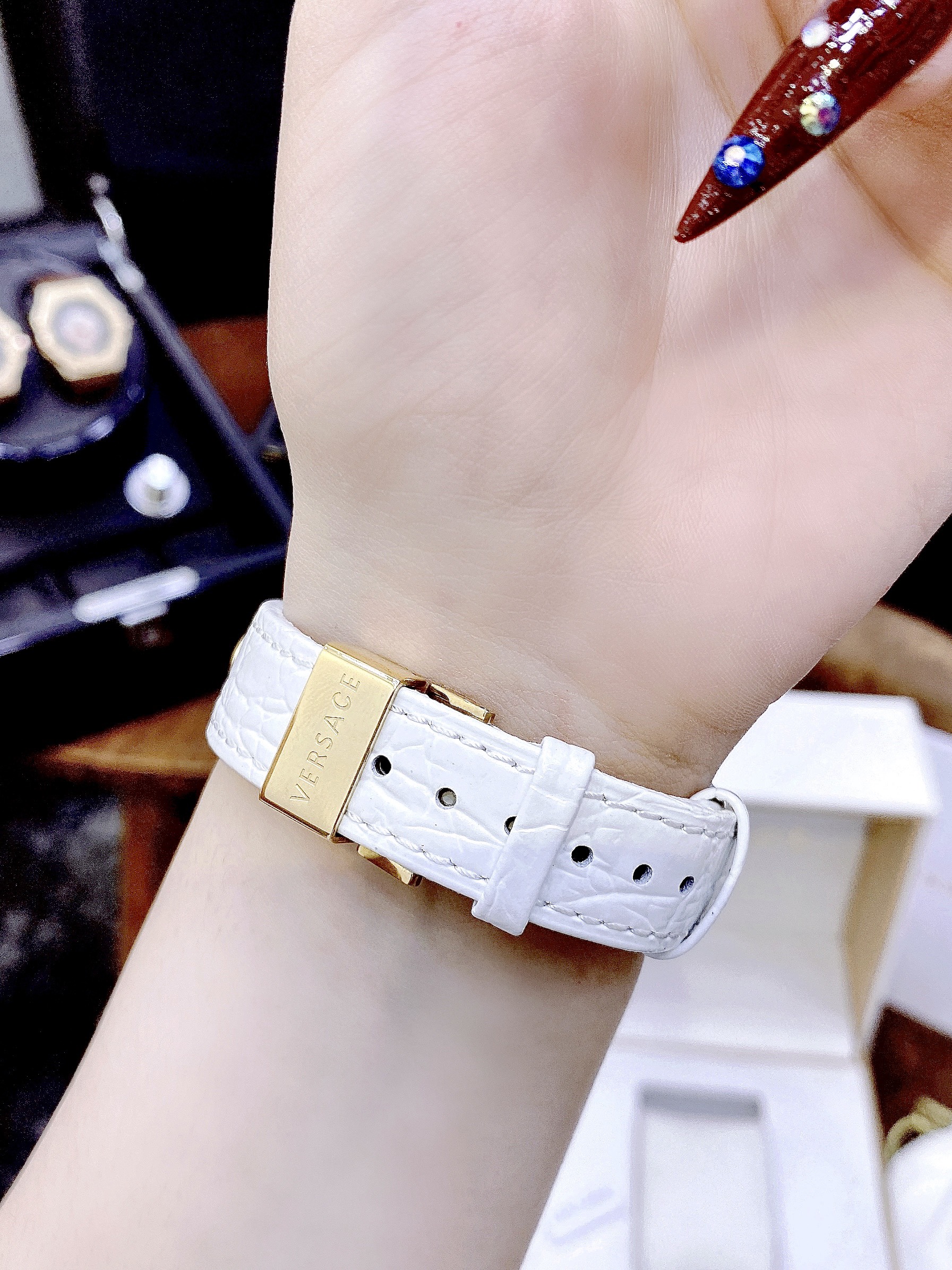Đồng hồ nữ Versace Vanity like auth dây da màu trắng mạ vàng 35mm