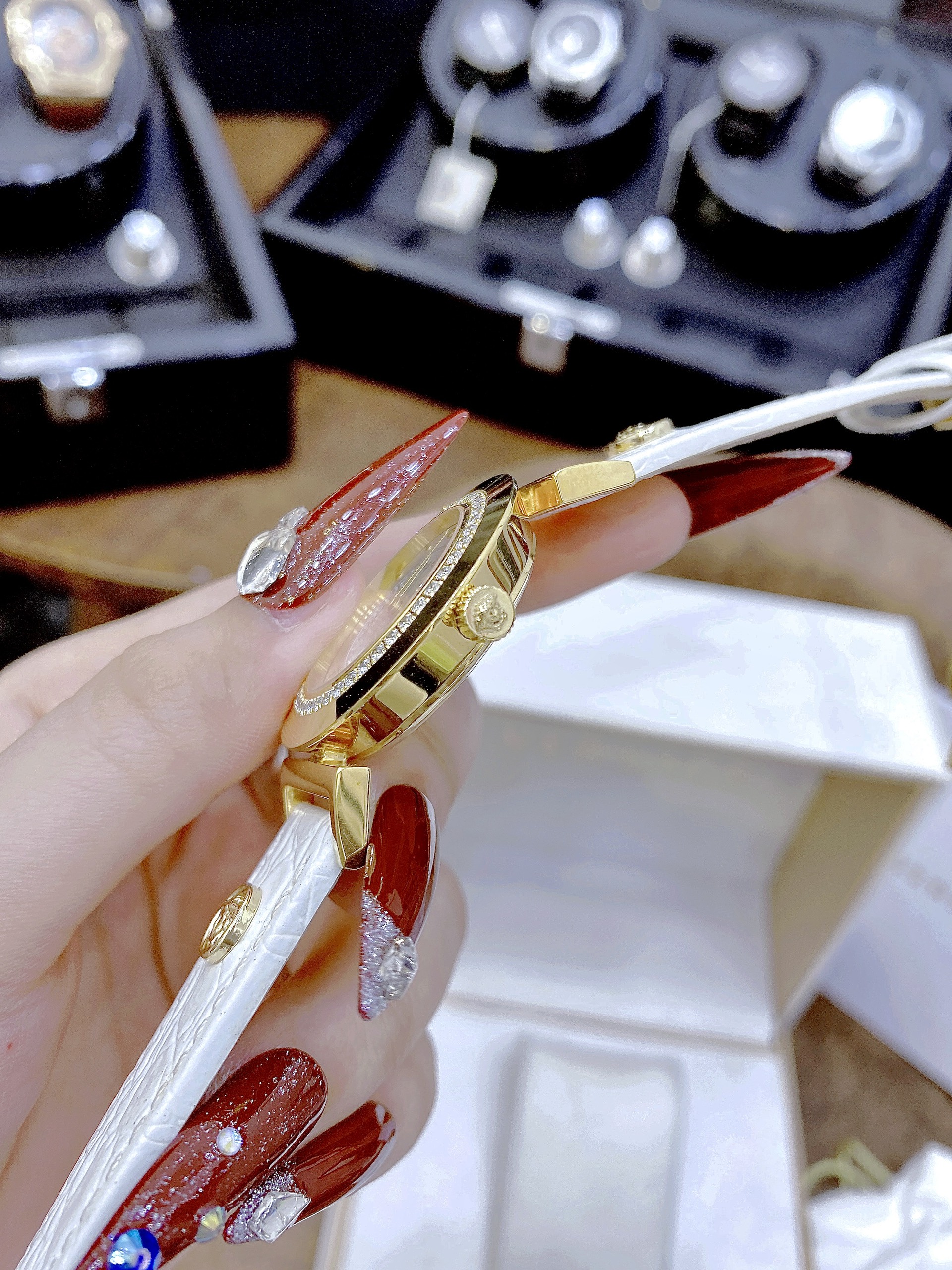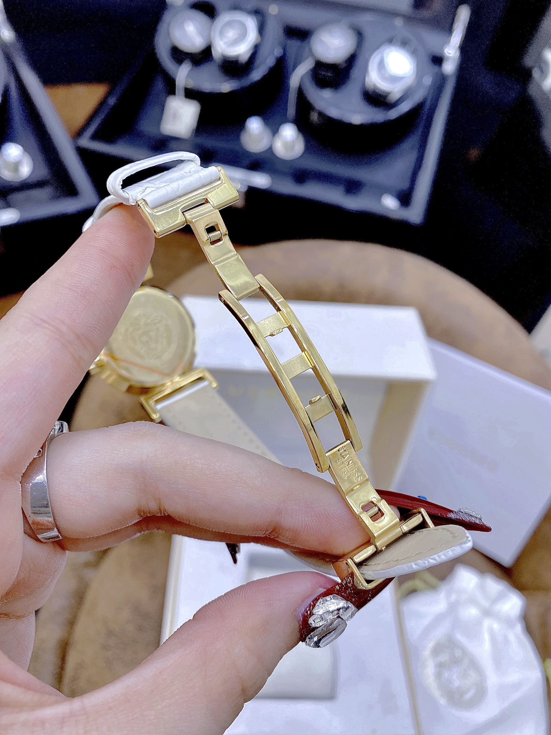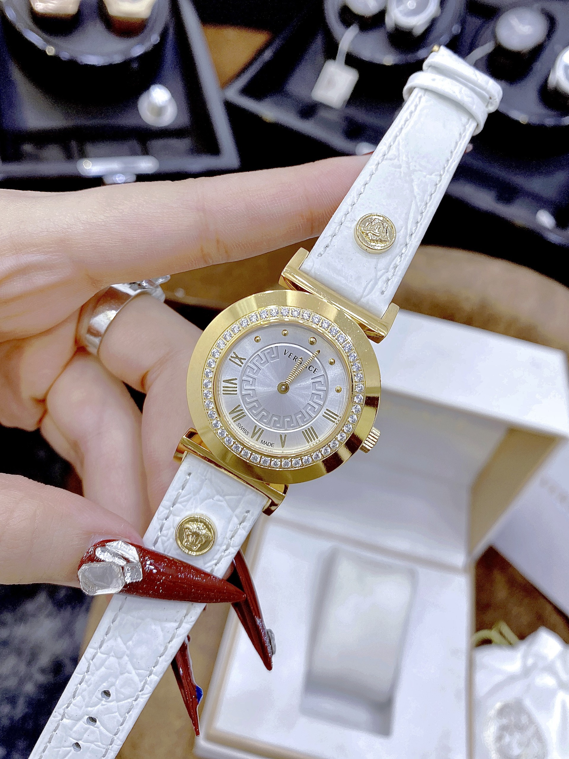 Đồng hồ nữ Versace Vanity like auth dây da màu trắng mạ vàng 35mm