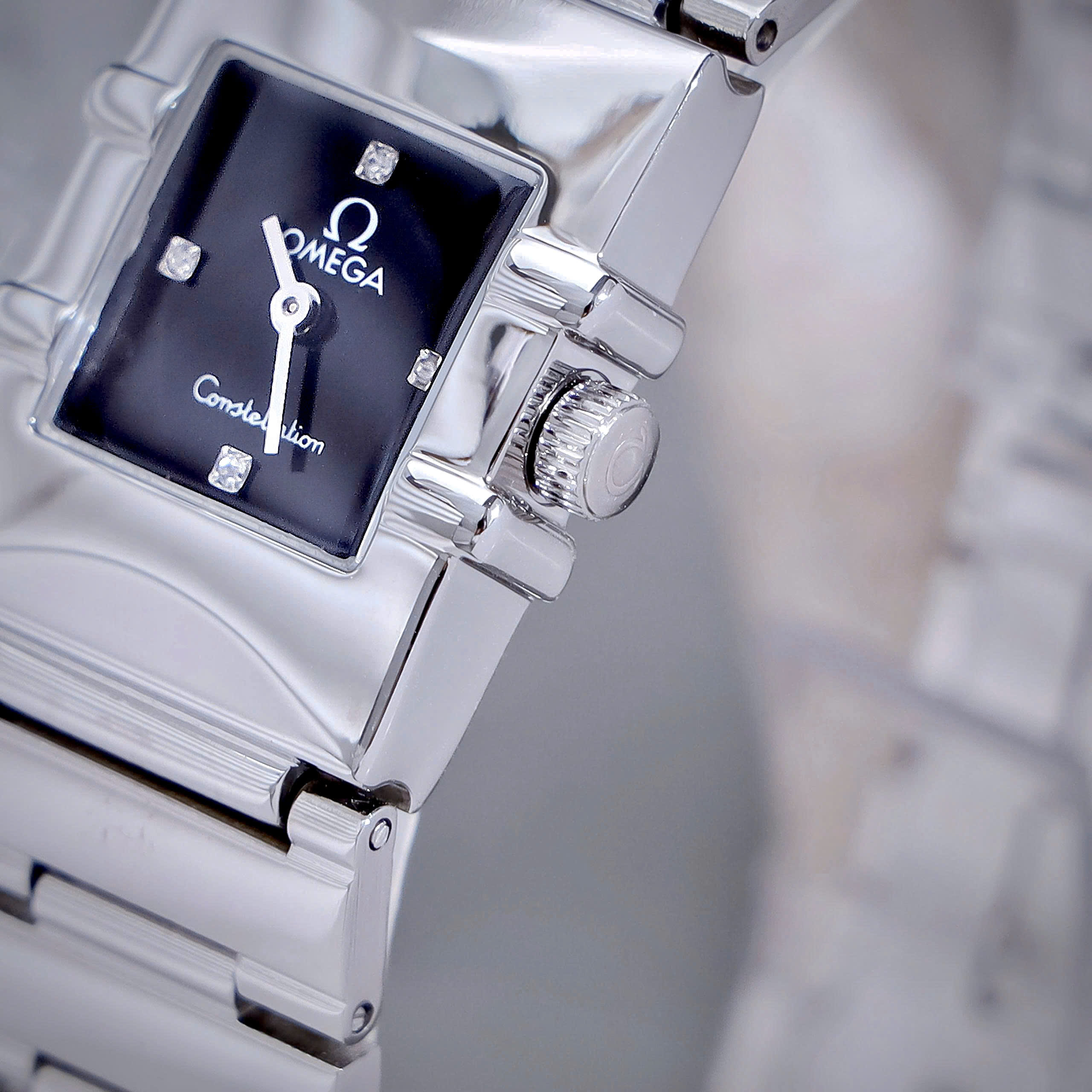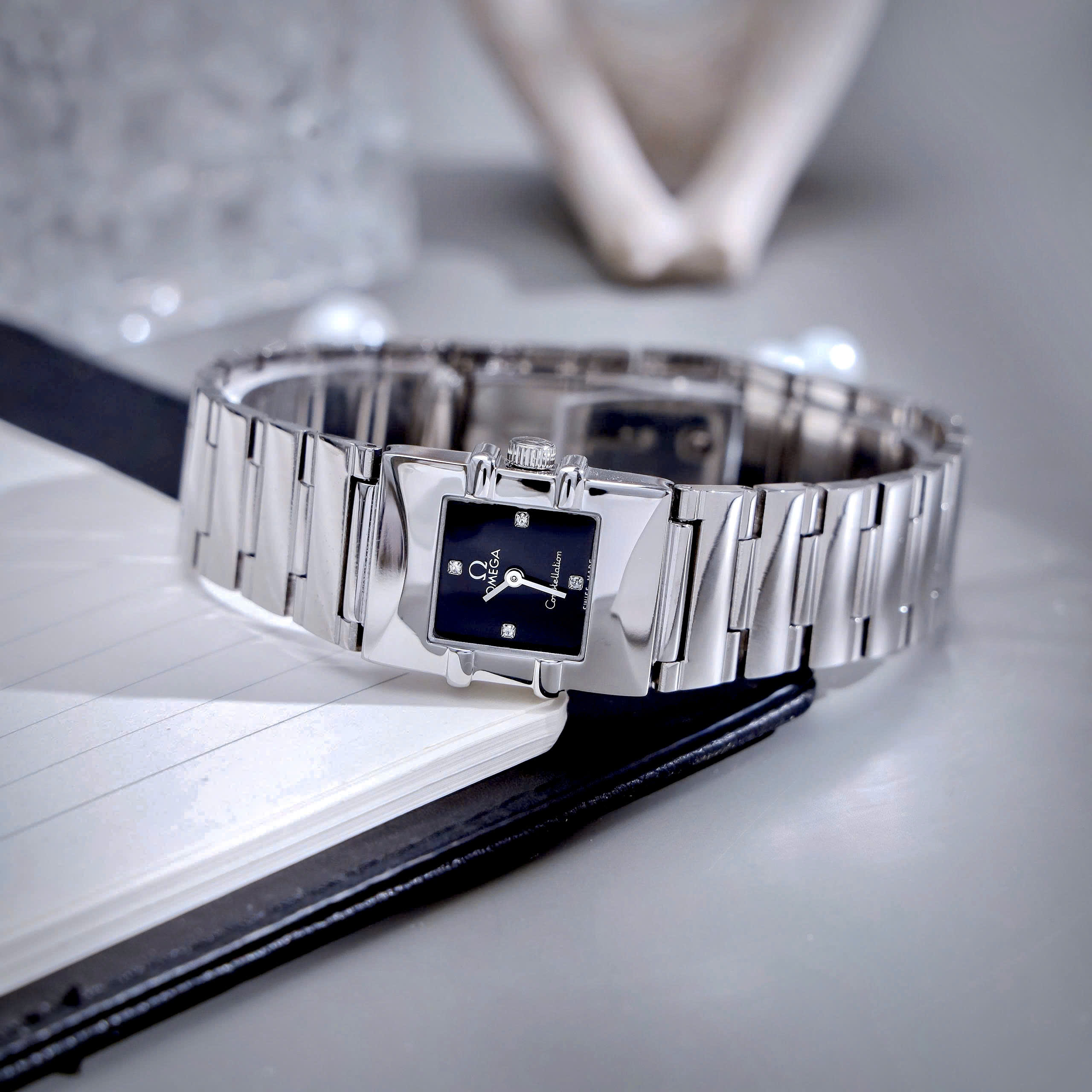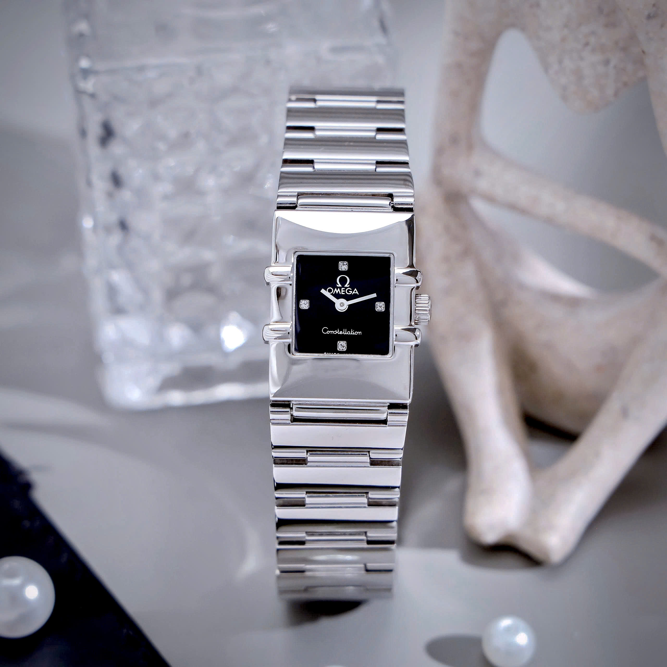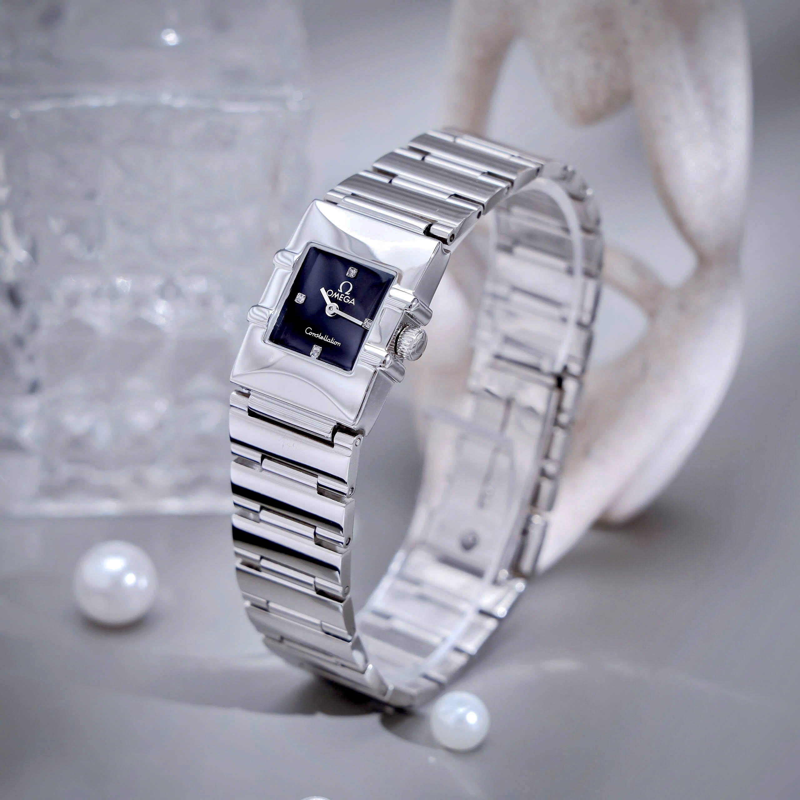 Đồng hồ Omega Constellation Quadra nữ dây kim loại máy Pin Nhật fake cao cấp 22x28mm