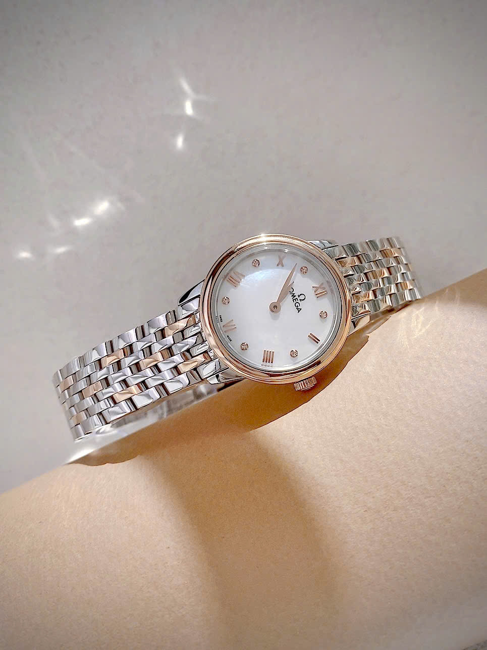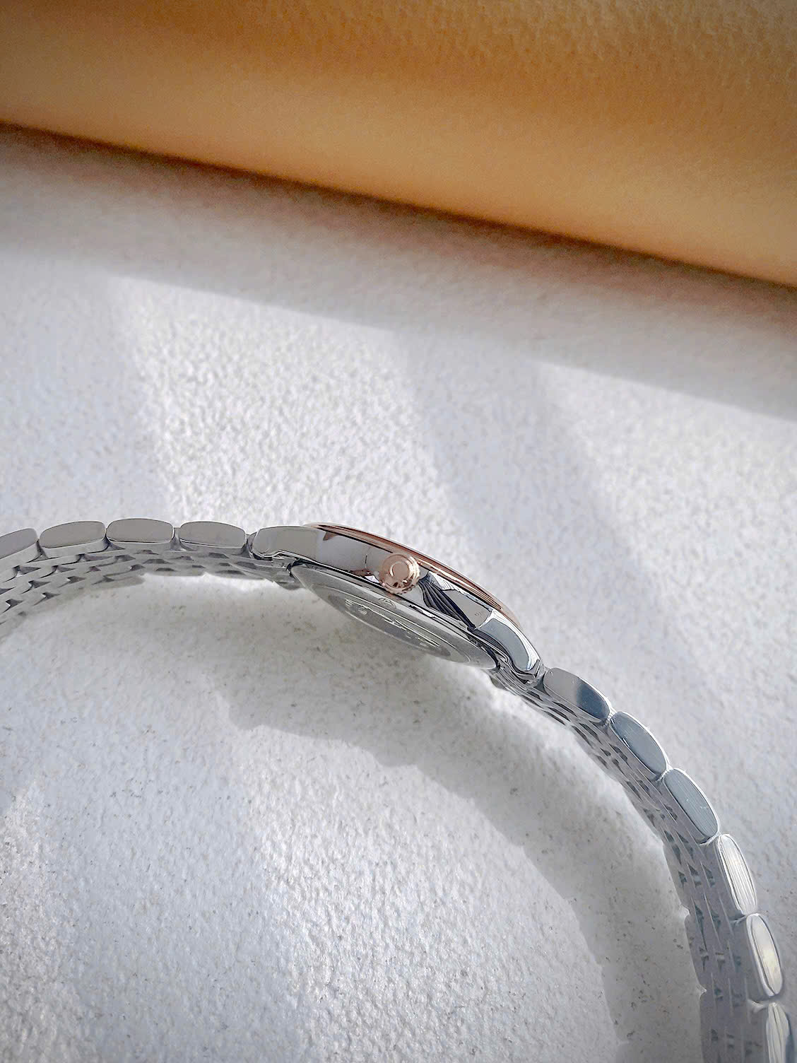 Đồng hồ Versace Tribute nữ mặt trắng dây kim loại Rep 11 35mm