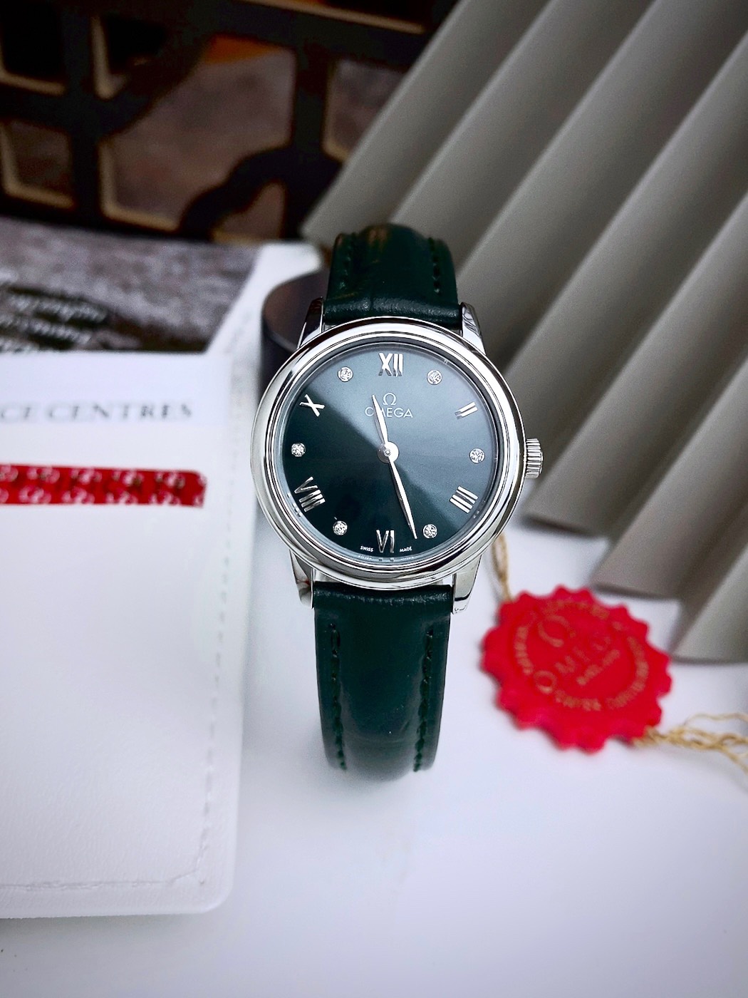 Đồng hồ Omega Deville nữ dây da màu xanh lá cây