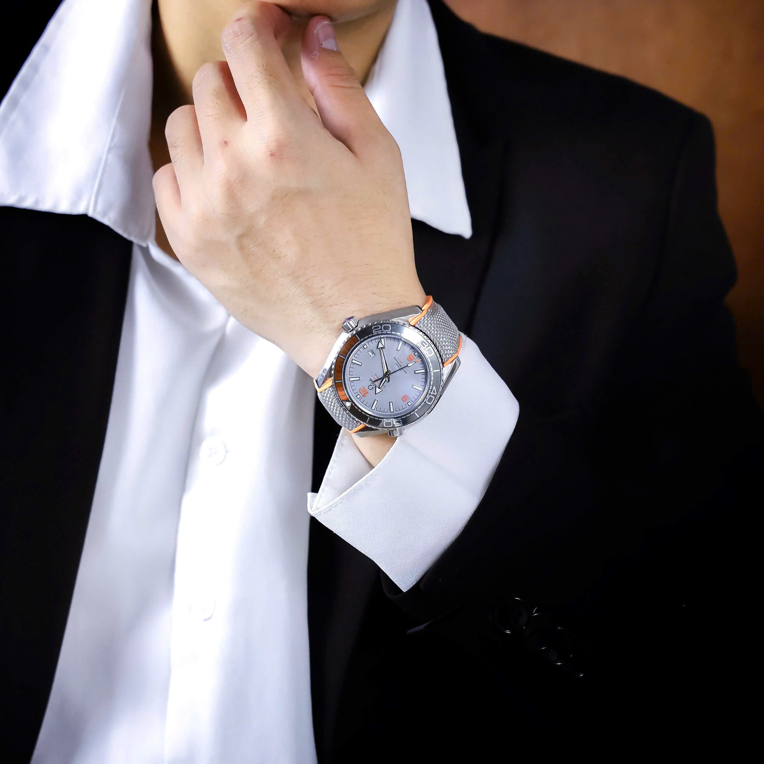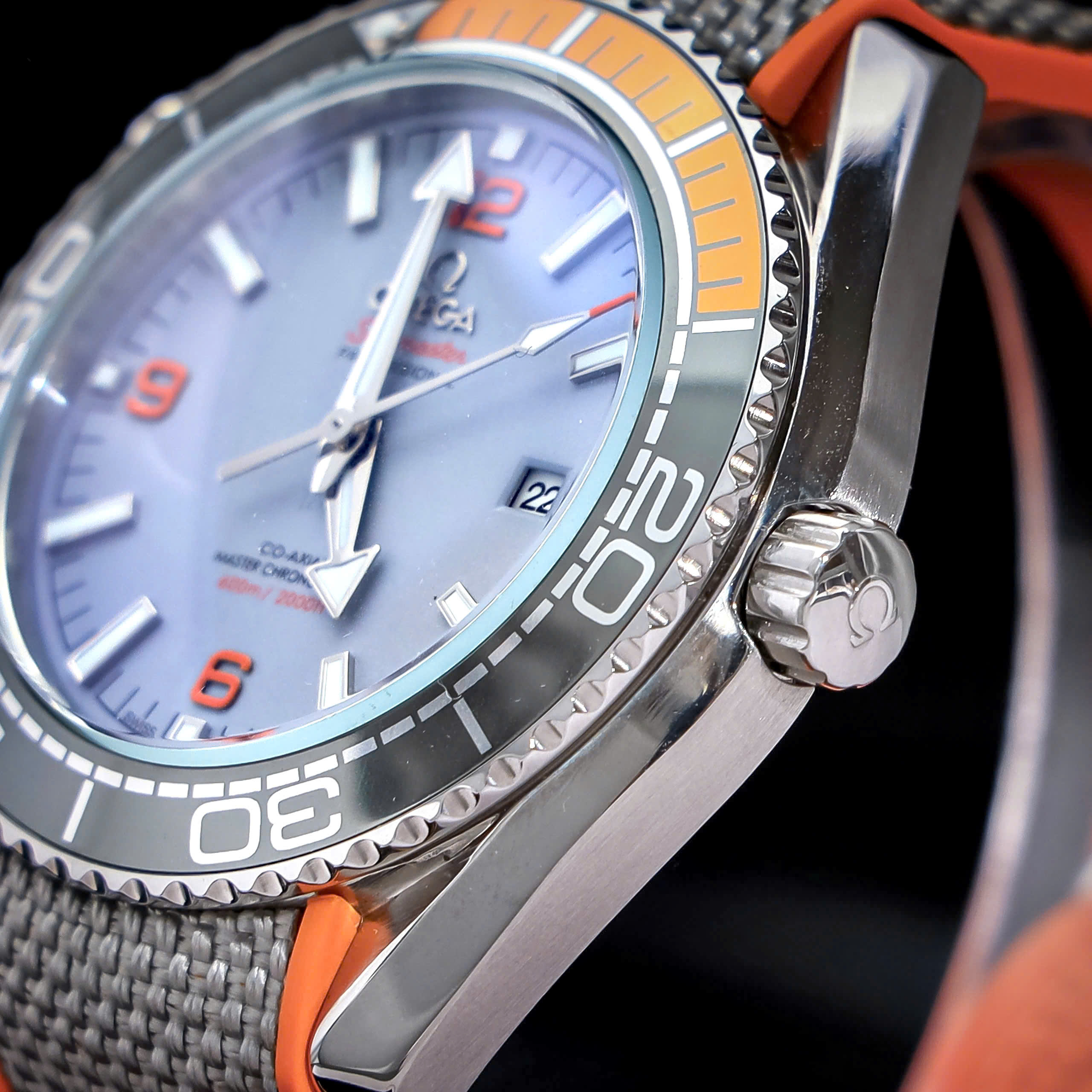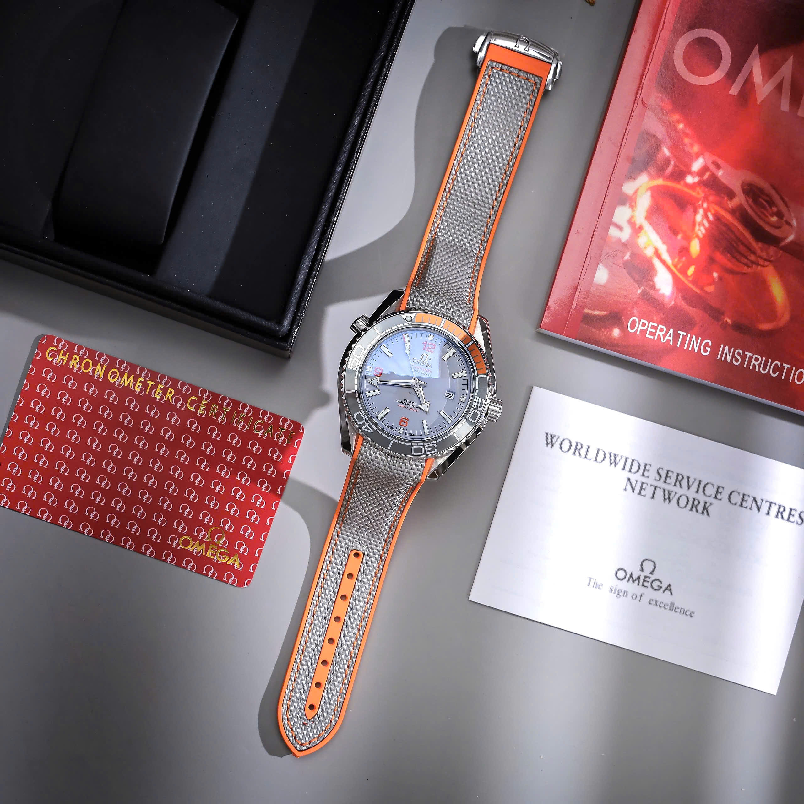 Đồng hồ Omega Seamaster Planet Ocean 600M nam dây dù cam fake cao cấp 42mm