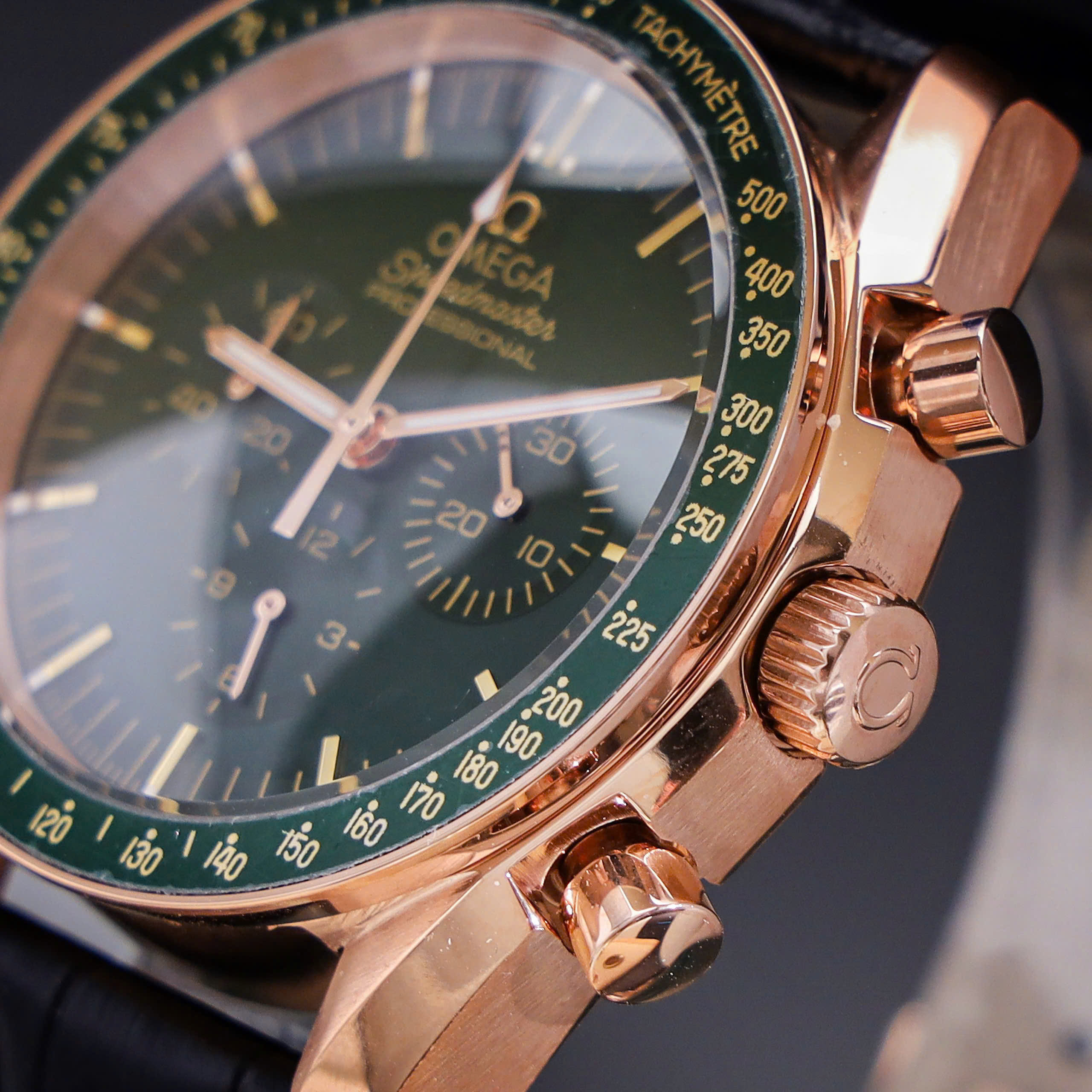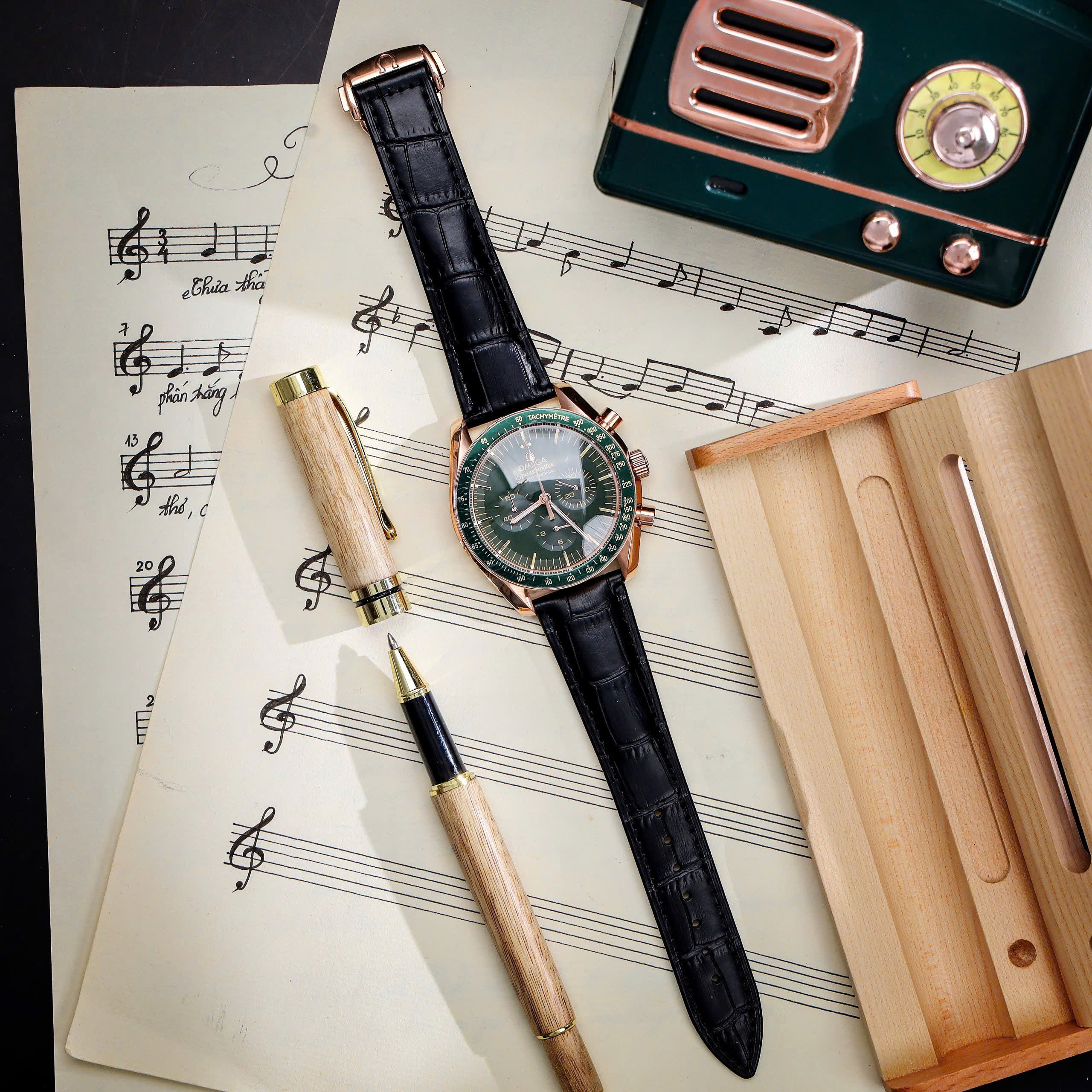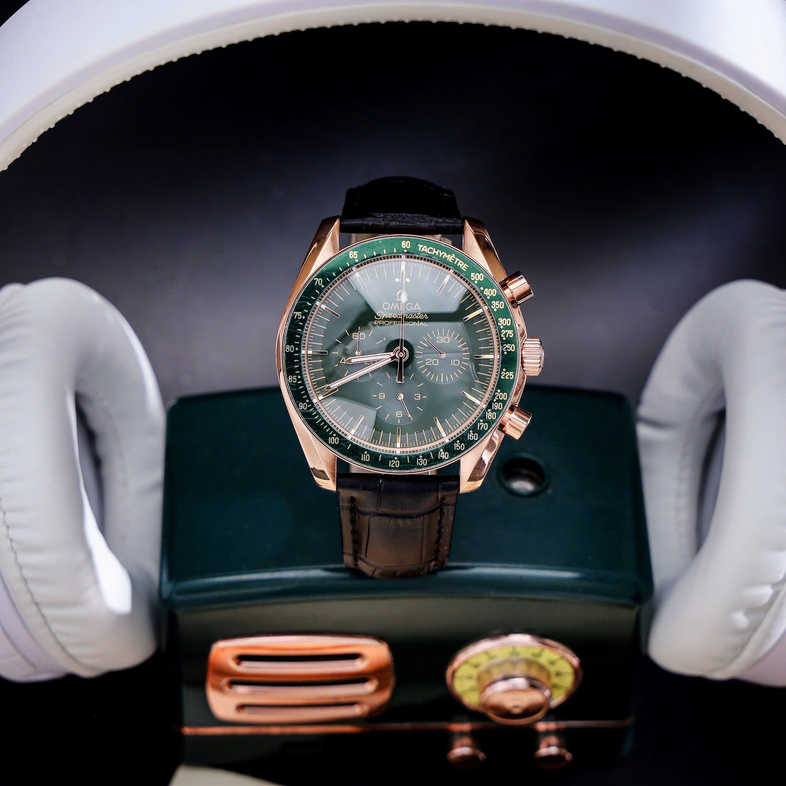 Đồng hồ Omega Speedmaster nam mặt xanh green fake cao cấp 43mm