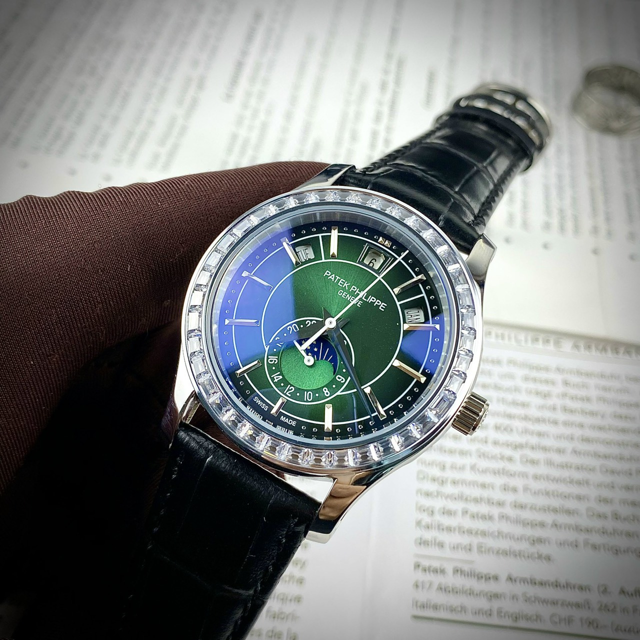 Đồng hồ Patek Philippe 5205R nam mặt xanh fake cao cấp