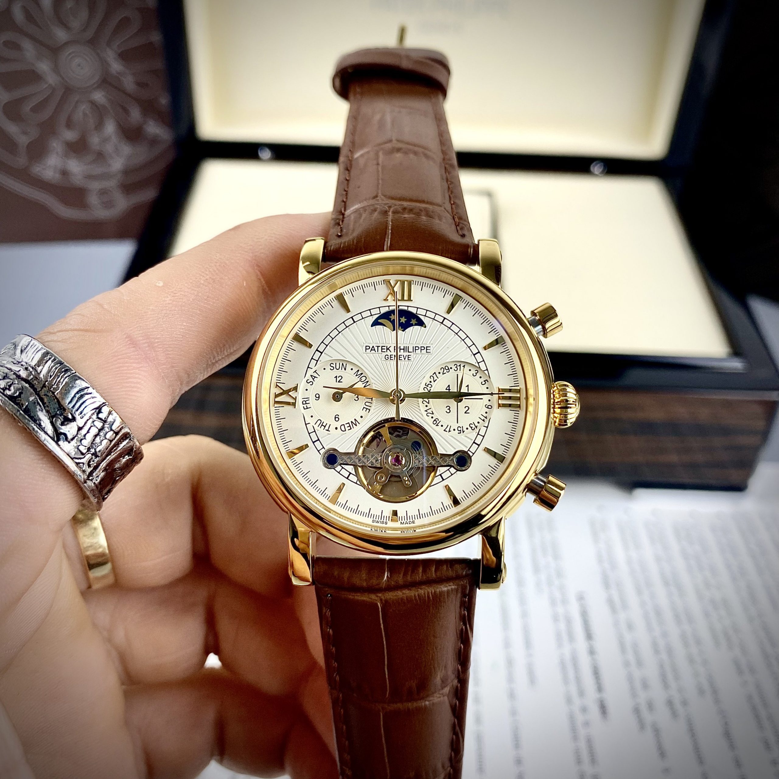 Đồng hồ Patek Philippe cơ lộ máy Nhật Automatic màu nâu 42mm