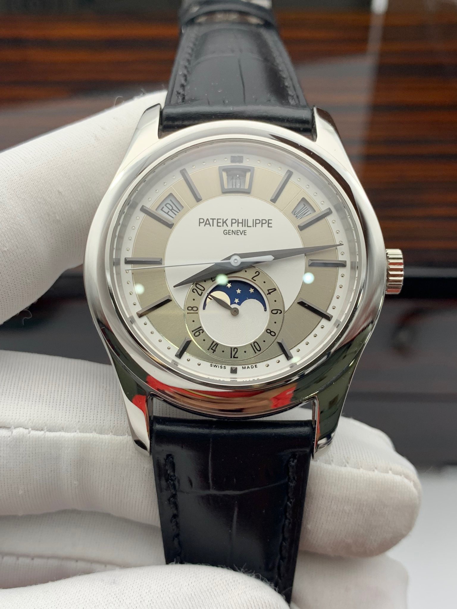Trước tiên, chúng ta hãy nói qua về chiếc Patek Philippe Watch Replica Chuẩn 1:1 này, đây là một mẫu đồng hồ với chức năng lịch thường niên (annual calendar) có kích thước 40mm. Nó cực kỳ thích hợp với các khách hàng có cổ tay vừa với vóc dáng của 1 quý ông. Theo như những gì chúng tôi lên tay và trải nghiệm thì nó rất vừa vặn và cực kỳ thích hợp với cổ tay của Nam giới Việt Nam chúng ta.