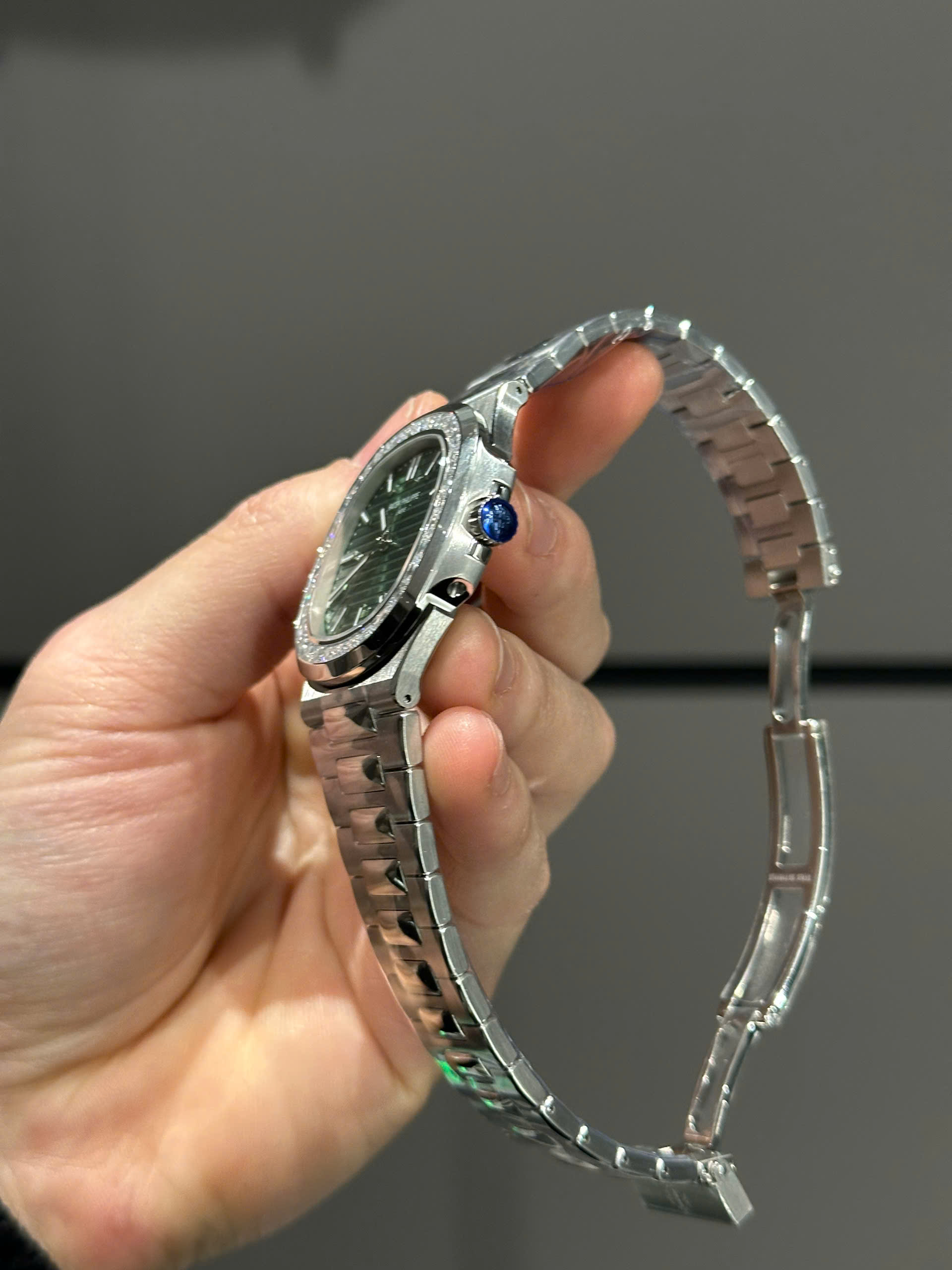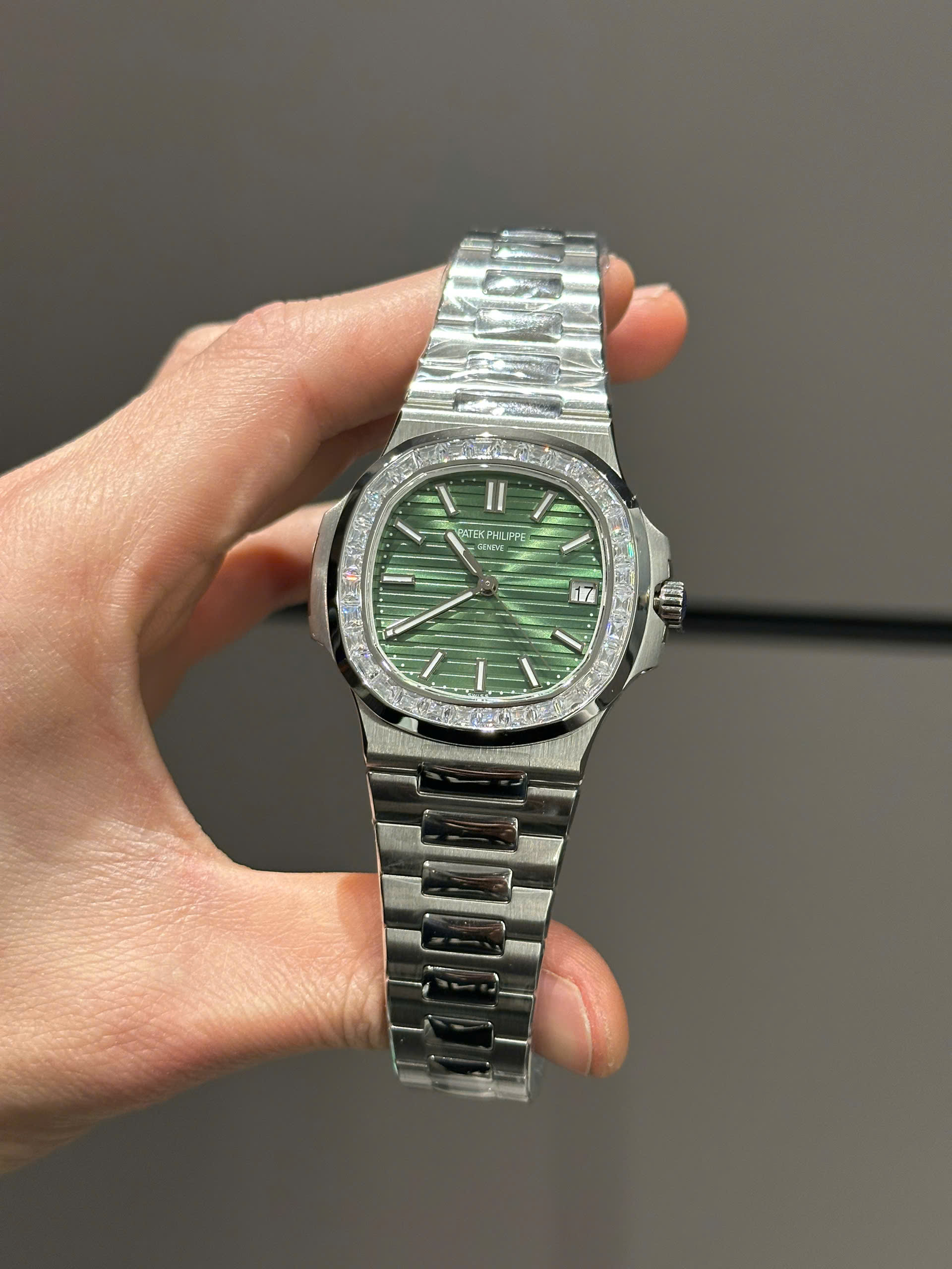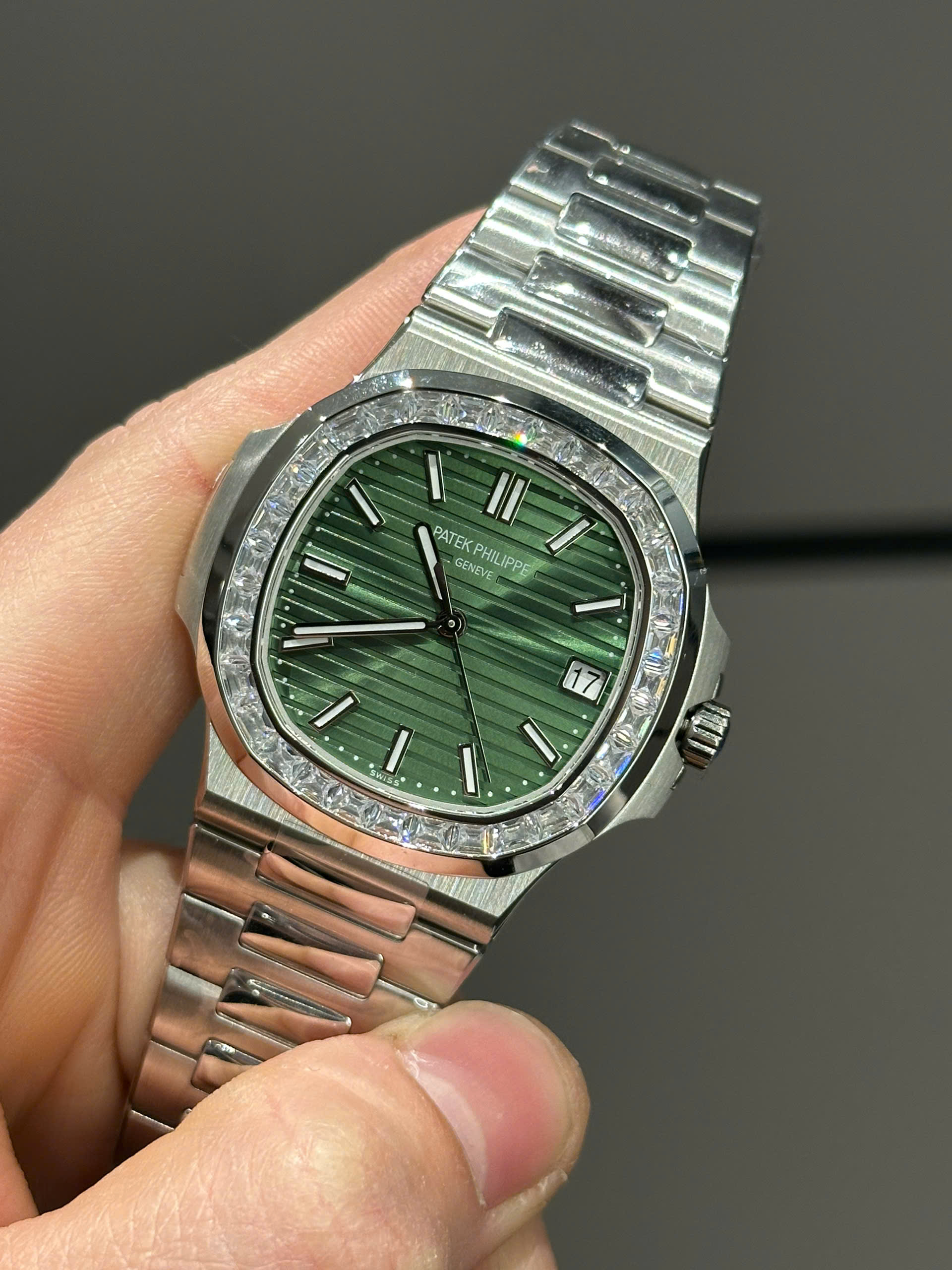 Đồng hồ Patek Philippe Nautilus 5723 Replica 11 mặt xanh là cây đính đá Baguette 40mm