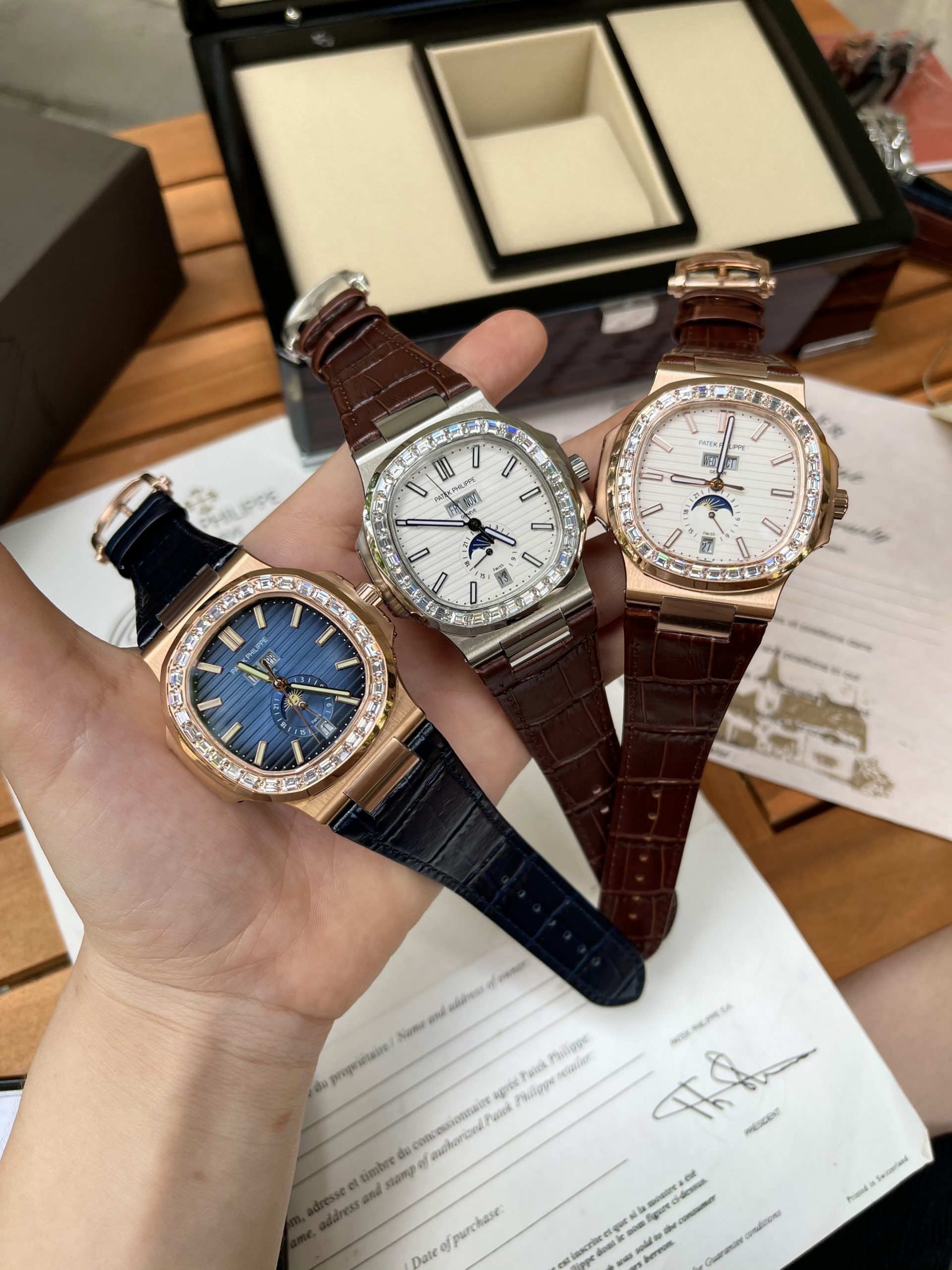 Đồng hồ Patek Philippe Nautilus Fake 1:1 Đính Đá Baguette