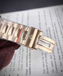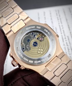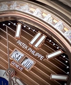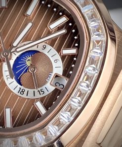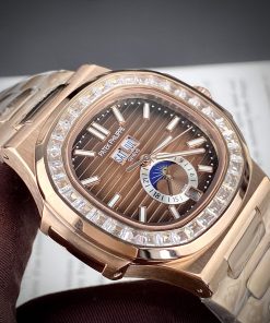 Đồng hồ Patek Philippe Nautilus màu vàng hồng mặt nâu đính đá 40mm