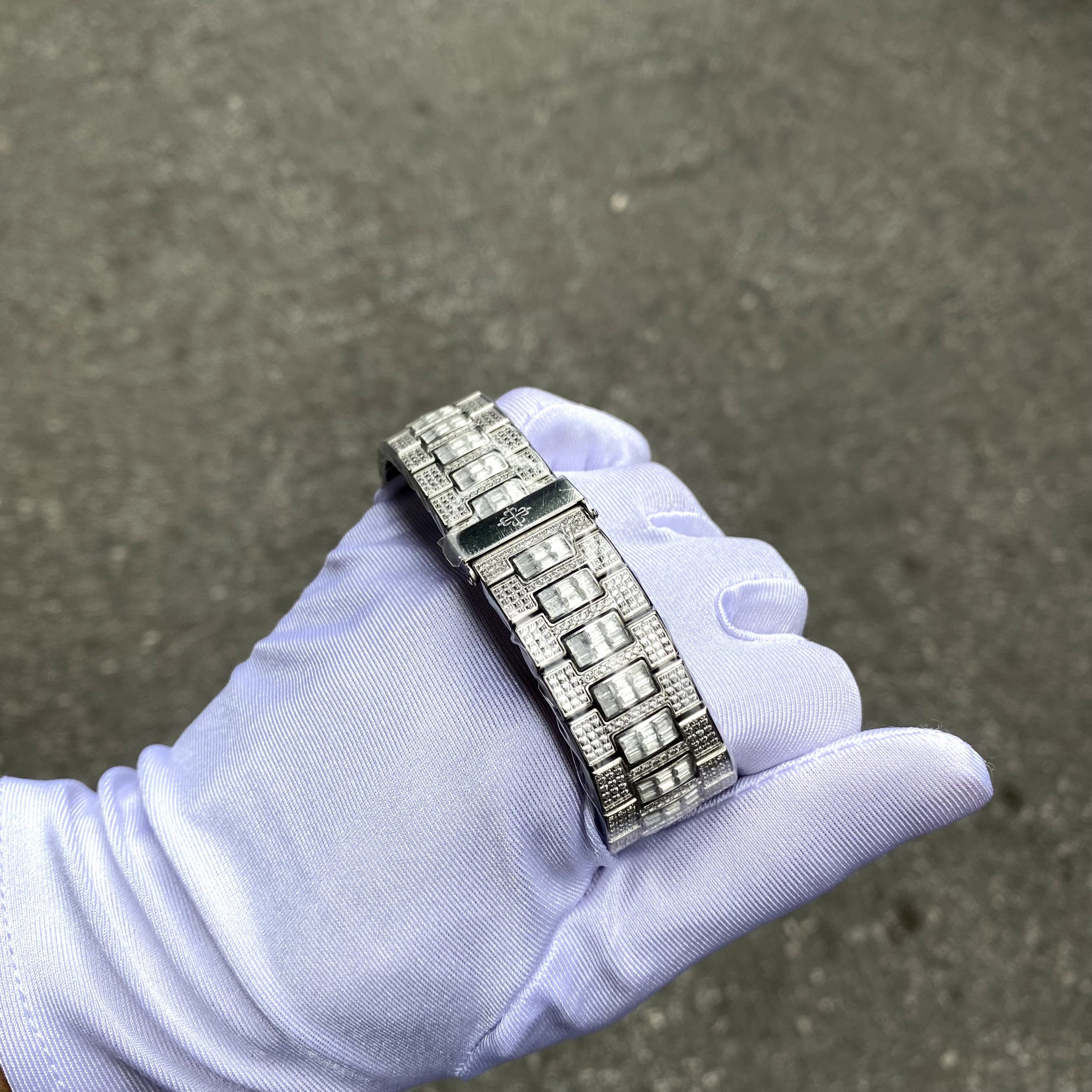 Theo như chúng ta đang thấy ở đây. Toàn bộ chiếc đồng hồ này được đính toàn bộ 100% bằng kim cương nhân tạo rất là đẹp và sáng. Những viên kim cương được gắn chấu 4 cạnh rất chắc chắn. Với độ bắt sáng ở mức cao mang lại cho chiếc đồng hồ sự lấp lánh, sang trọng. Đó chính là đặc điểm nổi bật nhất của kim cương nhân tạo Mozambique so với các kim cương thông thường. Không chỉ có phần vỏ case mà cả mặt dial hay toàn bộ phần dây đều được đính full kim cương. Nếu bạn đeo chiếc đồng hồ trên tay DWatch xin đảm bảo rằng : Bạn sẽ luôn là tâm điểm chú ý và sự ngưỡng mộ của mọi người.!