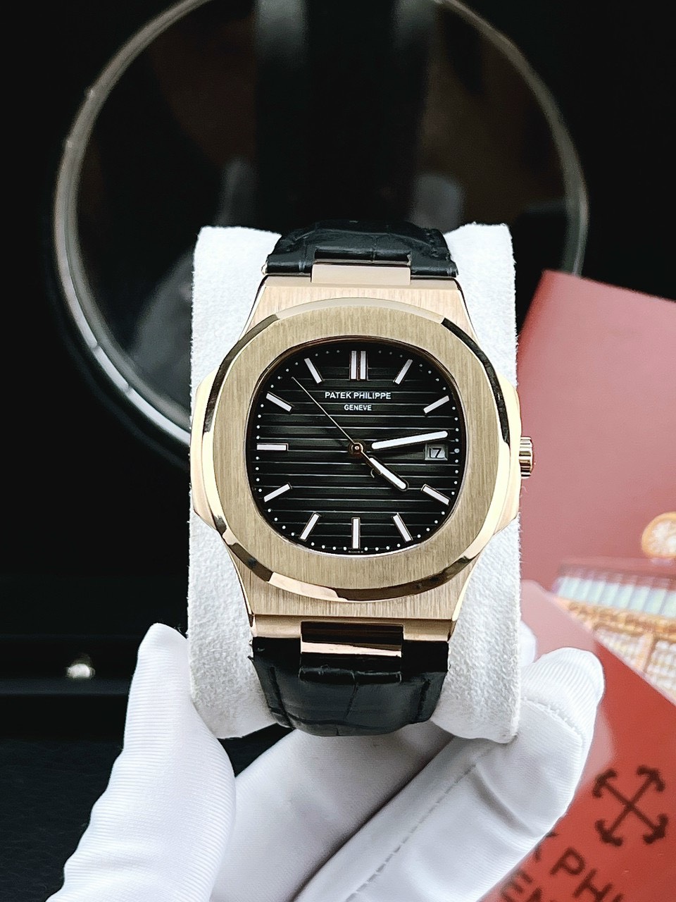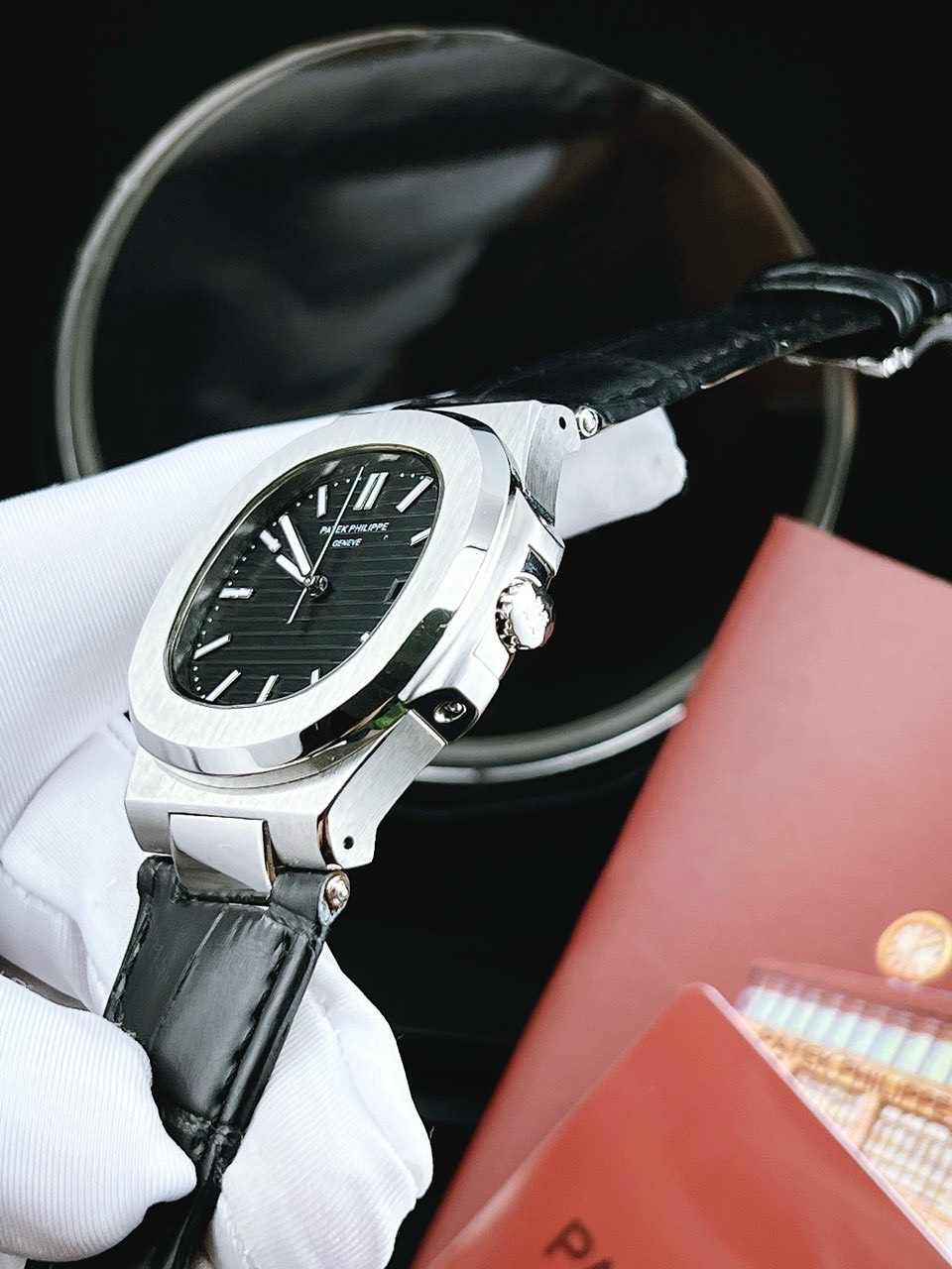 Đồng hồ Patek Philippe Nautilus nam dây da màu đen