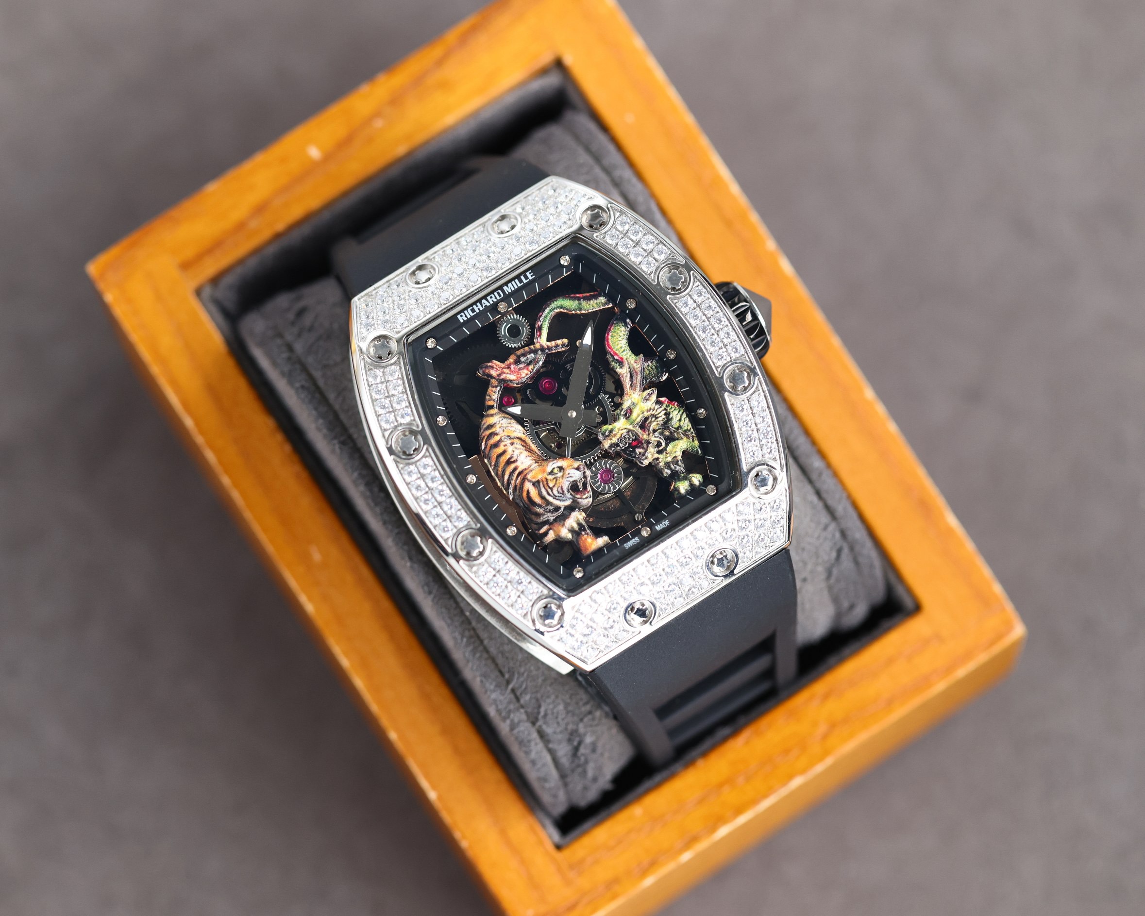 Không chỉ đẹp,Richard Mille bản Long Tranh Hổ Đấu Replica Siêu Cấp Chuẩn 1:1 còn là một chiếc đồng hồ rất đáng giá dành cho đấng mày râu với vẻ đẹp đậm chất Á Đông mà vẫn thật mạnh mẽ.