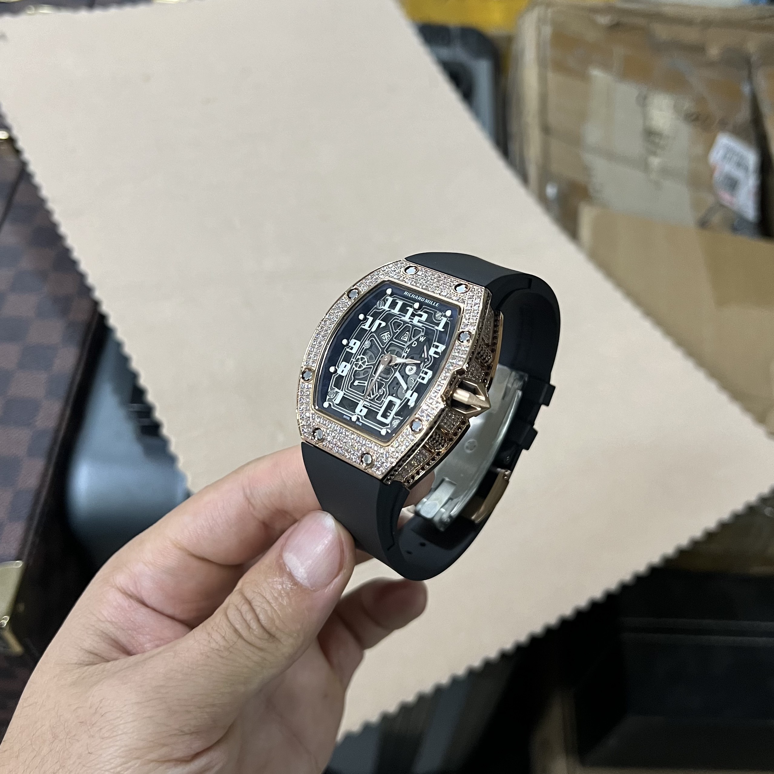 Đồng hồ Richard Mille RM67-01 rose gold đính đá Replica 11 cao cấp