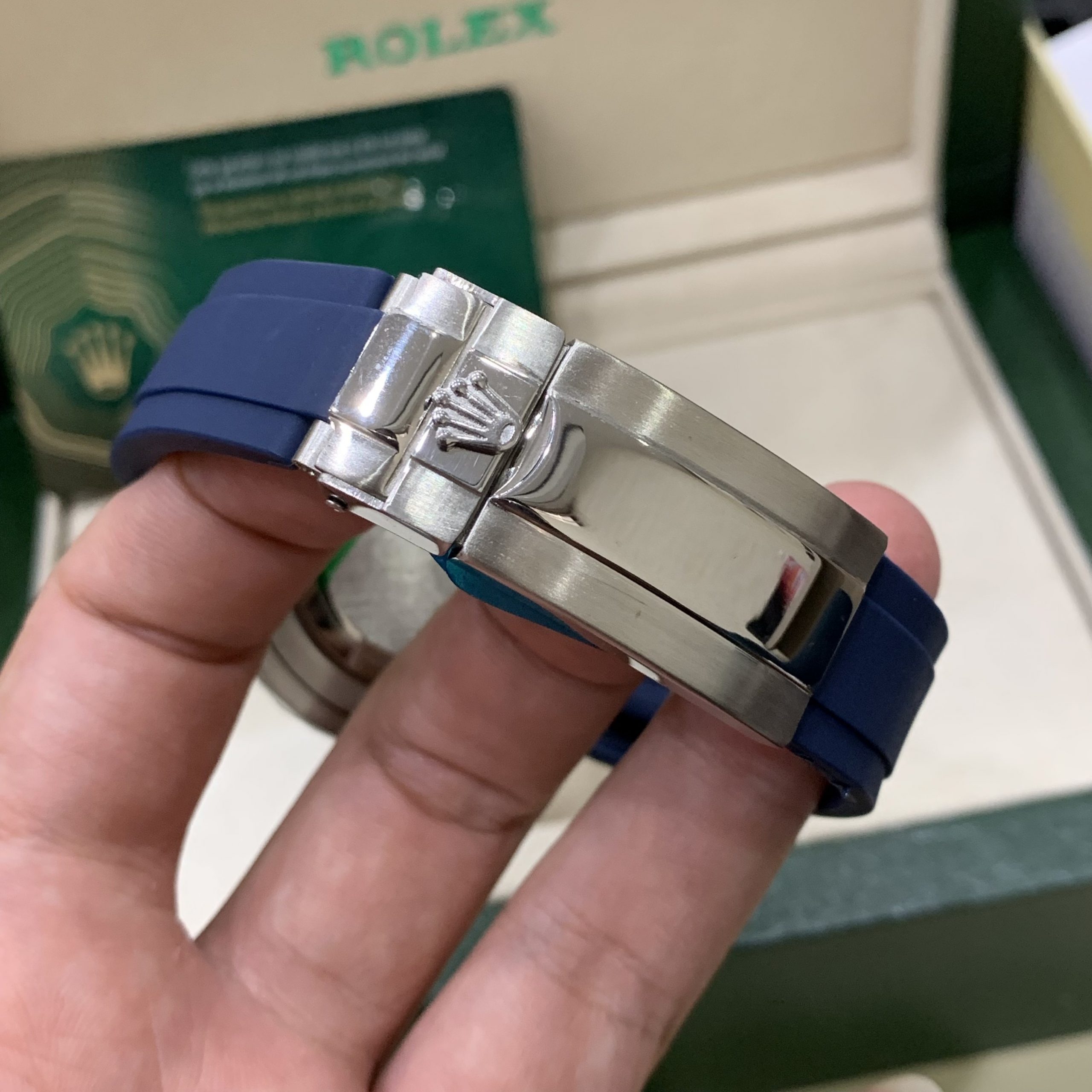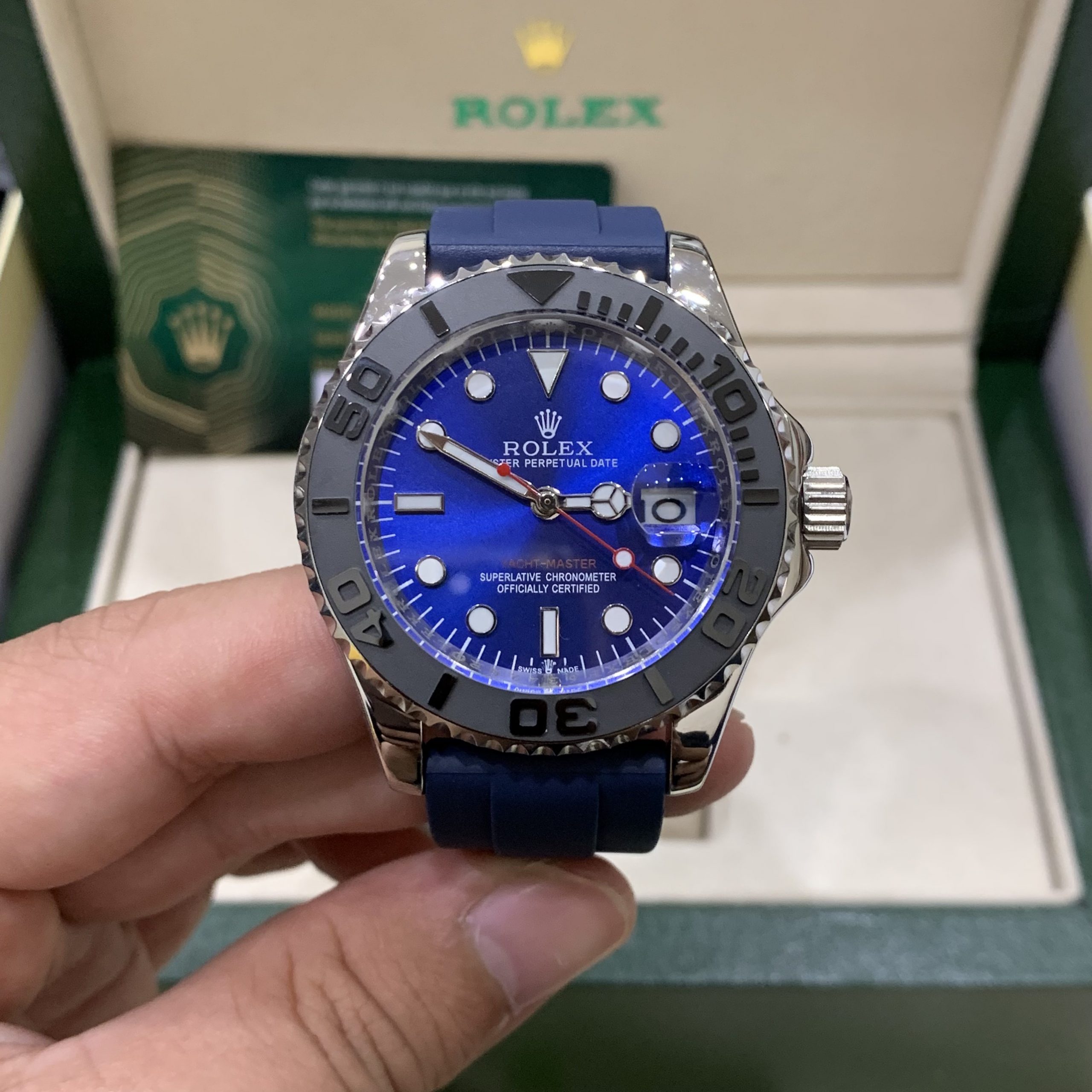 Đồng hồ Rolex automatic nam dây cao su Rolex Yacht Master Fake Nhật màu xanh