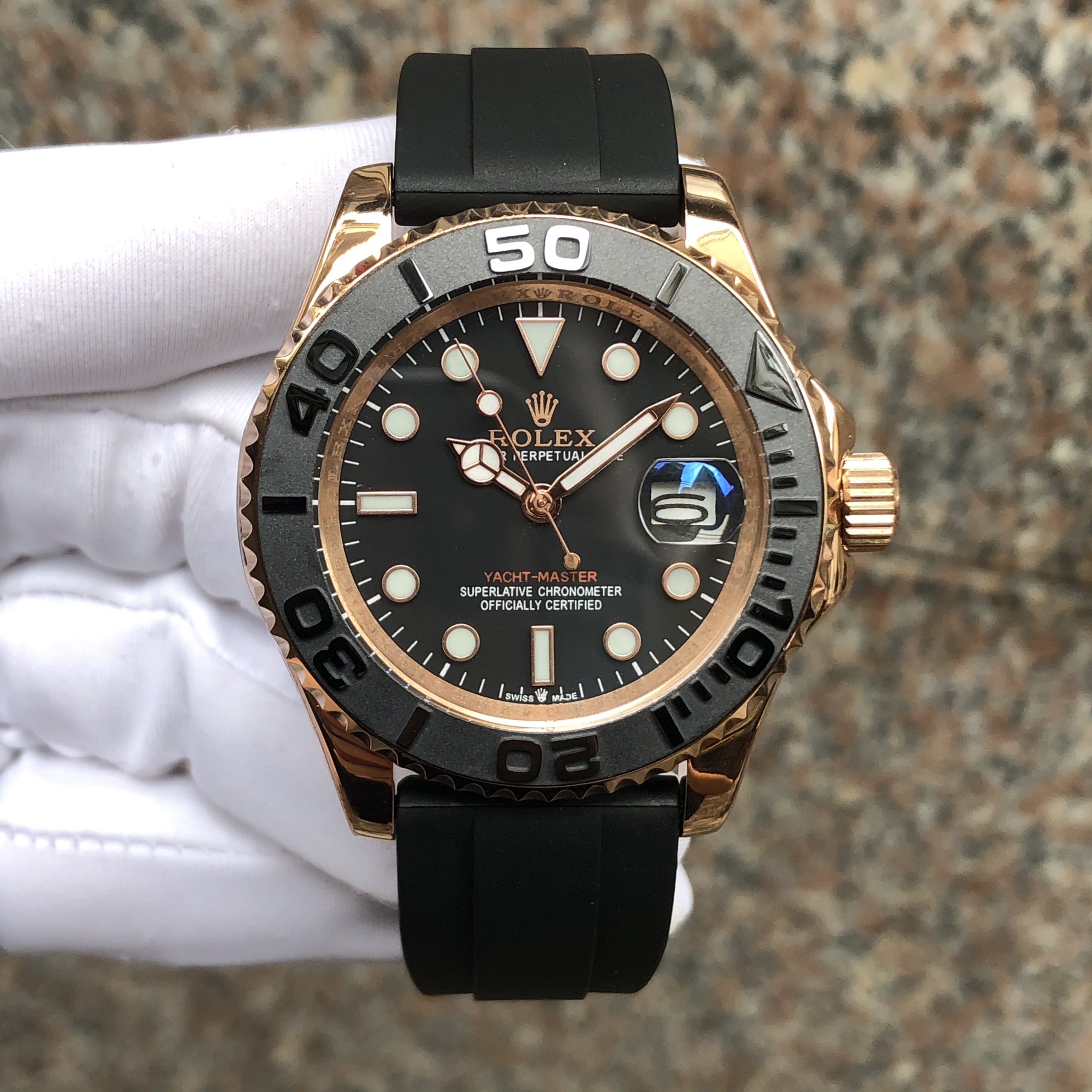 Đồng hồ Rolex automatic nam dây cao su Rolex Yacht Master Super Fake Nhật