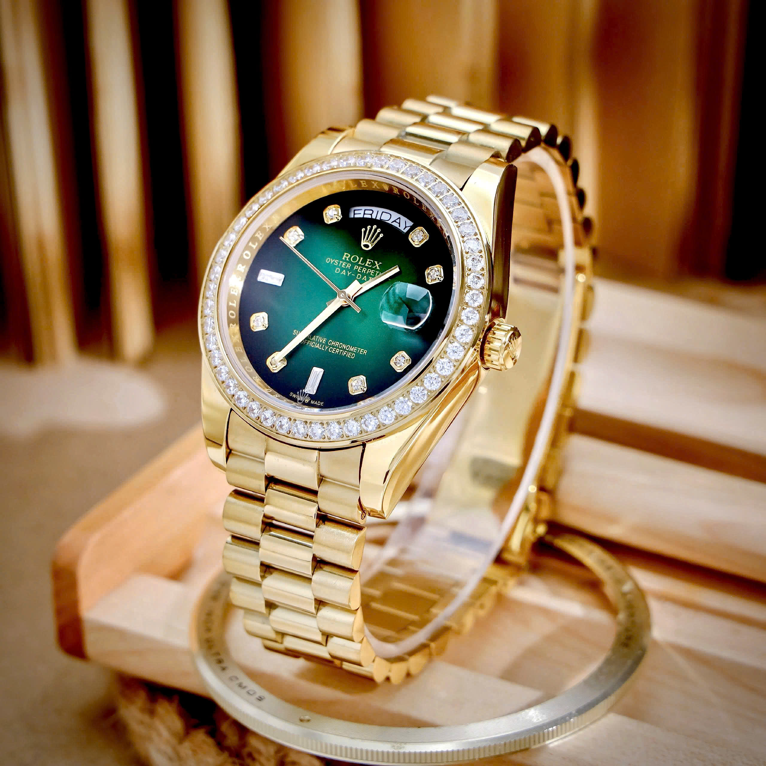 Đồng hồ Rolex Date Date vàng gold nam đính đá máy cơ nhật giá rẻ 40mm