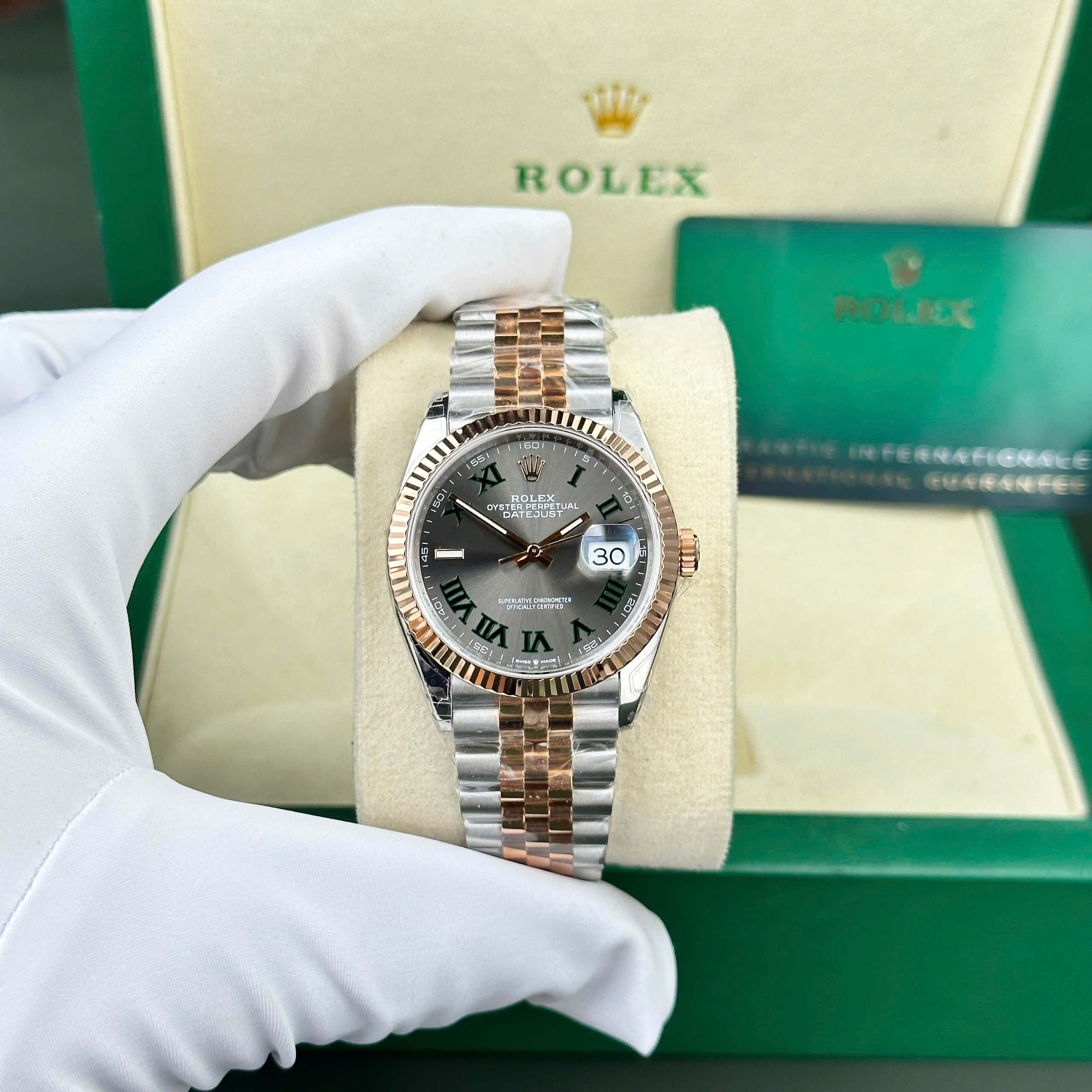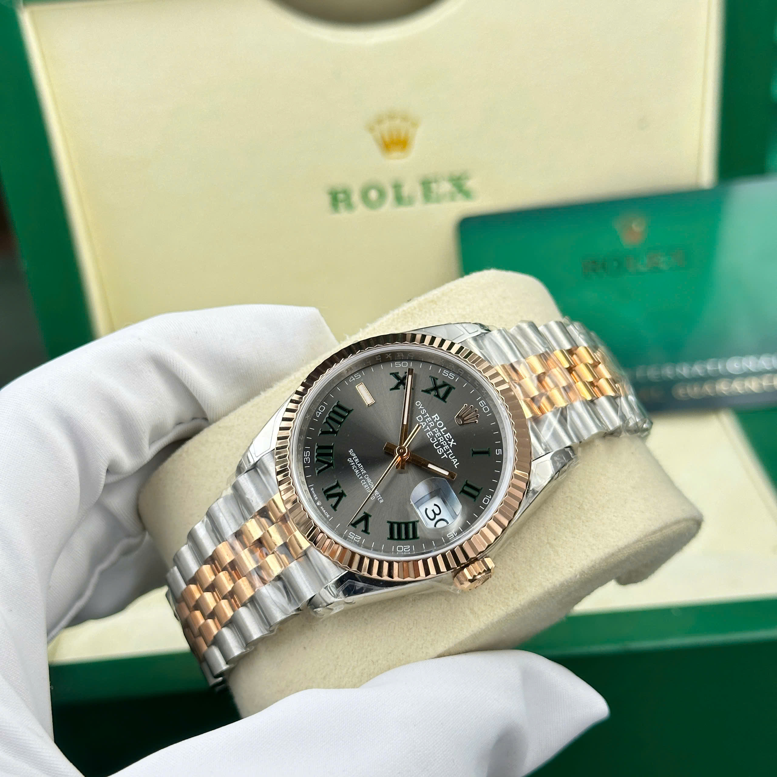 Đồng hồ Rolex DateJust 126231 mặt số wimbledon màu demi vàng hồng nhà máy VS 36mm phiên bản cao cấp nhất tại DWatch.