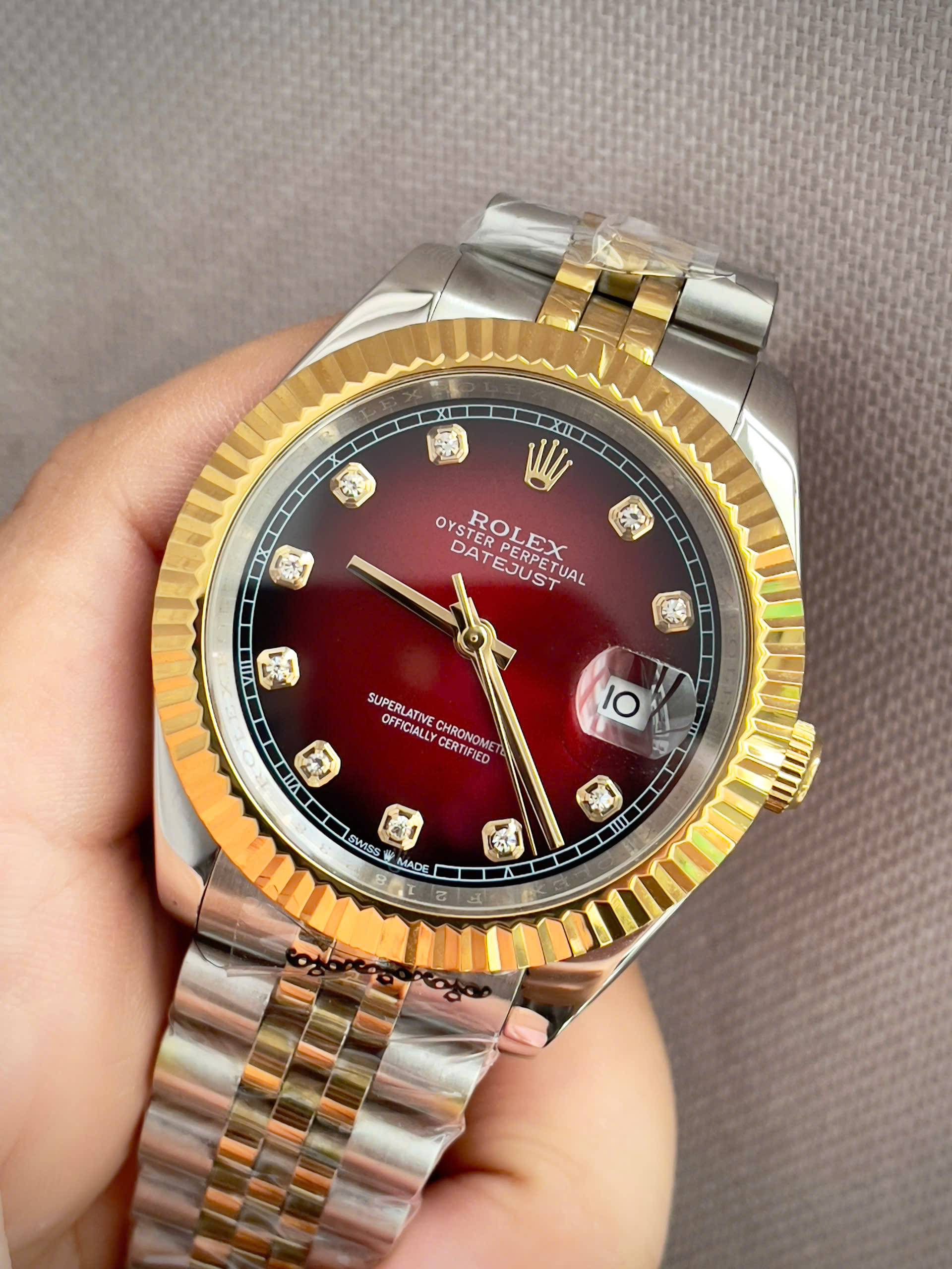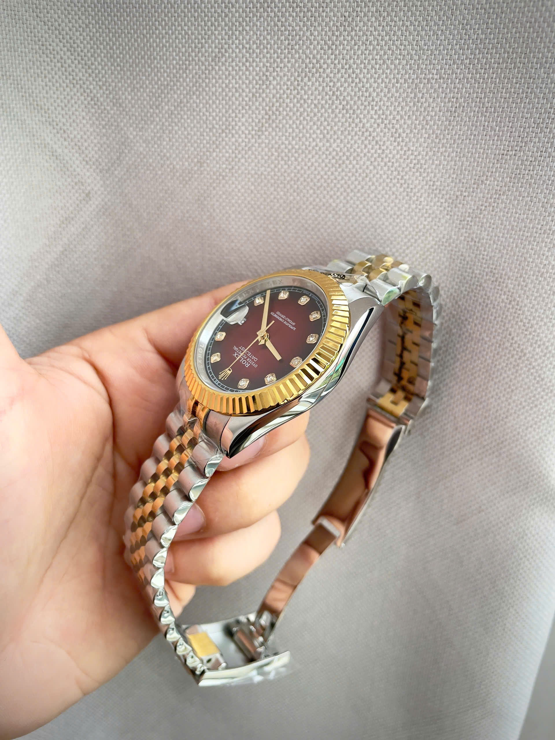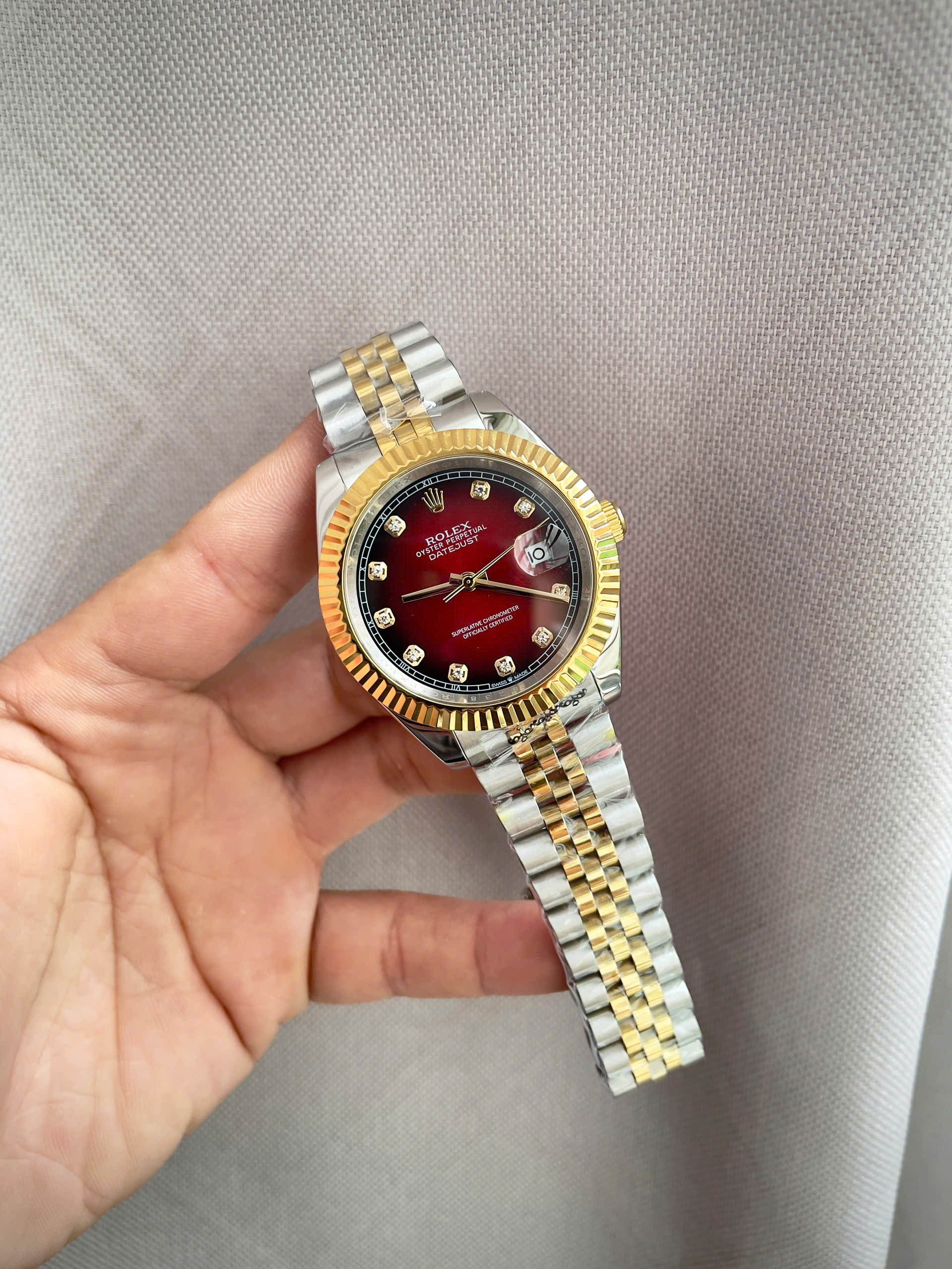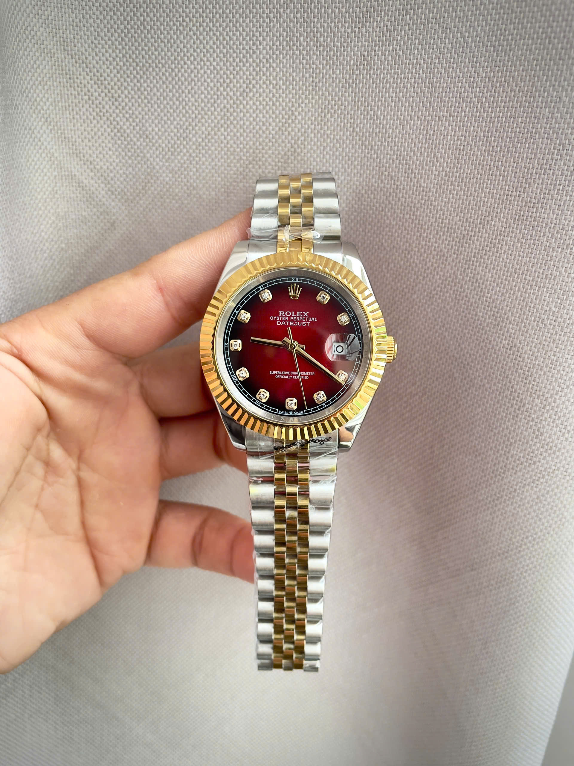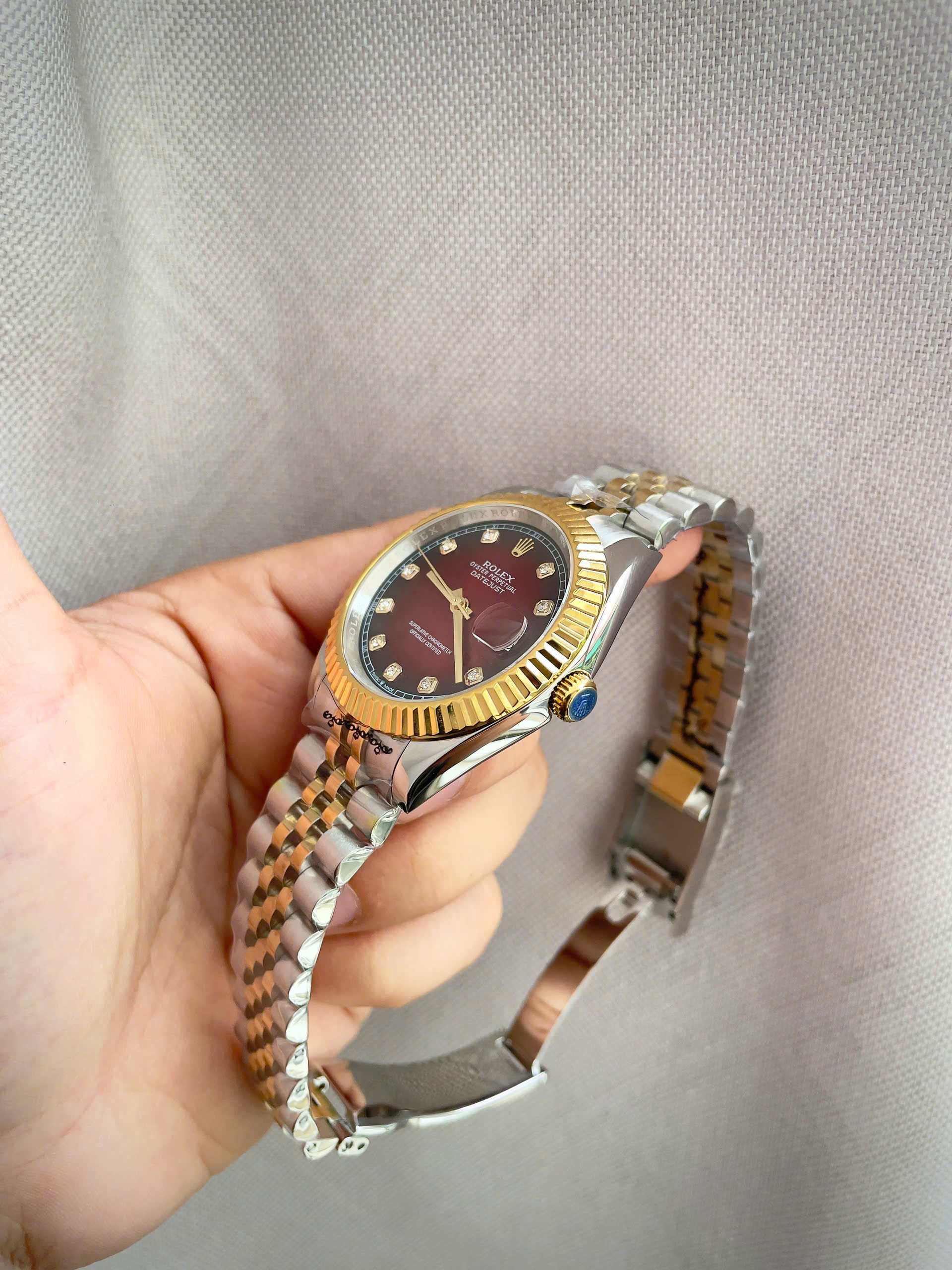 Đồng hồ Rolex Datejust nam demi mặt đỏ máy cơ nhật rẻ fake 11 38-41mm