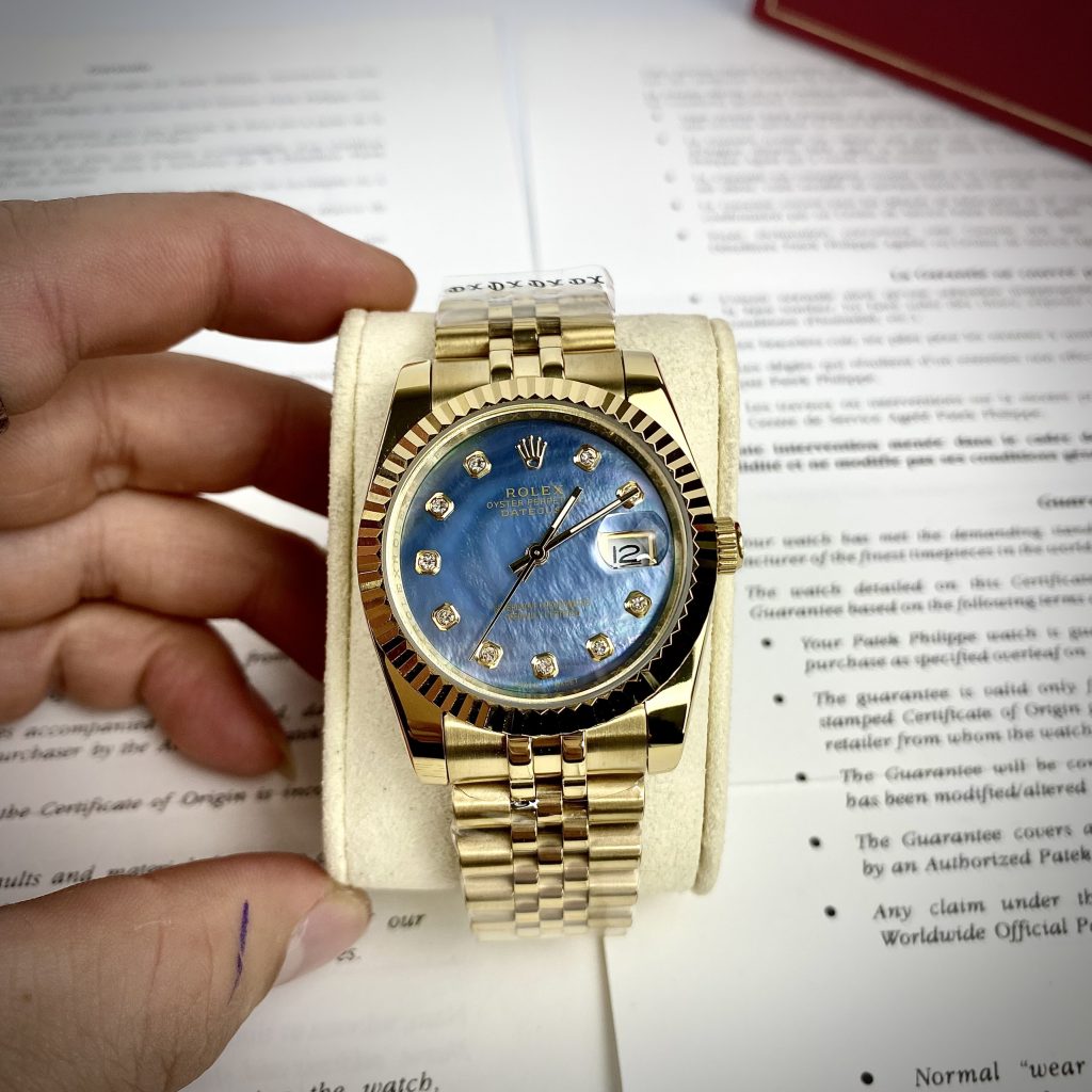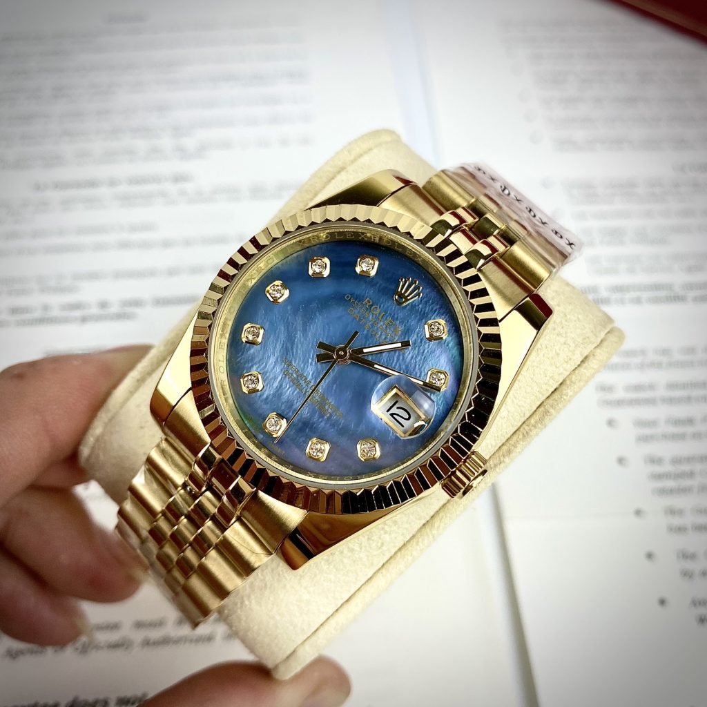 Đồng hồ Rolex DateJust Super Fake máy Nhật mặt xà cừ xanh 38mm