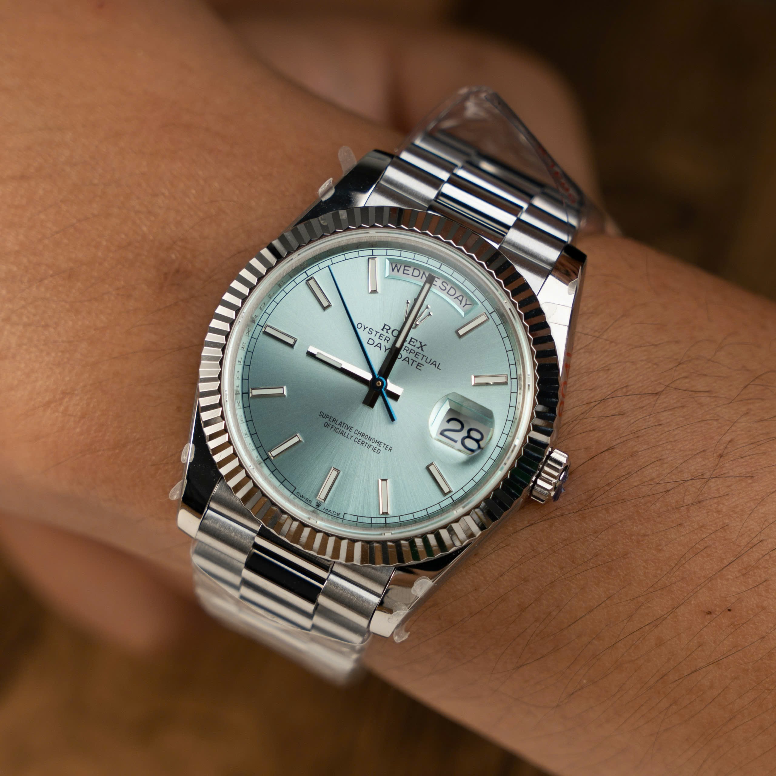 Đồng hồ Rolex Day-Date 228236 Rep 11 mặt xanh băng trọng lượng 175gram nhà máy GM phiên bản cao cấp nhất tại DWatch.