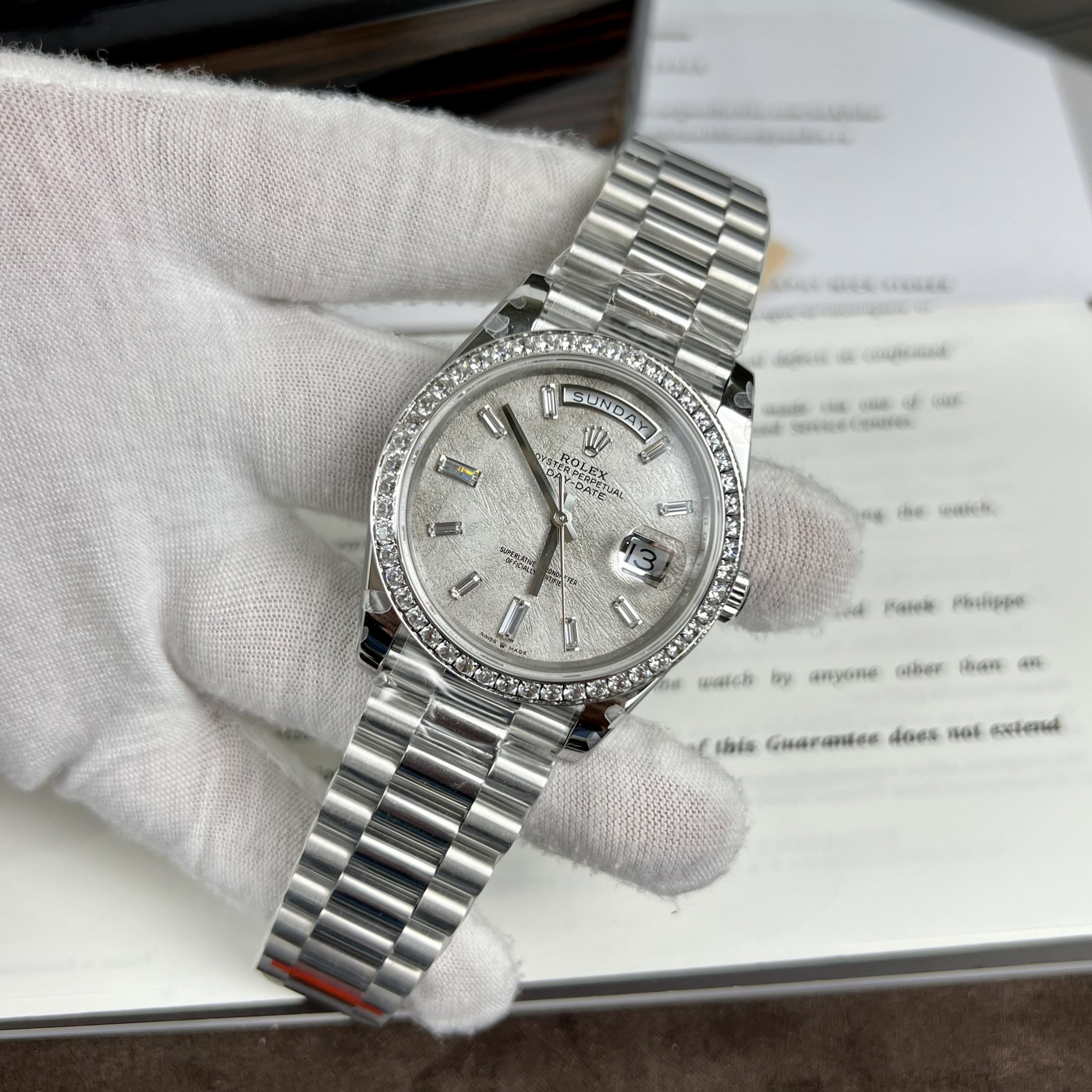 Hãy cùng DWatch Thế Giới Đồng Hồ Đẹp tham khảo mẫu Đồng hồ Rolex Day-Date Replica 1:1 mặt thiên thạch đính đá 40mm nhé !