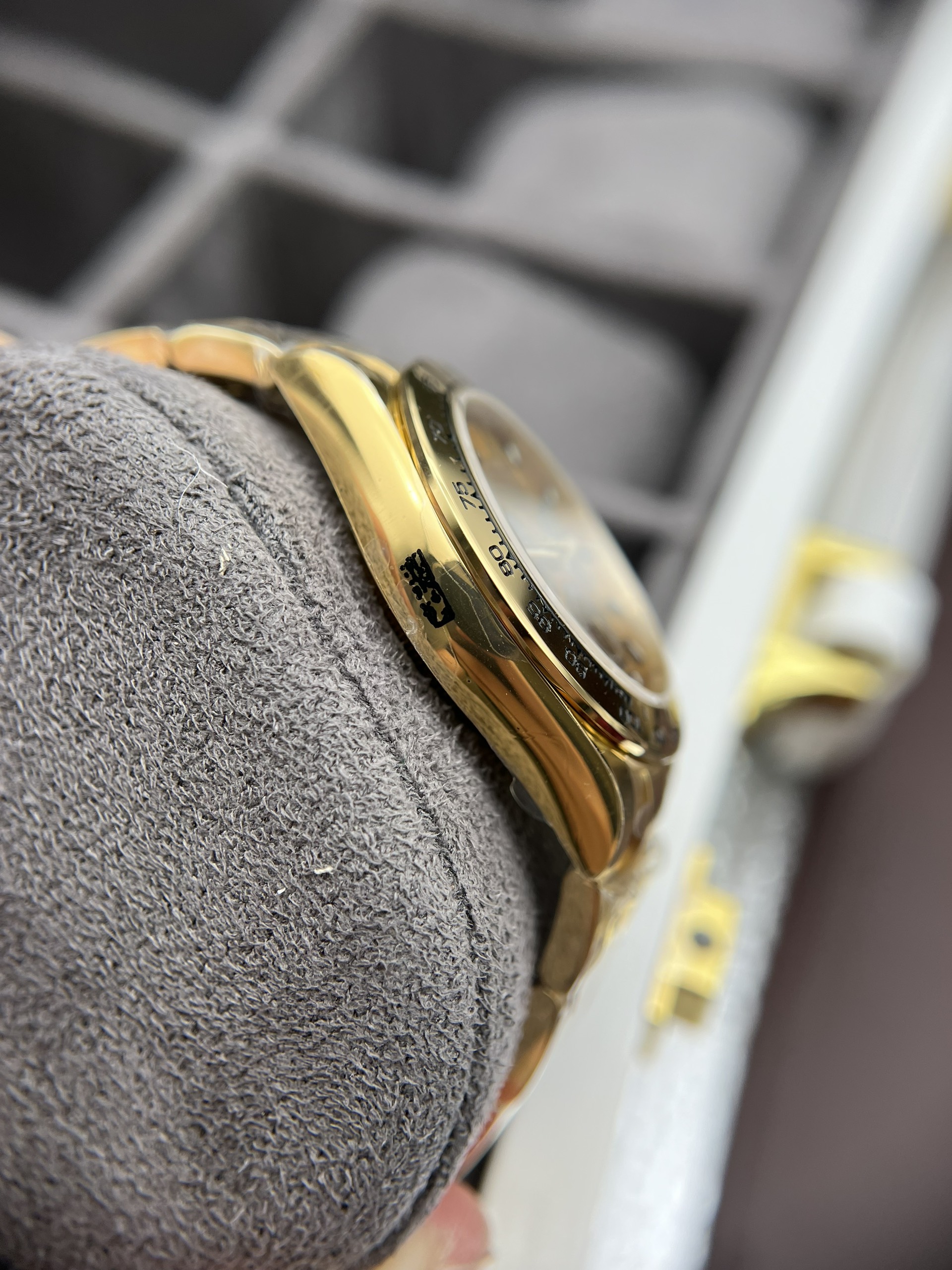 Phiên bản đồng hồ Rolex Daytona nam Siêu Cấp DWatch Luxury muốn giới thiệu tới các bạn ngày hôm nay có bộ vỏ bằng thép nguyên khối mạ vàng. Hiện tại, có vẻ nhiều người ngại sử dụng đồng hồ vàng, do độ nổi bật và tông màu hơi “chói”. Tuy vậy, nếu đem so sánh về màu sắc, màu vàng của Rolex luôn có một tông trầm hơn, và đây mới chính là màu vàng nguyên thủy đã làm nên sự quý phái của những chiếc đồng hồ Rolex Full Gold.