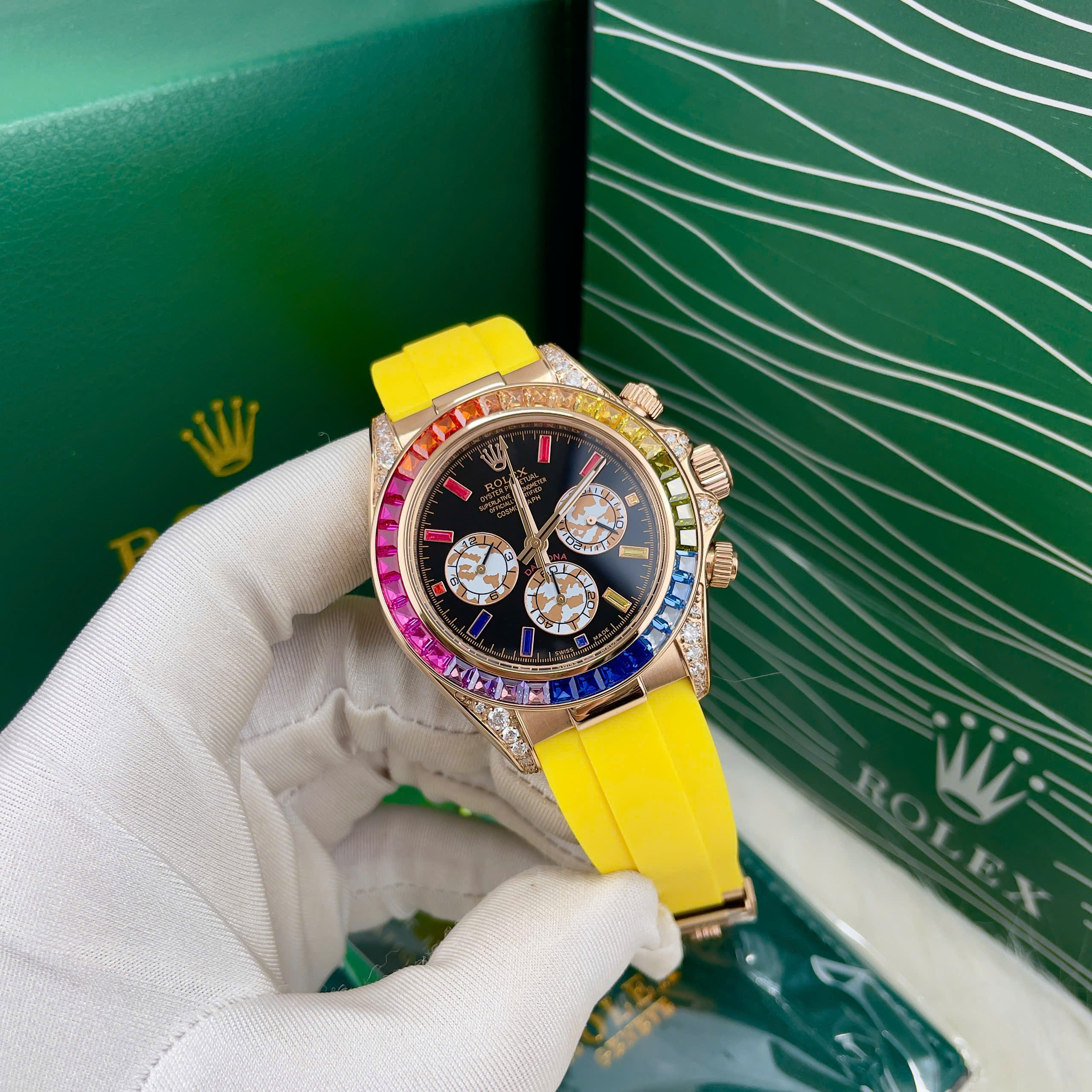 Đồng hồ Rolex Daytona Rainbow nam dây cao su vàng fake cao cấp 40mm