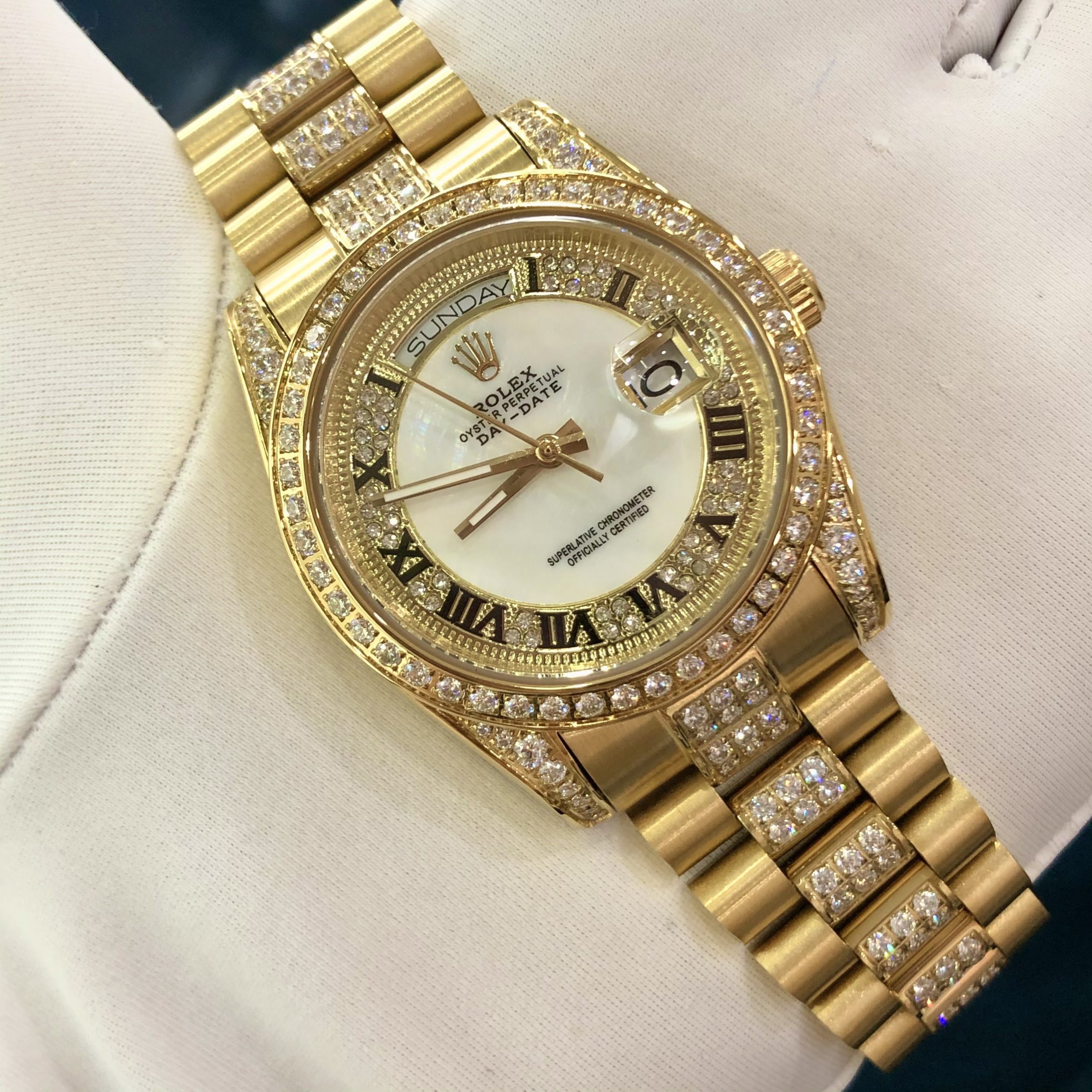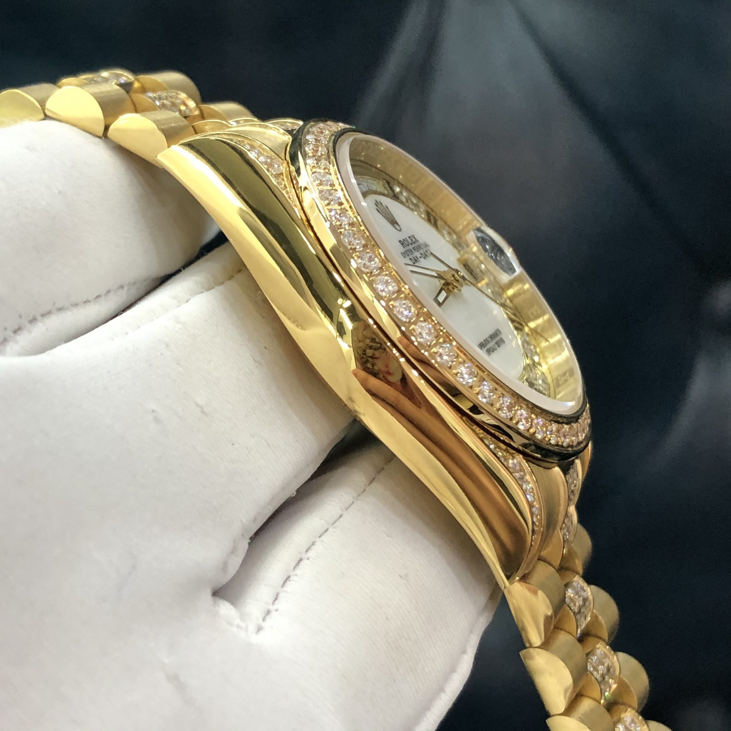 Đồng hồ Rolex đính đá máy cơ Nhật Rolex Day-Date Gold super fake 1:1